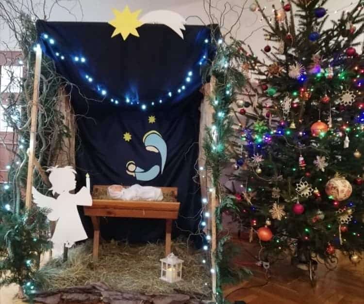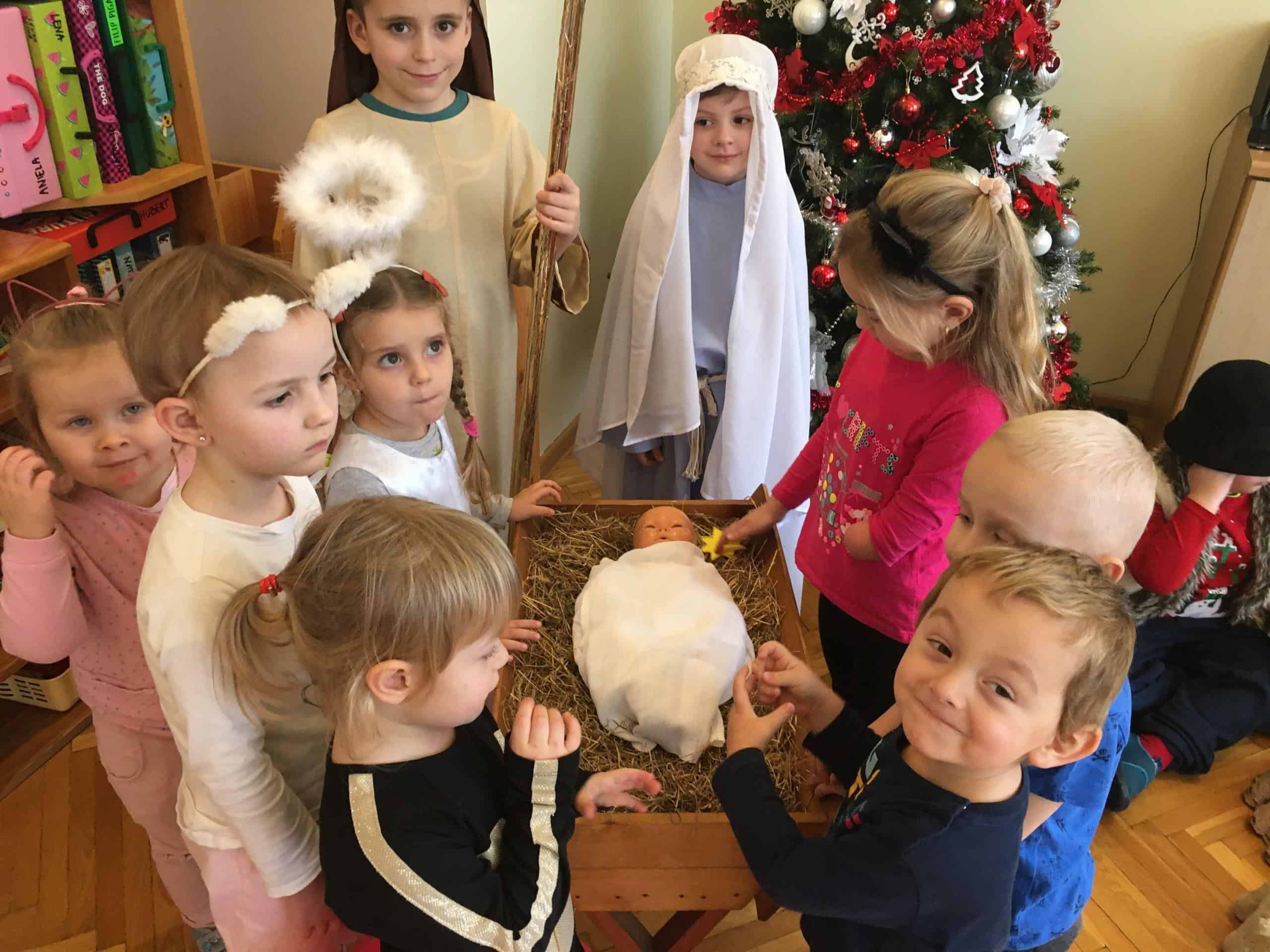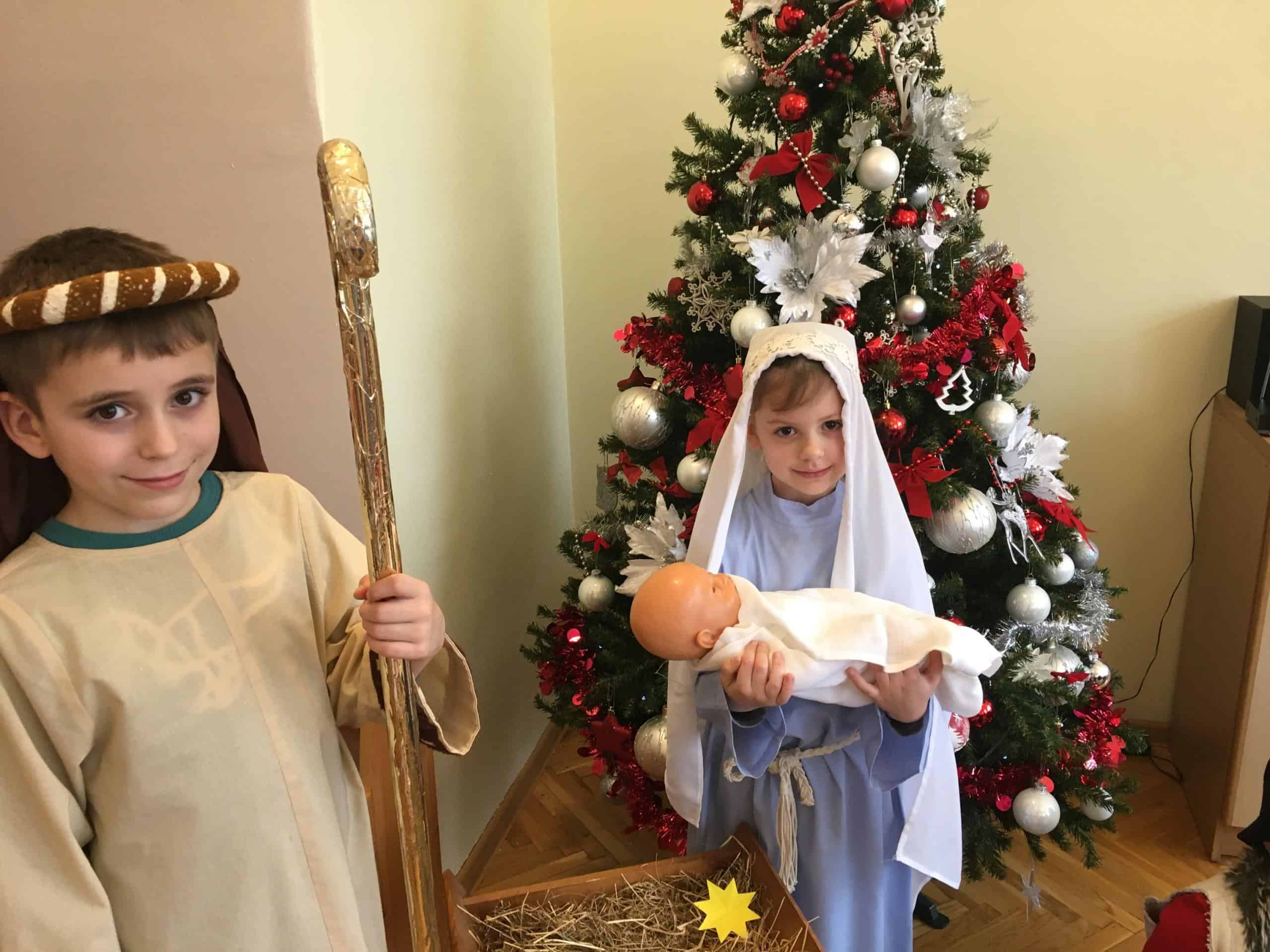 Serdecznie dziękujemy rodzicom Zosi B. – Pani Monice i Panu Pawłowi, którzy przynieśli nam bardzo dużo kory, którą wykorzystaliśmy do zrobienia stroików oraz do betlejemskiej szopki.