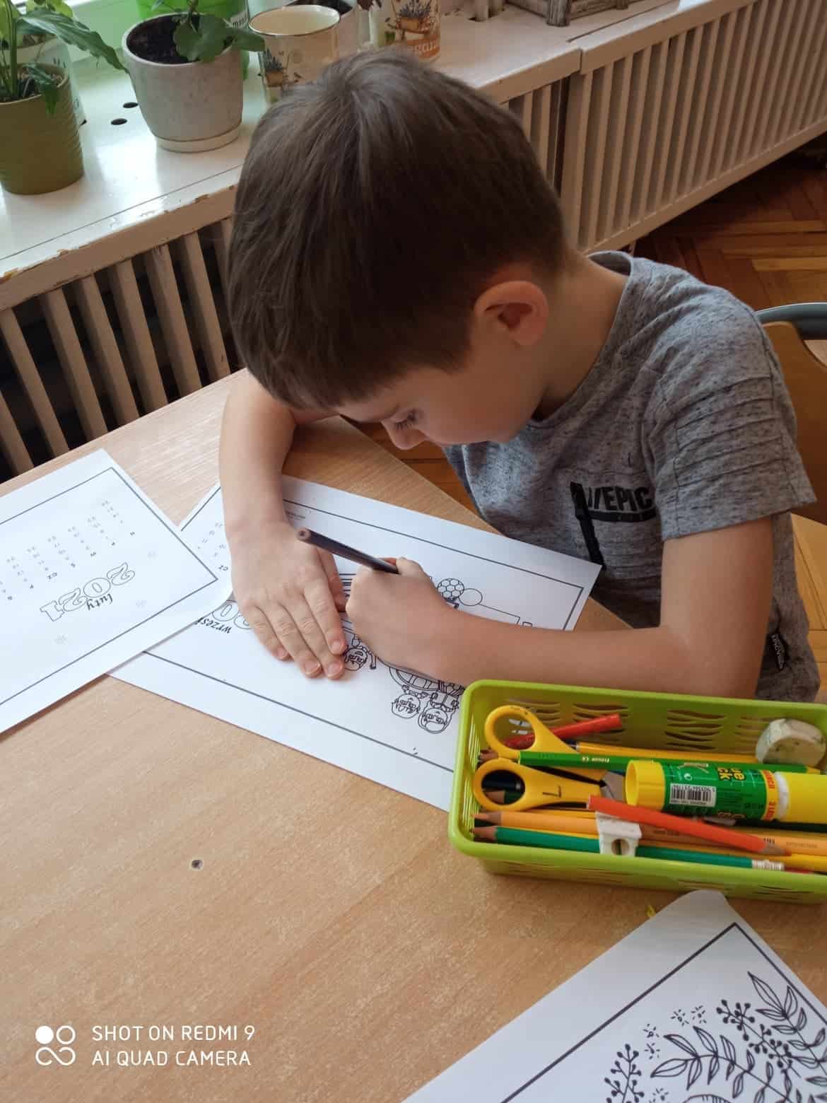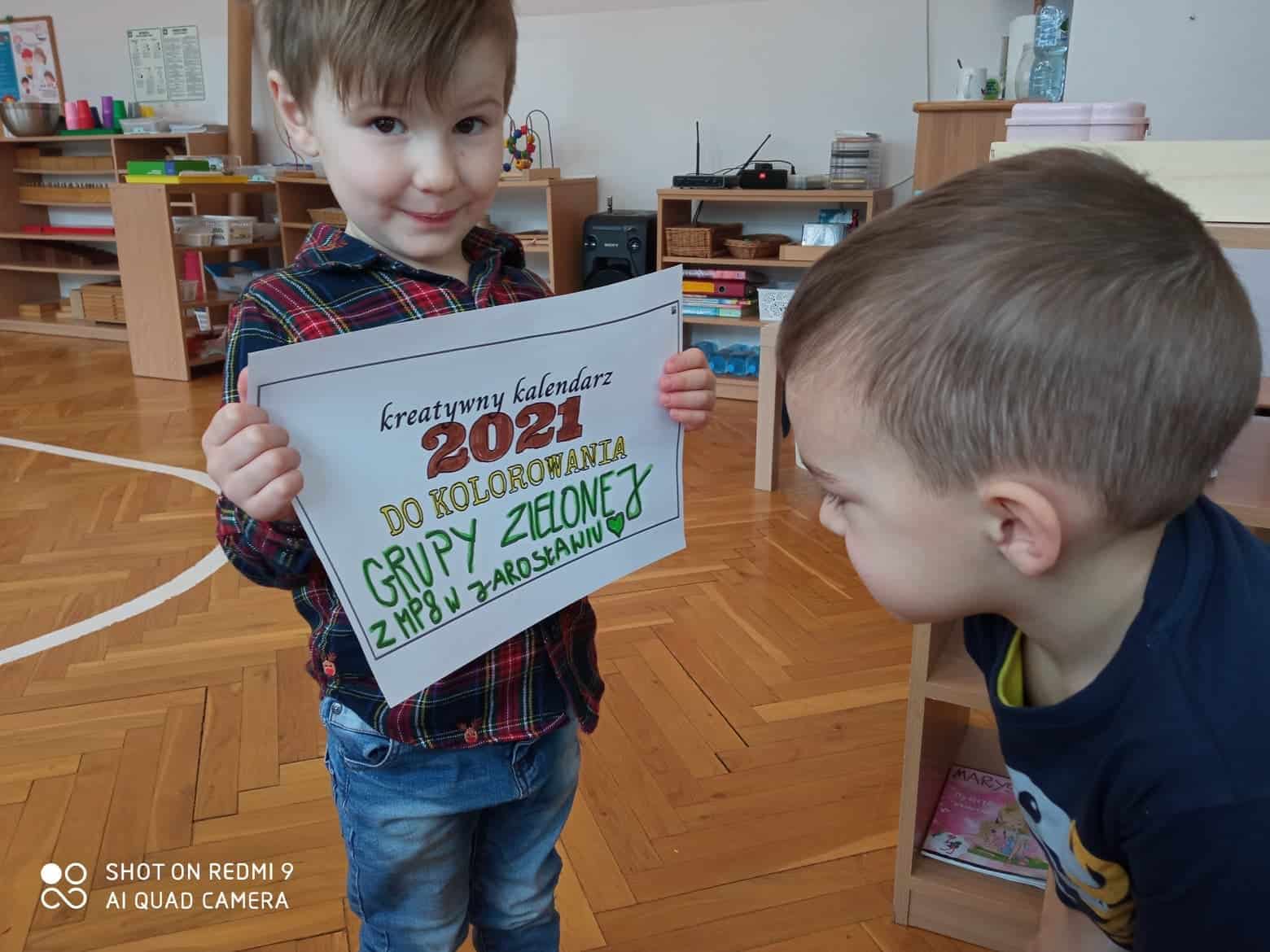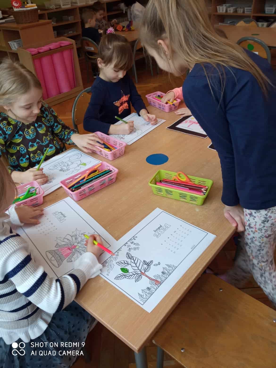Początek roku jest czasem kiedy oprócz noworocznych postanowień można zabrać się także za tworzenie…..kalendarza! Nie tam żadne obietnice czy deklaracje związane z wyrzeczeniami, ale właśnie twórcze, konstruktywne podejście do sprawy. Przecie kalendarz ważna rzecz….!Kiedy podczas lekcji z koralikowym kalendarzem pór roku dzieci zwróciły uwagę na fakt, iż nie mamy na ścianie żadnego kalendarza, który pokazywałby nam dni, tygodnie i miesiące z Nowego, 2021 Roku, postanowiliśmy jakoś temu zaradzić. Po krótkim zastanowieniu stwierdziliśmy, że może sami spróbujemy zrobić swój własny, grupowy kalendarz. Od pomysłu przeszliśmy do czynu. Dzięki współpracy z instytucjami i placówkami z całej Polski okazało się, że w realizacji tego pomysłu pomoże nam Pani Monika, człowiek wielu pasji i talentów, która oprócz pracy w gabinecie psychologicznym jest także doskonałym grafikiem komputerowym. I w taki właśnie sposób, w ramach wzajemnej pomocy, wymiany doświadczeń i pomysłów, pozyskaliśmy nasz wyjątkowy, kreatywny kalendarz na Nowy 2021 Rok. Teraz już wszystko było w naszych rękach. Zaczęliśmy go ozdabiać, kolorować, dekorować. Każdy miesiąc w innej aranżacji i kolorystyce. To była ciężka praca, bo wszyscy starali się jak najpiękniej i najdokładniej kolorować poszczególne strony, ale radość i duma z posiadania takiego kalendarza wynagrodziła nam wszystkie trudy. Teraz pozostaje nam tylko właściwie spiąć wszystkie miesiące i powiesić na ścianie, a później życzyć sobie i wszystkim dokoła, aby każdy dzień Nowego Roku był tak kolorowy i barwny jak nasze kartki w kalendarzu. Zatem niech nasz wielobarwny kalendarz odklina rzeczywistość i niech się dzieje dobro….