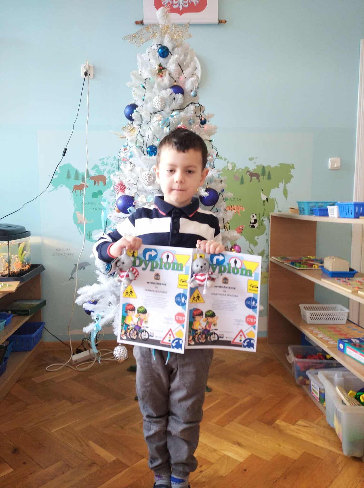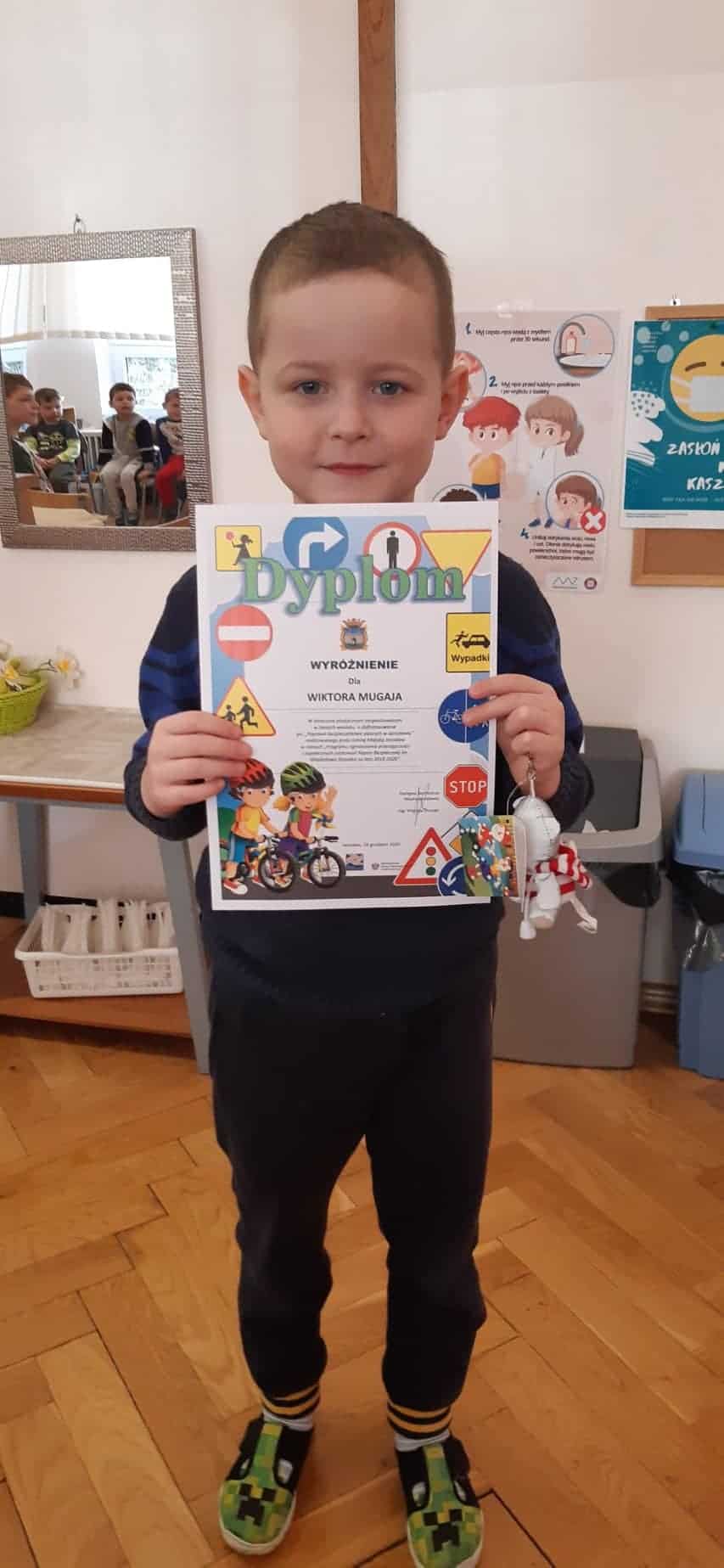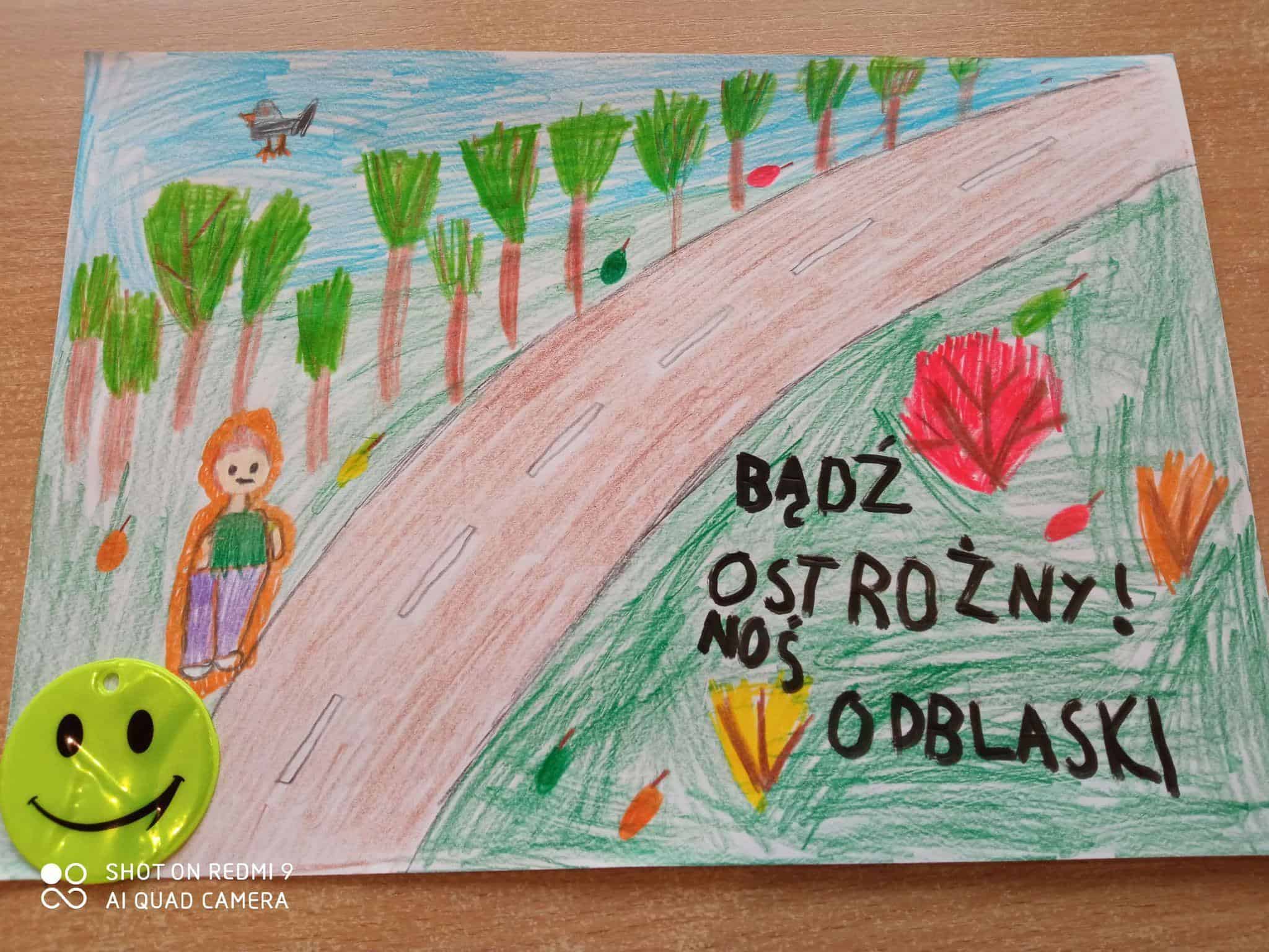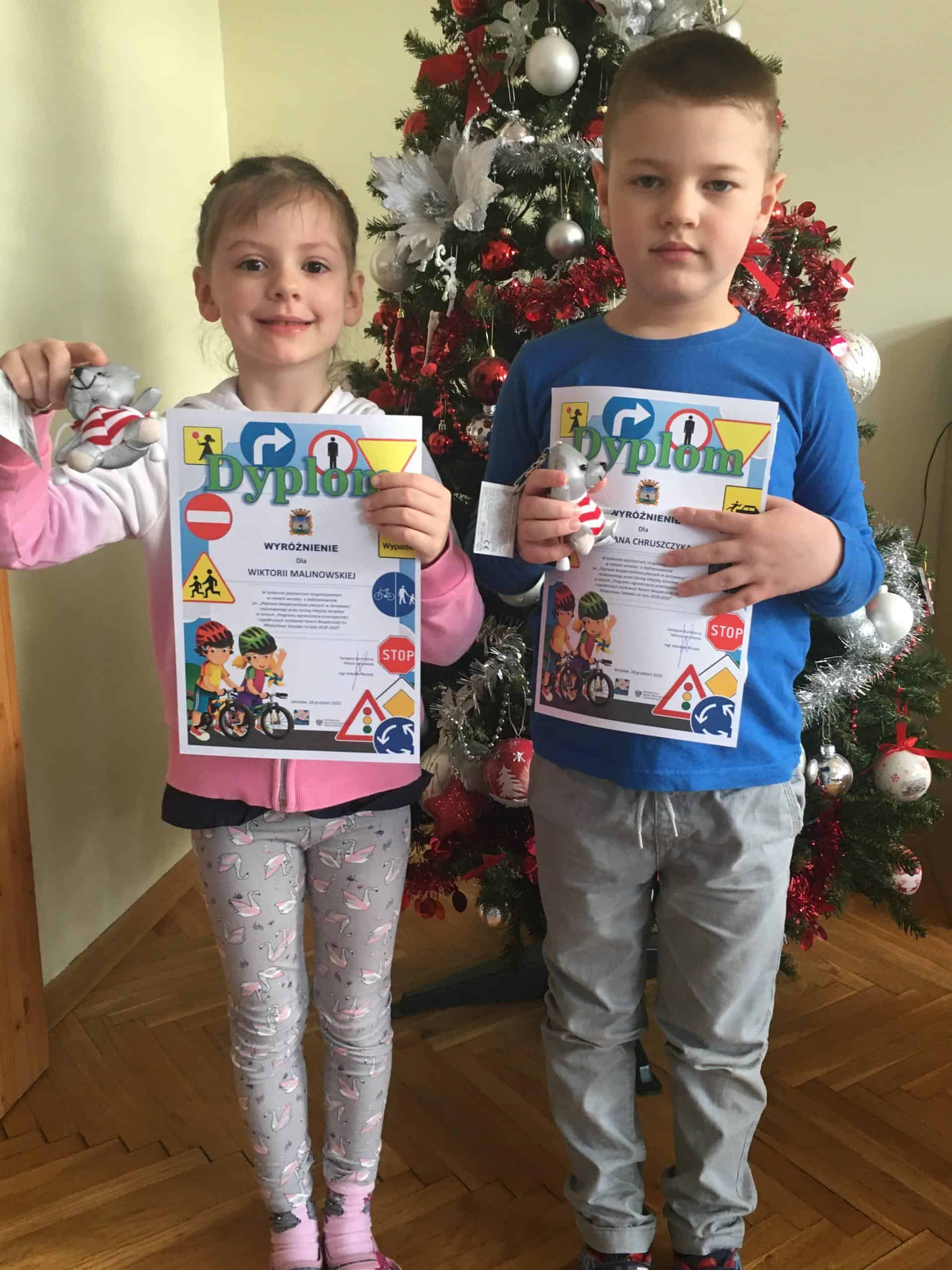 Dzieci, które wzięły udział w konkursie, za swoje twórcze i kreatywne prace, otrzymały dyplomy – wyróżnienia i nagrody w postaci odblaskowych, misiowych breloczków. Wszystkie pozostałe dzieci otrzymały opaski odblaskowe.