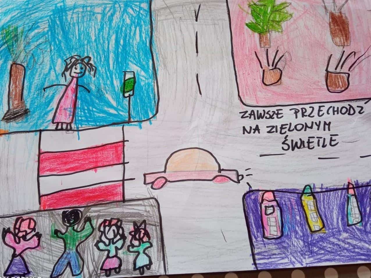 Konkurs ten przyczynił się do utrwalenia i przypomnienia sobie najważniejszych zasad bezpieczeństwa obowiązujących w ruchu drogowym. Poniższe prace udowadniają, iż dzieci doskonale zrozumiały i opanowały temat. Wszyscy wiedzą co robić i jak się zachowywać, aby być bezpiecznym na drodze. Rysunki mówią same za siebie. Zobaczcie sami….