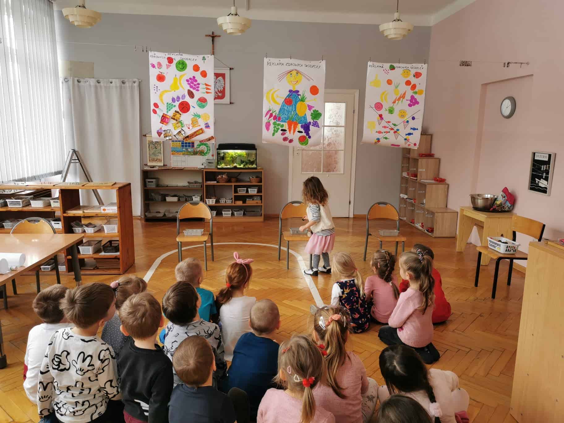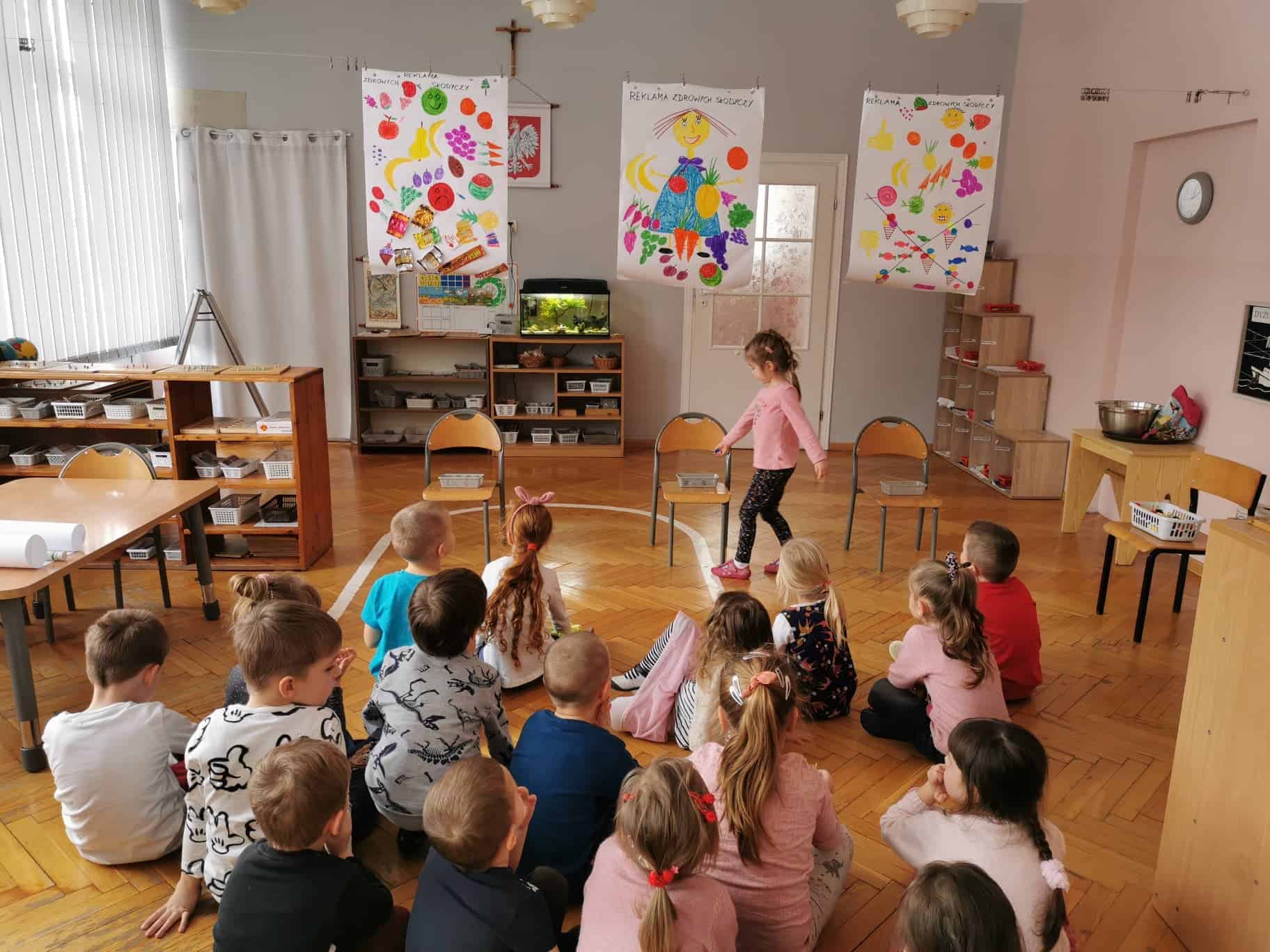 Dzięki przeprowadzonym lekcjom i konkursom dzieci zdobyły nową wiedzę. Przyszedł czas, aby podzielić się tą wiedzą z całą społecznością przedszkolną oraz rodzicami. Zadanie polegało na wypromowaniu wiedzy na temat warzyw i owoców oraz szkodliwości cukru. Zadanie podzielone było na dwie części: