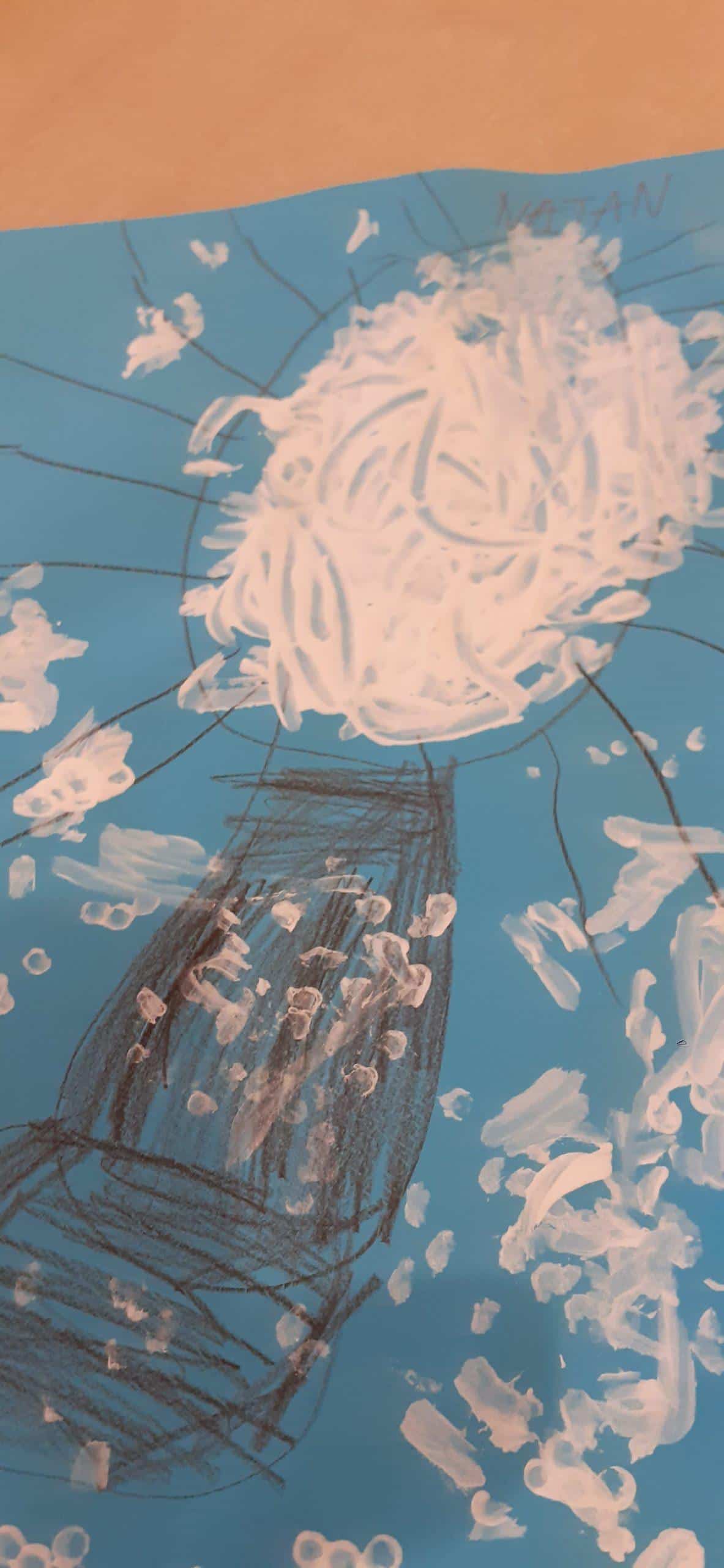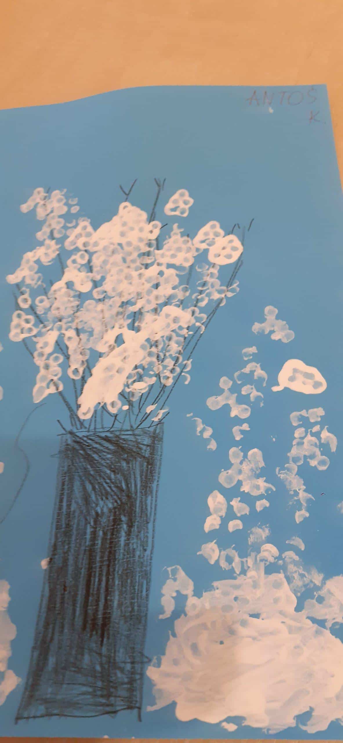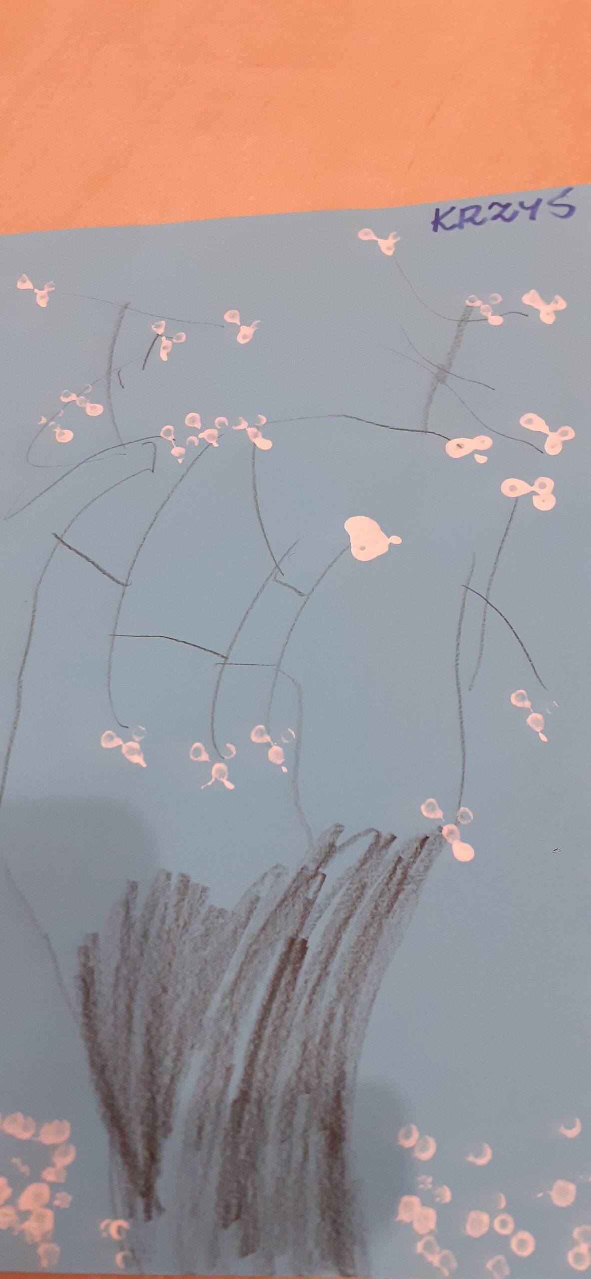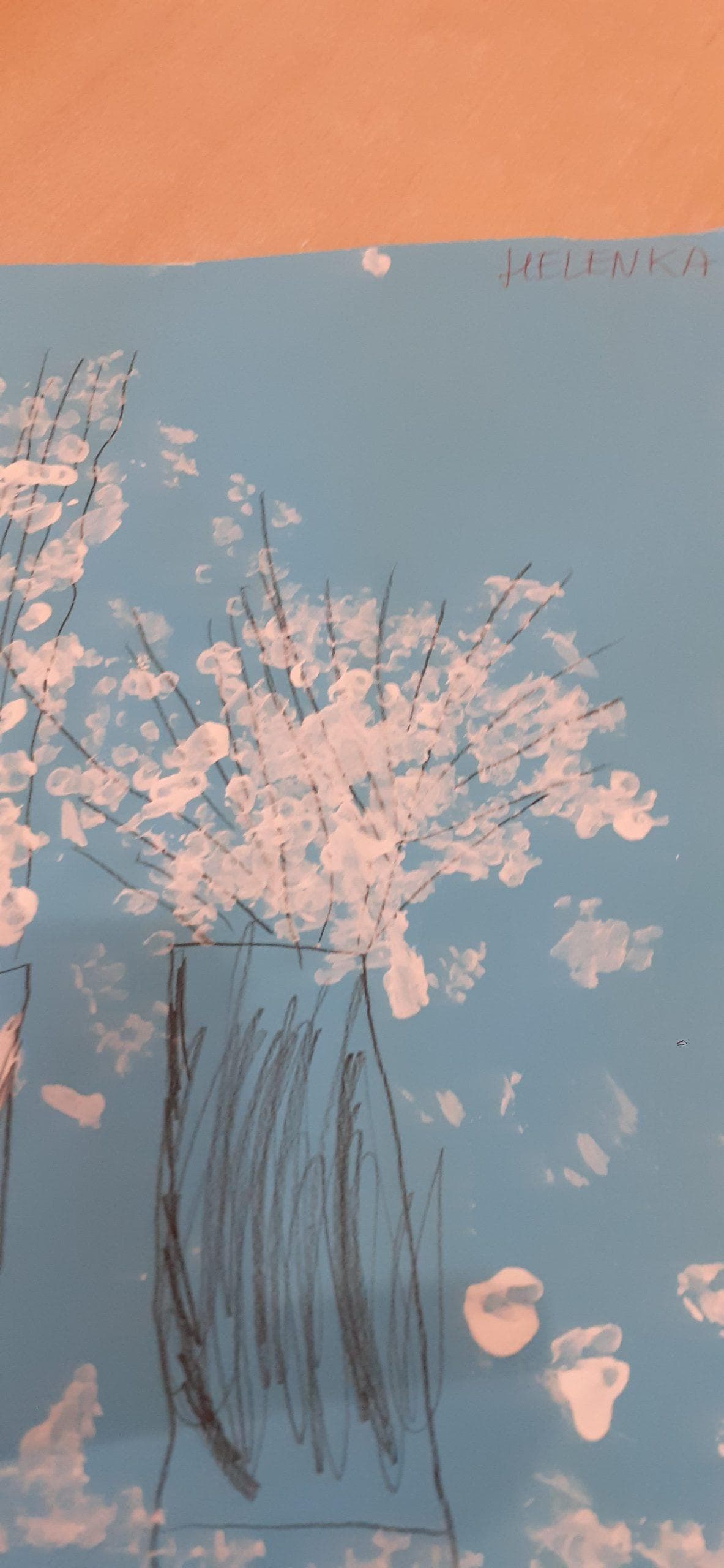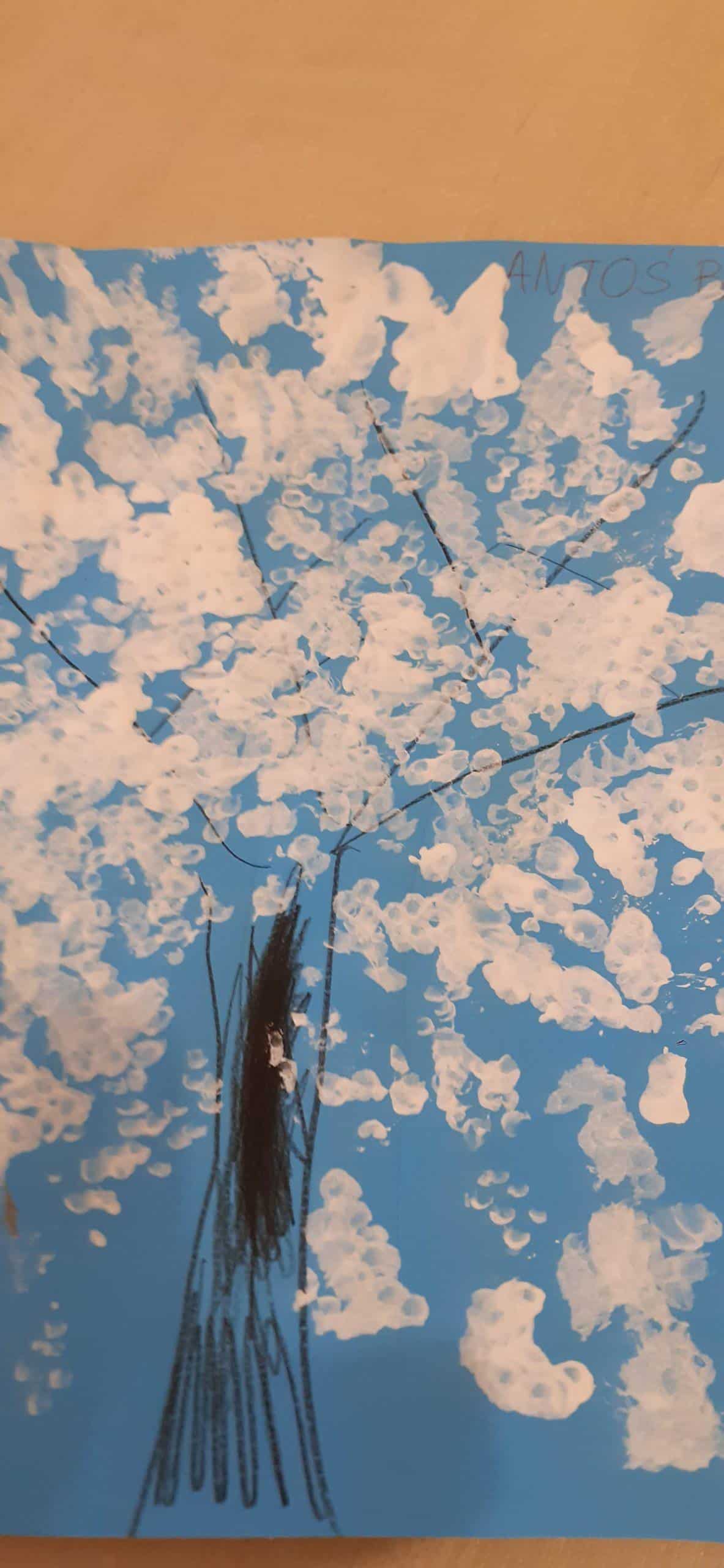 Zima jednak nie odpuszcza, za oknem jest pięknie. Do tej pory udało się nam dwa razy wyjść do ogrodu przedszkolnego . Jednym z elementów pobytu w ogrodzie przedszkolnym była obserwacja roślin i drzew w zimowym uśpieniu. Przy okazji utrwaliliśmy budowę drzewa, wymieniając jego poszczególne elementy budowy. To z kolei zainspirowało dzieci do wykonania pracy plastycznej pt. „Drzewo w zimowej odsłonie”. Dzieci z ochotą przystąpiły do malowania zimowego drzewa patyczkami kosmetycznymi maczanymi w białej farbie. To kolejna nowa technika plastyczna, zresztą bardzo lubiana przez dzieci. Powstały przepiękne zimowe drzewa. BRAWO!.