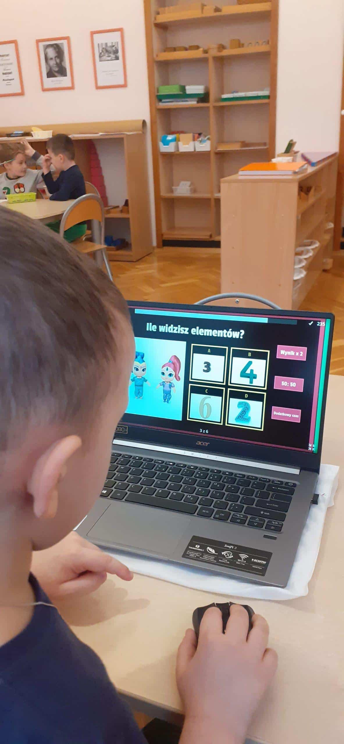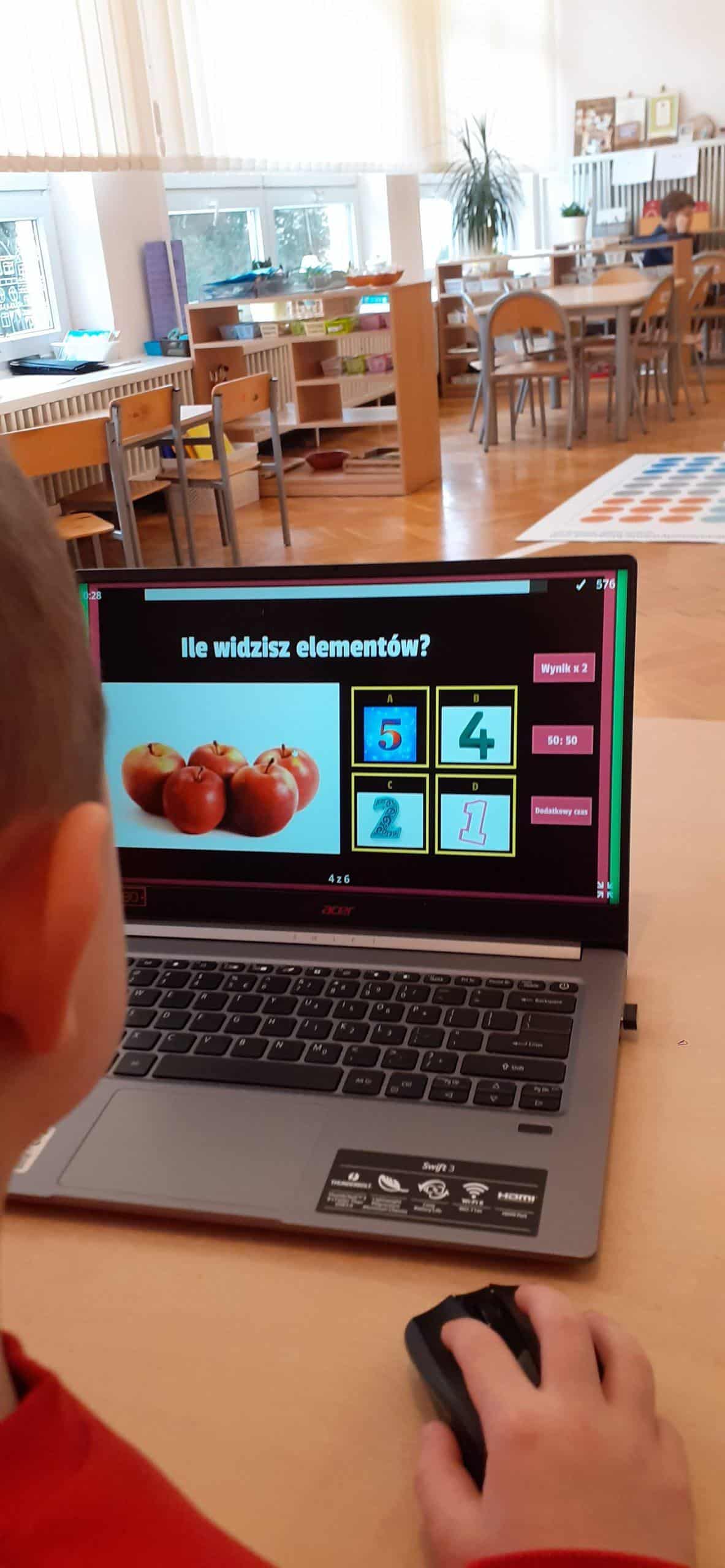Rozwijania kompetencji informatycznych dzieci ciąg dalszy. Mamy nowy laptop , zatem często i chętnie dzieci podejmują  interaktywne aktywności. Ostatnio dzieci podjęły się rozwiązywania rożnych zadań matematycznych, ćwiczyły porównywanie,różnicowanie,przekształcanie, liczenie, dodawanie, odejmowanie, rozwiązywanie matematycznych problemów.  To również doskonała okazja do rozwijania kompetencji matematycznych dzieci połączona  z kształtowaniem odporności emocjonalnej.  Kompetencje matematyczne to zdolność rozwijania i wykorzystywania myślenia  i postawy matematycznej do rozwiązywania problemów i codziennych sytuacji. Przedszkole odgrywa istotną rolę w rozbudzani matematycznej sfery pojęciowej dziecka.  Gry i zabawy matematyczne z wykorzystaniem interaktywnych ćwiczeń i zadań bardzo pomagają w kształtowaniu pojęć matematycznych  oraz w  ćwiczeniu technik matematycznych. To ostatnio ulubiona forma aktywności dzieci.