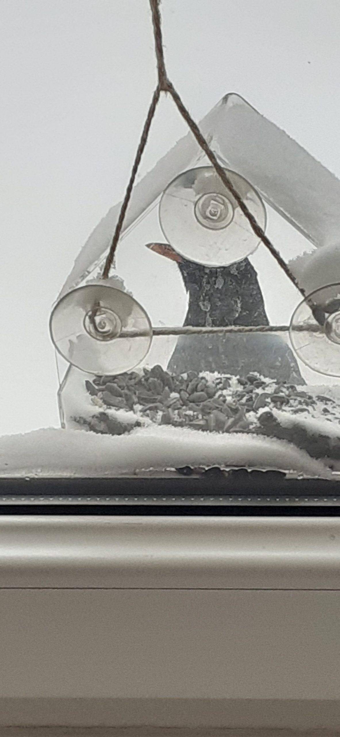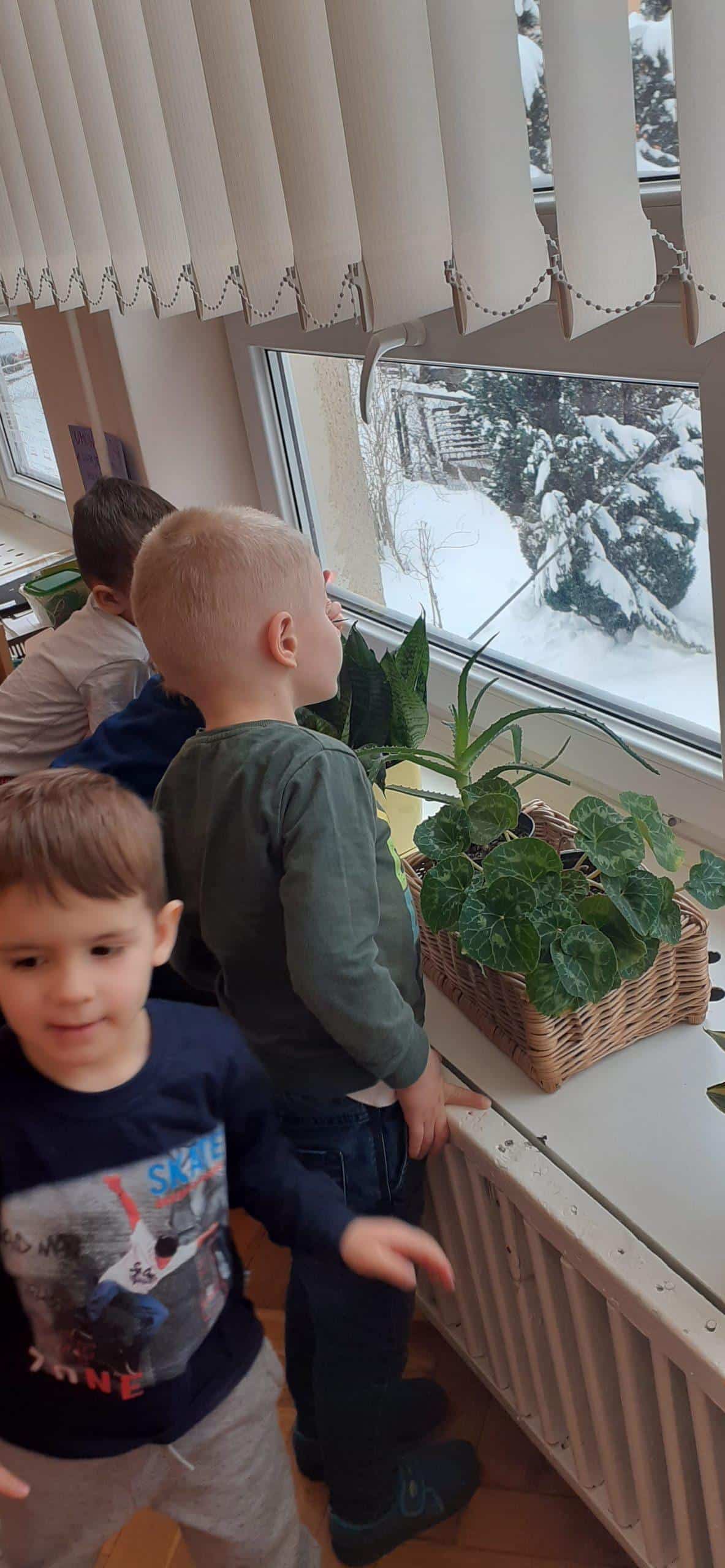 Trzy lata temu na naszym oknie przedszkolnym został zawieszony mały, niepozorny karmnik. Nie spodziewaliśmy się, że dzięki niemu będziemy mieć mnóstwo okazji do obserwowania ptaków, zwłaszcza w okresie zimy. Jak już pisałam od trzech lat stałym bywalcem naszego karmnika jest sikorka Kasia, która zajada się niełuskanym słonecznikiem. Od kilku dni ma konkurencję . W naszym karmniku pojawił się kos. Nie zdziwiło to nas, ponieważ zima ostatnio jest sroga, a ptakom jest coraz trudniej. Regularne wizyty kosa w naszym przyokiennym karmniku dają nam okazję na spotkanie z nim. Kos wcale się nie boi, wręcz zagląda przez szybę do naszej sali, i mam wrażenie w towarzystwie dzieci czuje się doskonale. A dzieci nauczone doświadczeniem z sikorką Kasią , wcale mu nie przeszkadzają , obserwują go ostrożnie, z pewnej odległości od okna. Są zachwycone tym co widzą. Wizyty kosa w karmniku zainspirowały nas, aby zgłębić wiedzę na temat kosów, ich potrzeb, budowy i zachowań. A na końcu podjęliśmy decyzję o nadaniu jemu imienia, było mnóstwo pomysłów, w rezultacie nasz kos otrzymał za zgodą niemalże wszystkich dzieci imię Gucio.
