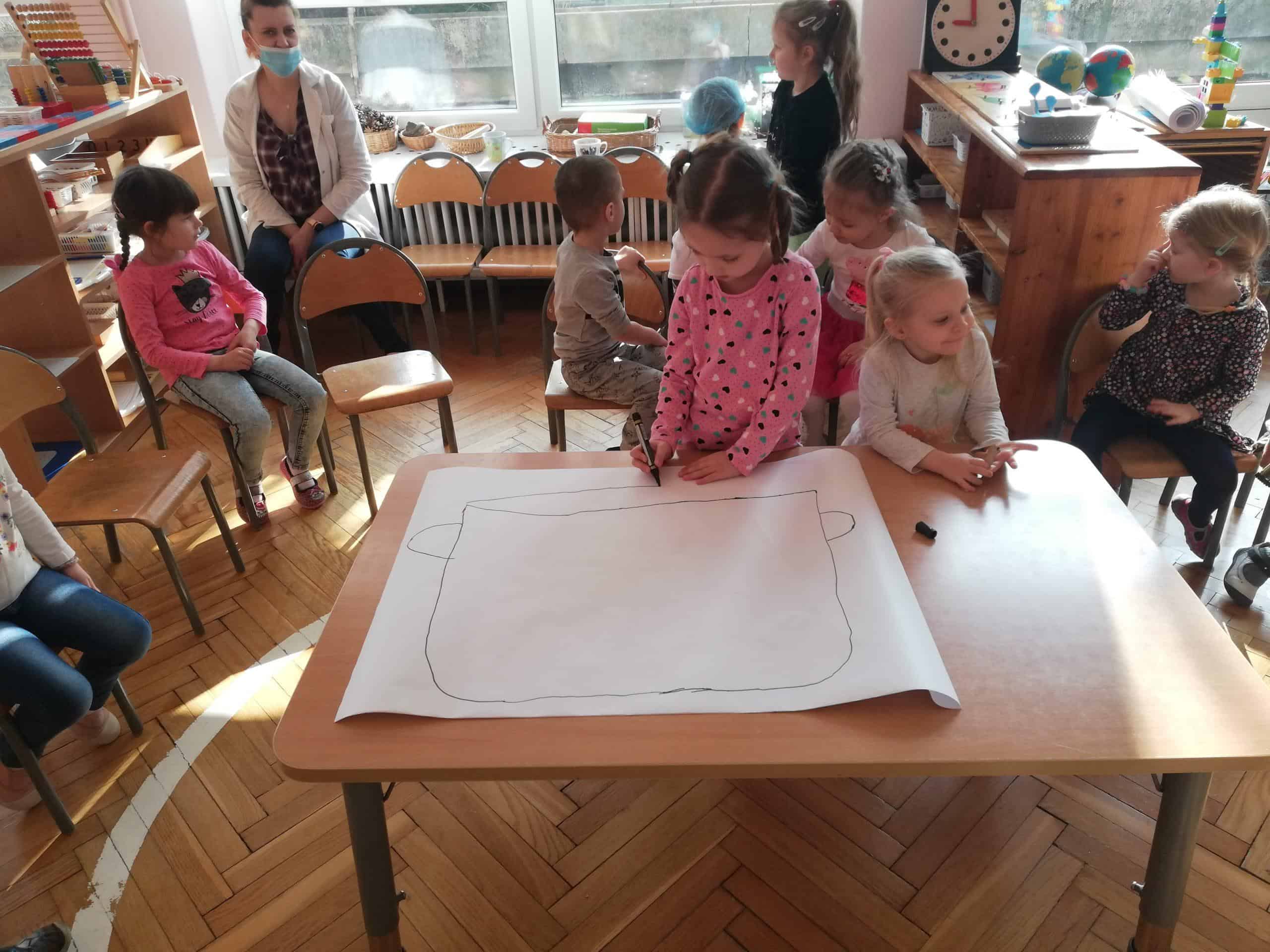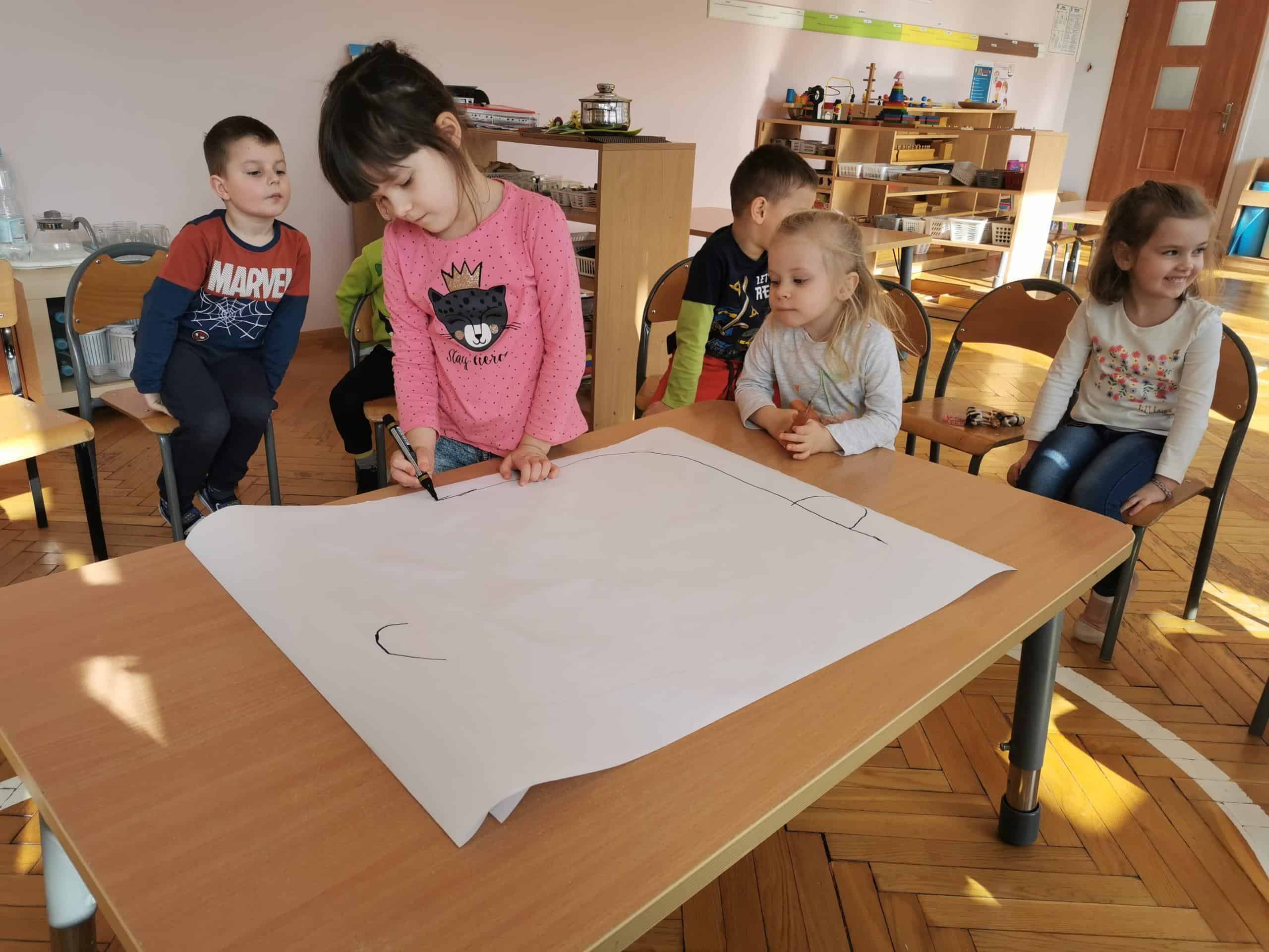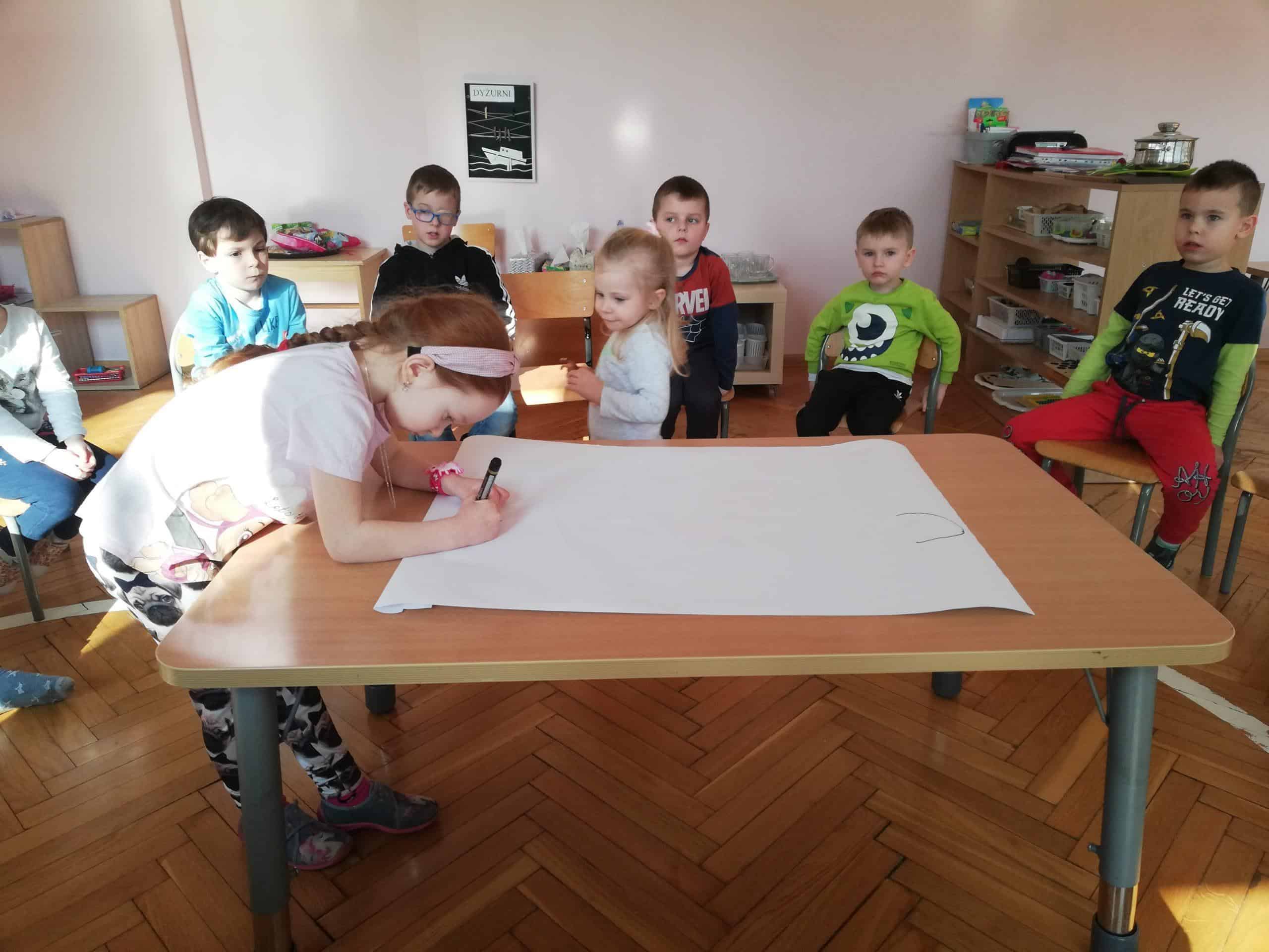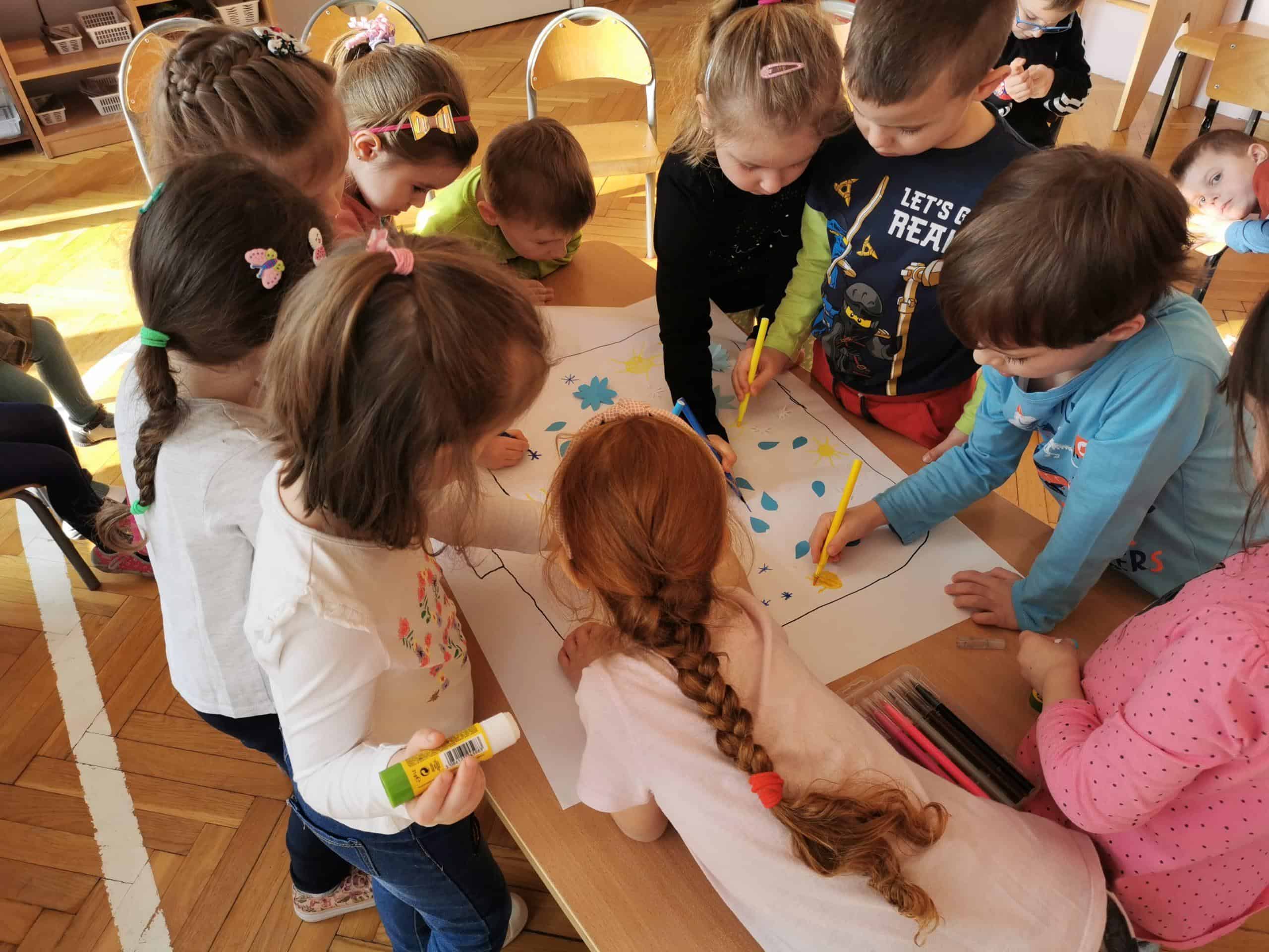 Staropolskie przysłowie „W marcu jak w garncu” doskonale odzwierciedla marcową pogodę. Dlatego postanowiliśmy ugotować własną „marcową zupę”. Przedszkolaki dodawały poszczególne składniki, mieszały – oczywiście wszystko na miarę MasterChefa 🙂 Po kulinarnych przygodach przedszkolaki w ramach grupowej aktywności twórczej zilustrowały przysłowie, które było głównym tematem lekcji.