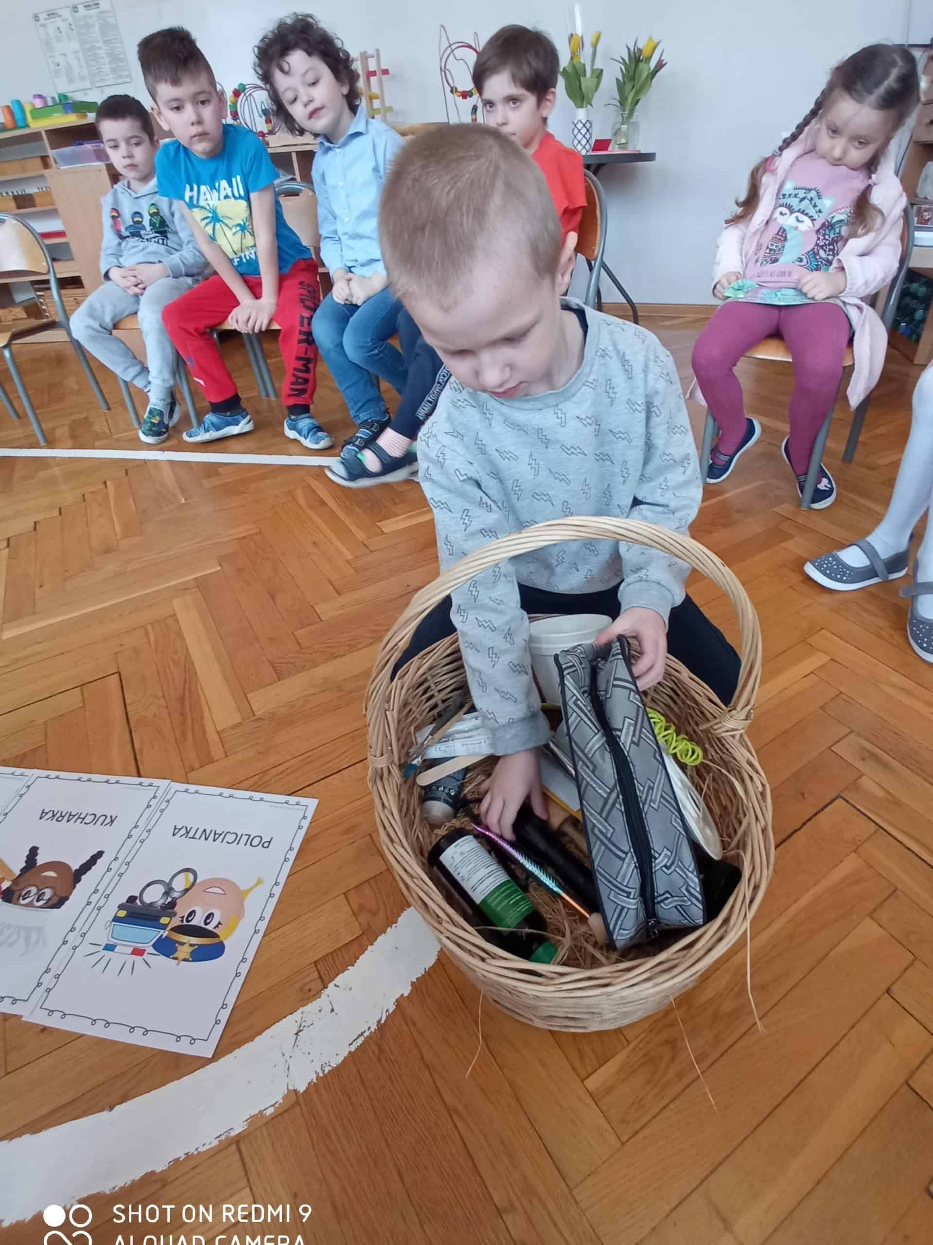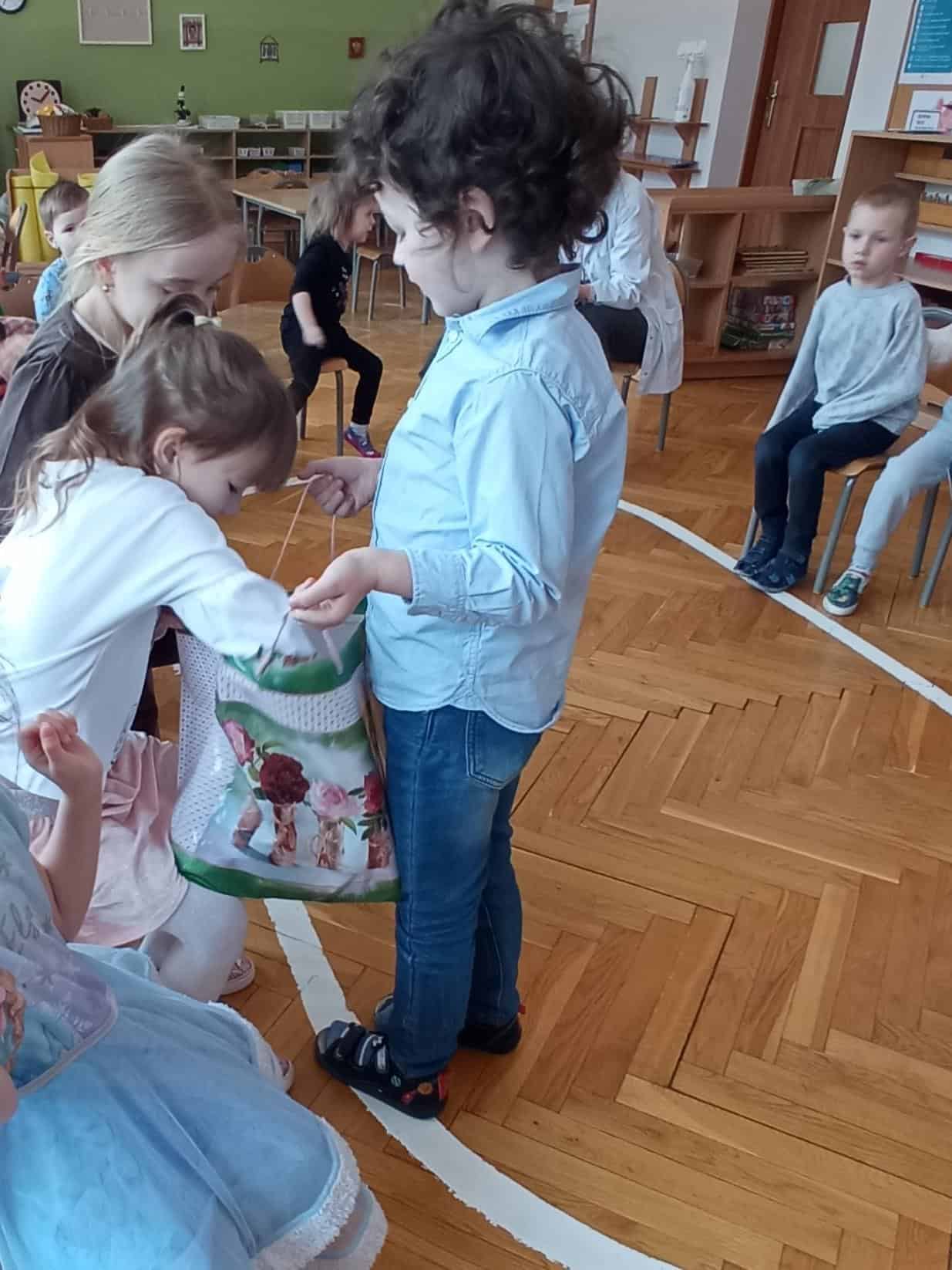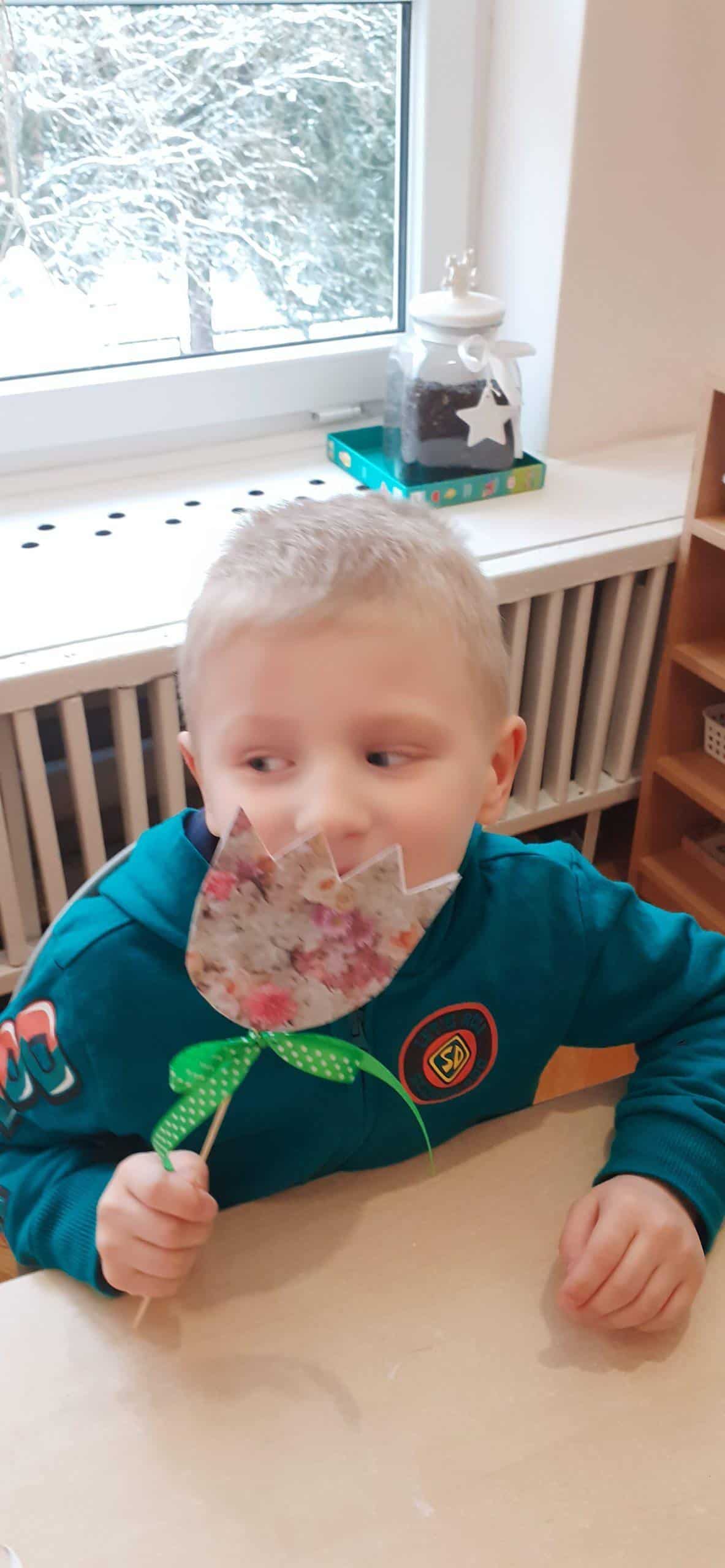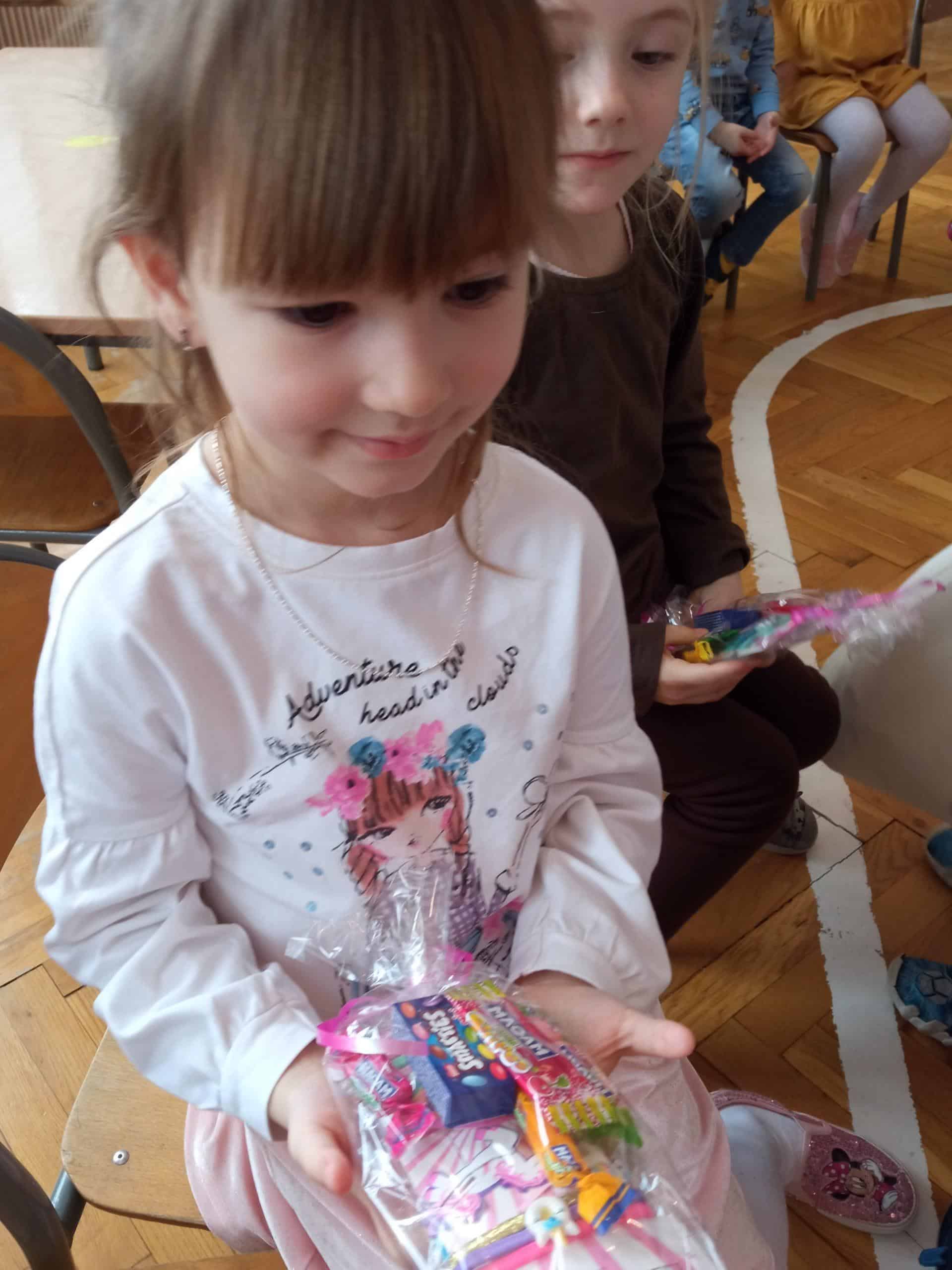Nasze wspólne świętowanie poprzedziła lekcja z zakresu rozwijania mowy i myślenia. Zajęcia Dzień Kobiet – jakie zawody wykonują kobiety? miały na celu przybliżyć dzieciom zawody wykonywane przez współczesne kobiety, oraz nauczyć okazywania szacunku wszystkim kobietom z najbliższego otoczenia. Dzieci rozwiązywały zagadki, rozpoznawały i nazywały zawody. Musiały również skojarzyć przedmioty-rekwizyty z wykonywaną pracą. Samodzielnie czytały i przyporządkowały podpisy do atrybutów danego zawodu. Na koniec chłopcy złożyli dziewczynkom życzenia, Hubercik częstował słodyczami a inni nasi dżentelmeni wręczali naszym drogim dziewczynkom piękne upominki przygotowane przez Rodziców, za które jeszcze raz bardzo serdecznie DZIĘKUJEMY.