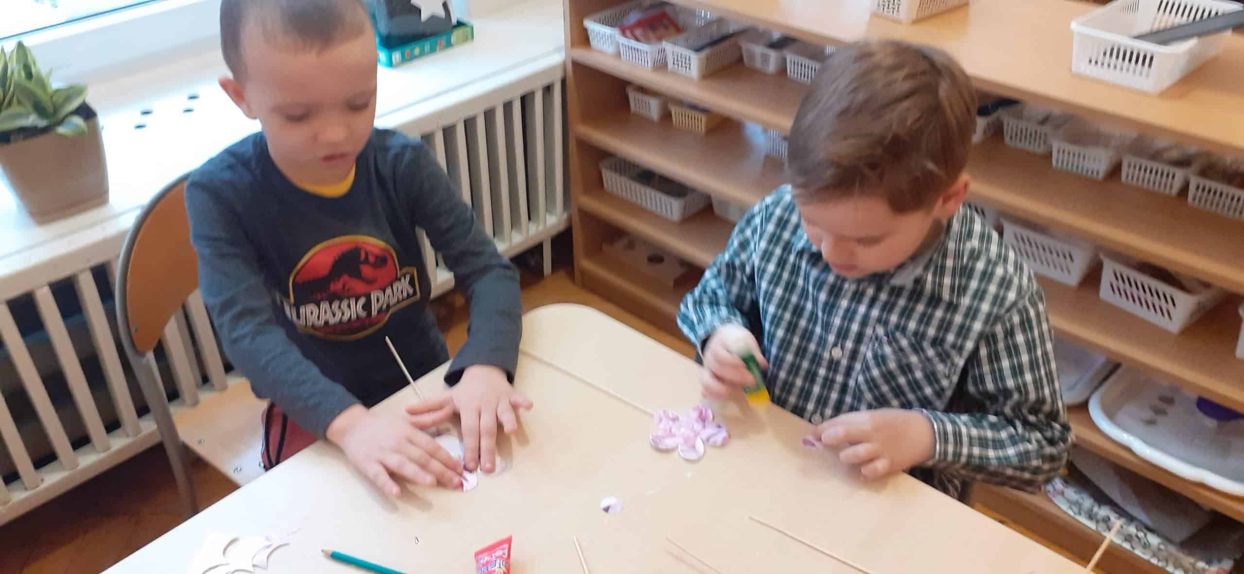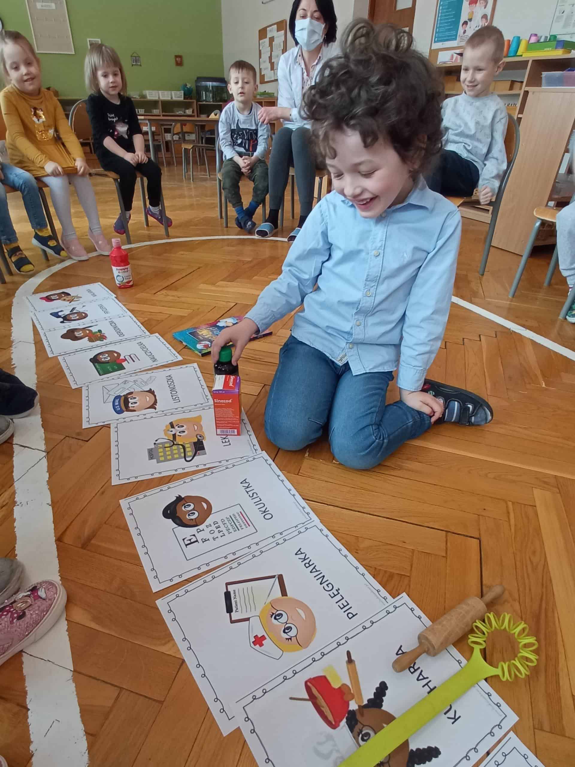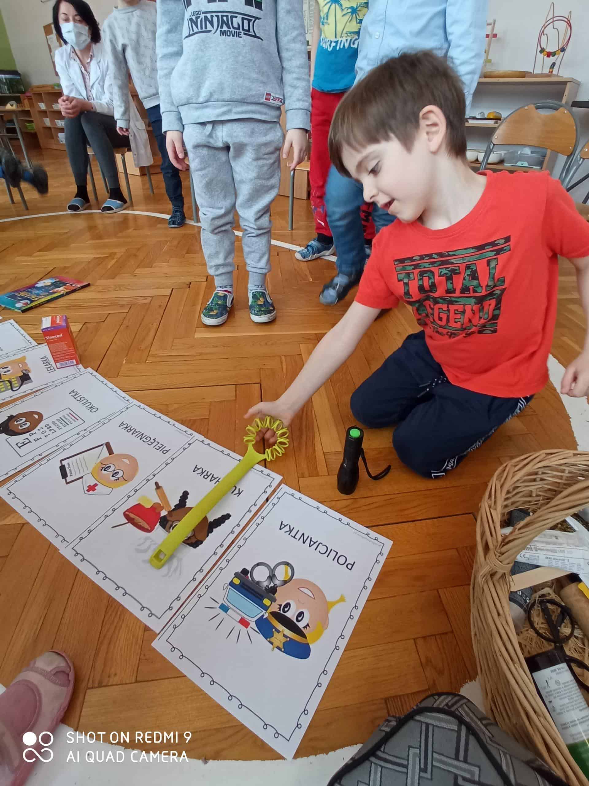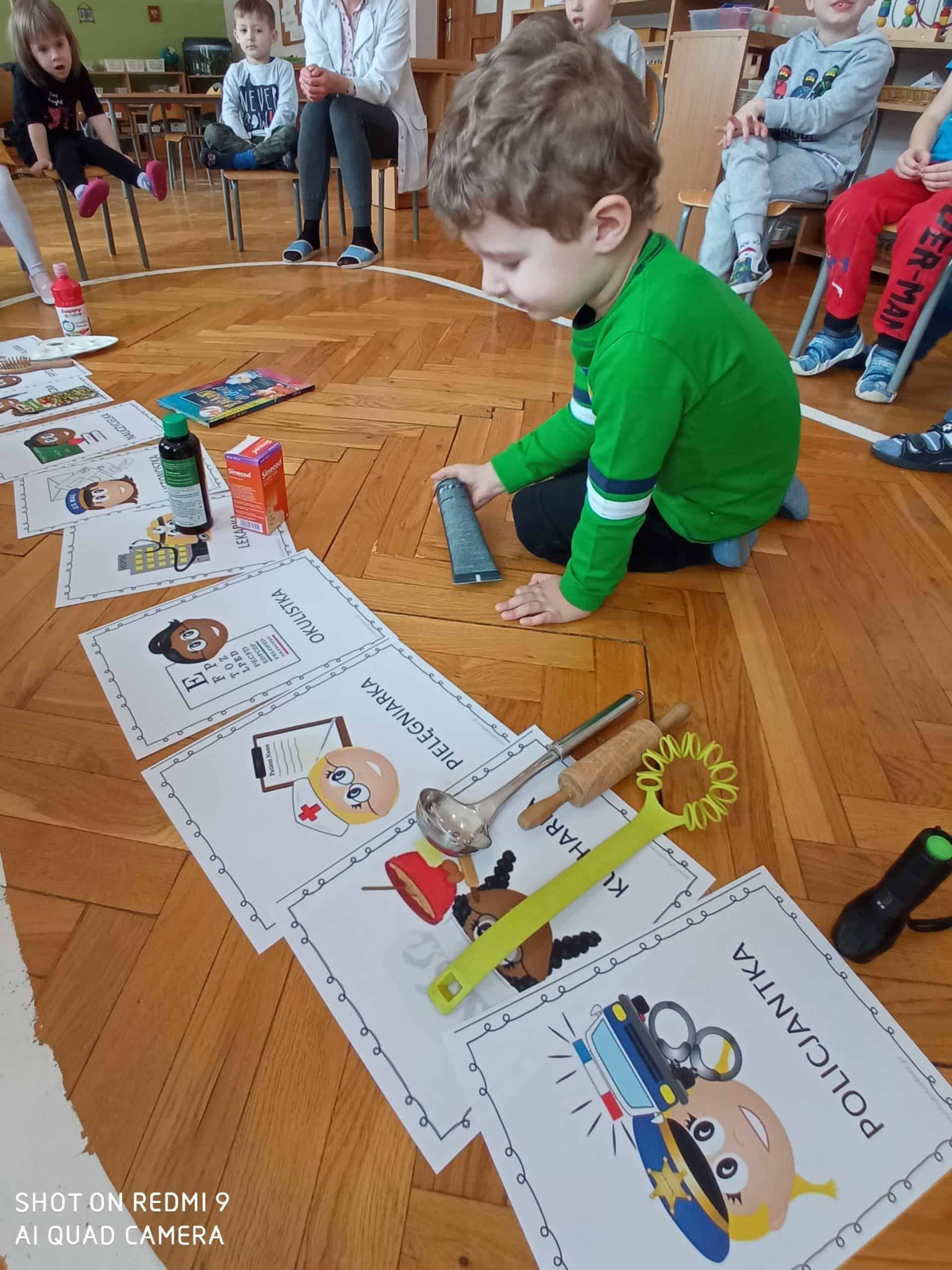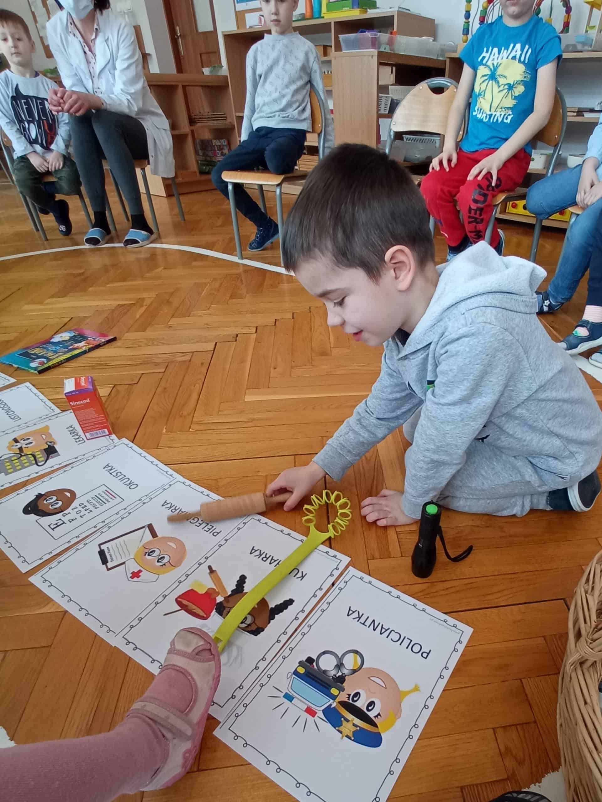 Nasze wspólne świętowanie poprzedziła lekcja z zakresu rozwijania mowy i myślenia. Zajęcia Dzień Kobiet – jakie zawody wykonują kobiety? miały na celu przybliżyć dzieciom zawody wykonywane przez współczesne kobiety, oraz nauczyć okazywania szacunku wszystkim kobietom z najbliższego otoczenia. Dzieci rozwiązywały zagadki, rozpoznawały i nazywały zawody. Musiały również skojarzyć przedmioty-rekwizyty z wykonywaną pracą. Samodzielnie czytały i przyporządkowały podpisy do atrybutów danego zawodu. Na koniec chłopcy złożyli dziewczynkom życzenia, Hubercik częstował słodyczami a inni nasi dżentelmeni wręczali naszym drogim dziewczynkom piękne upominki przygotowane przez Rodziców, za które jeszcze raz bardzo serdecznie DZIĘKUJEMY.