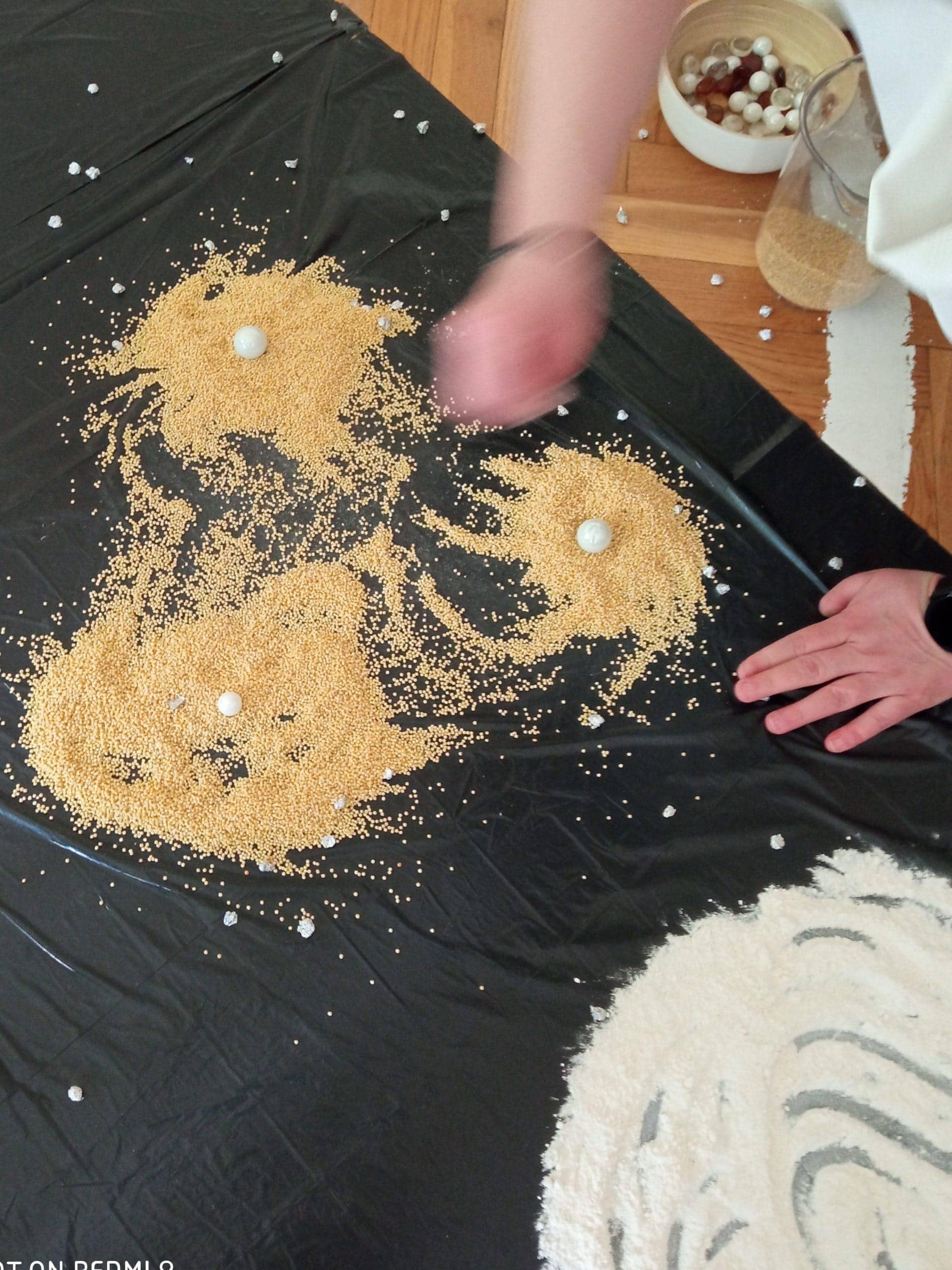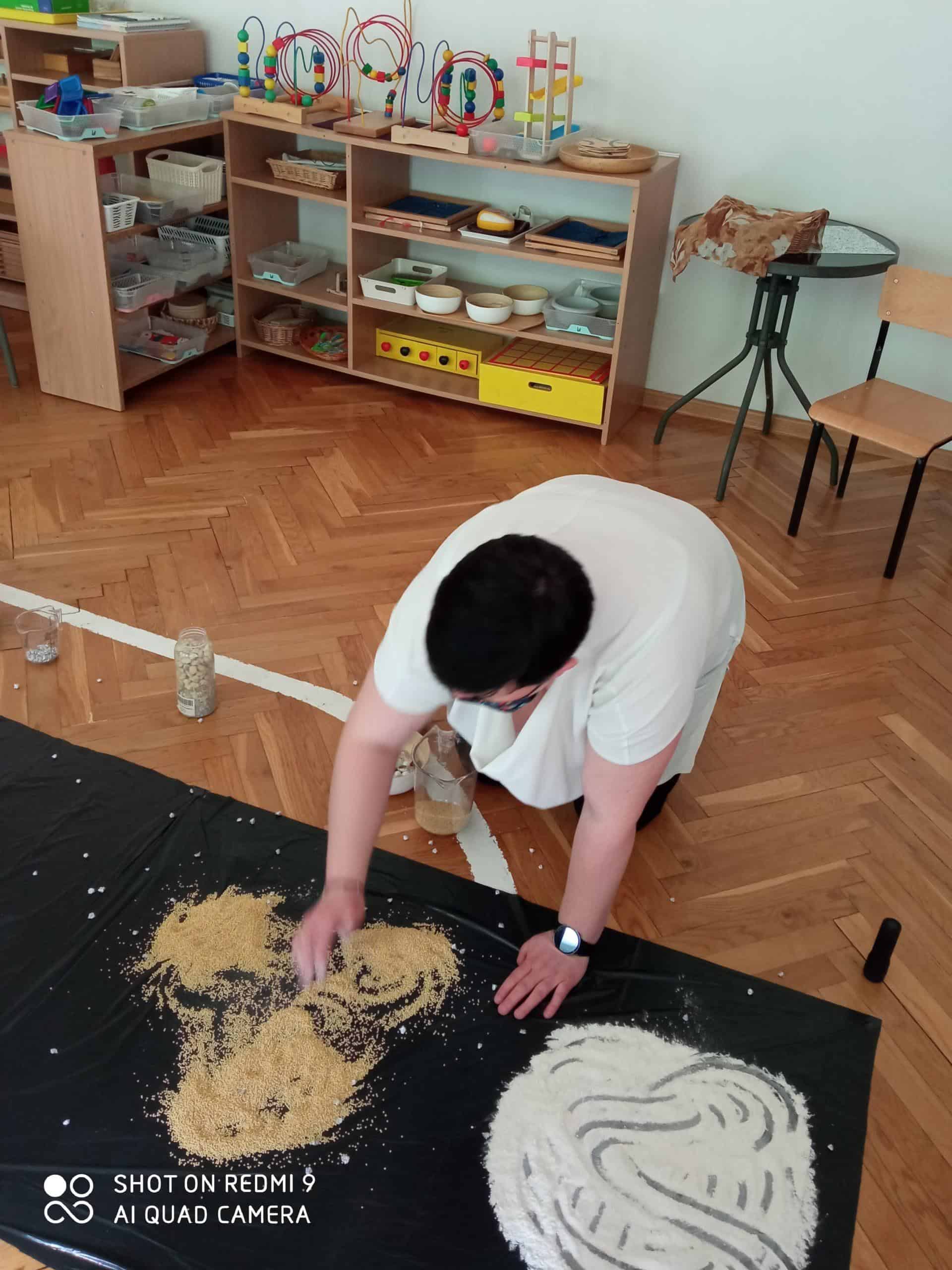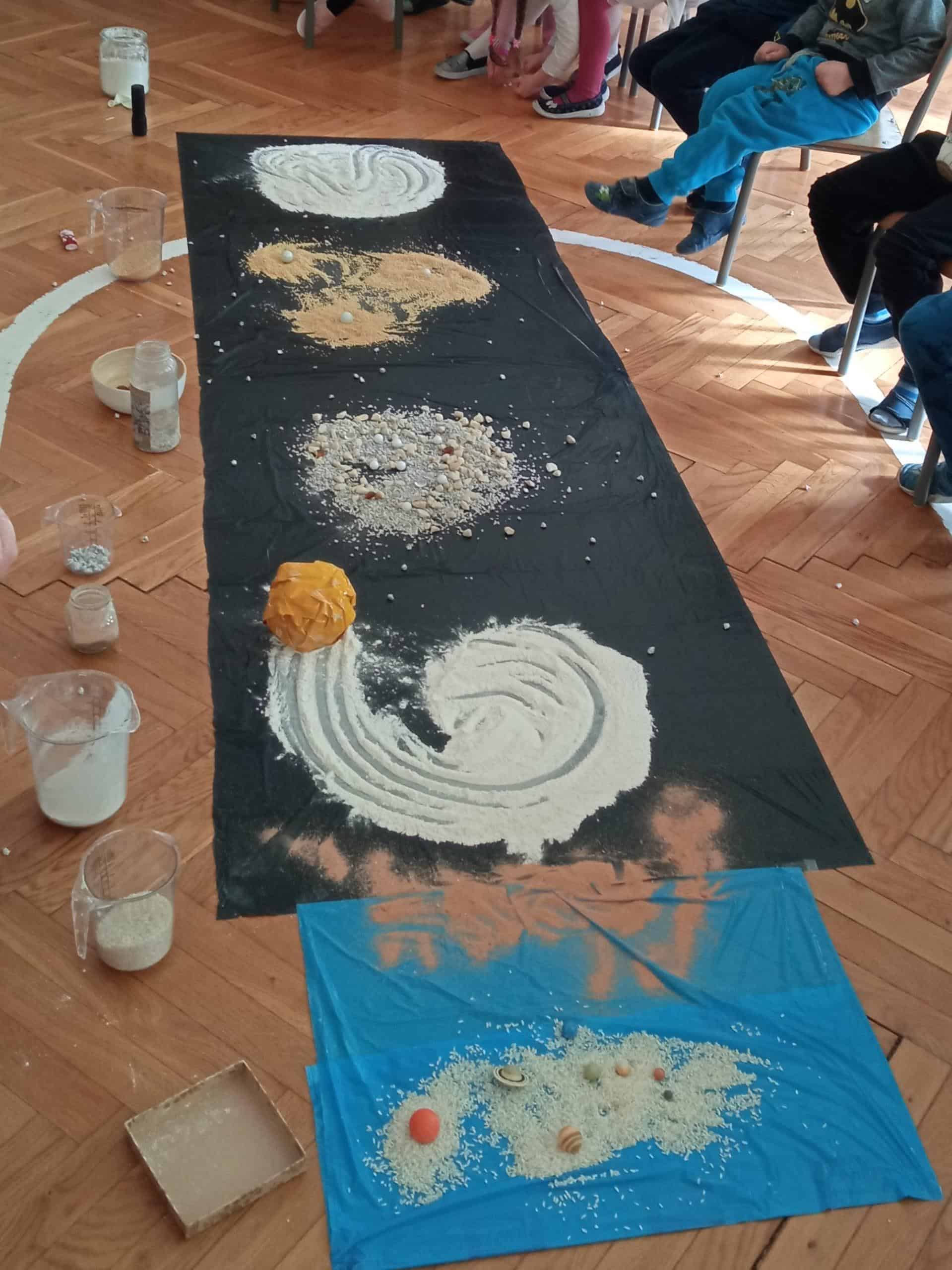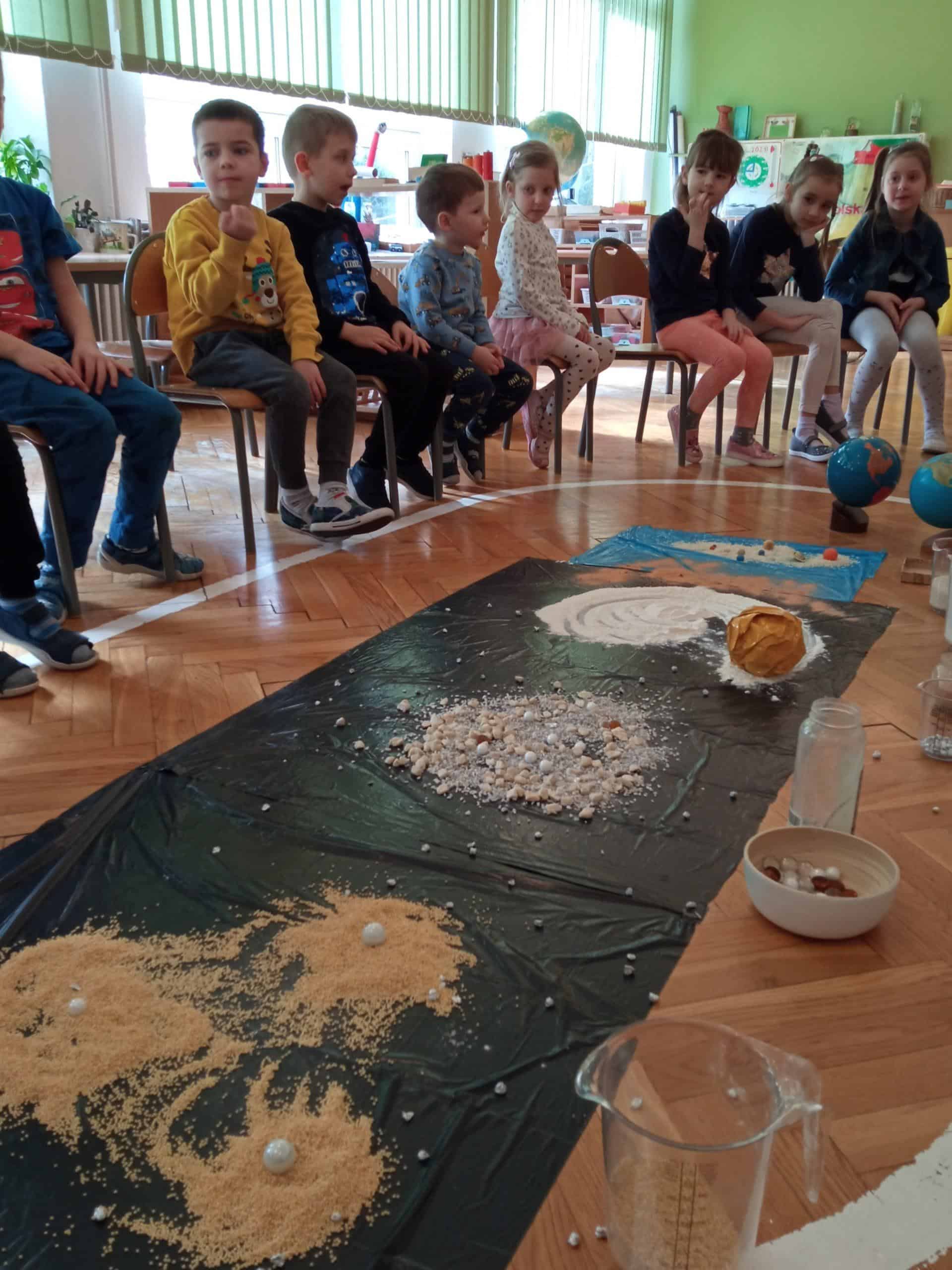 Pedagogika Marii Montessori zachęcała do tego, żeby patrzeć szeroko i pokazywać dzieciom całość świata w przeróżnych odsłonach. Z pewnością bardzo pomocne są w tym nasze montessoriańskie Wielkie Lekcje. Pierwsza z nich – Powstanie Wszechświata – odbyła się w naszej grupie w tym tygodniu. Od wielkiego wybuchu, powstania atomu, tworzeniu się galaktyk, gwiazd i planet, po powstanie kontynentów na naszej planecie. Pierwsza Wielka Lekcja jest chyba najbardziej widowiskowa – brokat, wybuchy i zimne ognie, świecące kamyczki i szklane kulki, to wszystko sprawia, że dzieci przeżywają ją w dużym skupieniu i ciszy. Wielkie Lekcje Montessori są lekcjami jedynie z nazwy. Tak naprawdę z klasyczną lekcją nie mają nic wspólnego. To swego rodzaju pokaz, zaproszenie do magicznego świata wiedzy. Wydarzenie to ma więcej ze spektaklu teatralnego albo pasjonującej opowieści, bowiem Wielkie Lekcje mają dzieci inspirować, zachęcić do poszukiwań, pytań, samodzielnej pracy i pomysłów na własne działania. Nauczyciel nie wyjaśnia nic szczegółowo, nie operuje zbyt trudnymi pojęciami. Jego zadaniem jest dać ogólny obraz. Dla dzieci jest to trochę jak opowieść ze świata magii, ale wszystko to, co mówi nauczyciel, jest prawdziwe. Wielka Lekcja nie służy temu, żeby dzieci zrozumiały wszystkie procesy fizyczne i chemiczne, ma ona przede wszystkim zachwycić i zachęcić do zadawania pytań.
