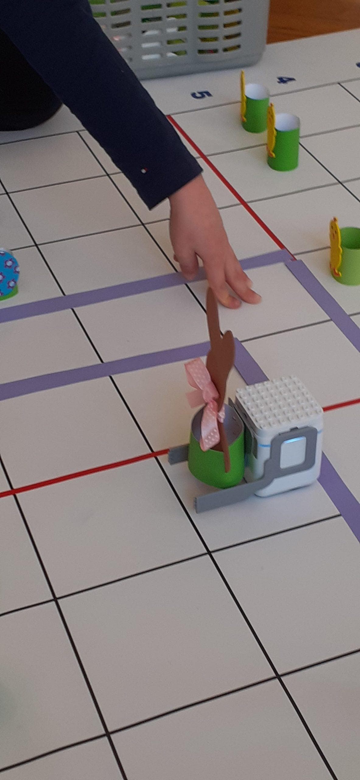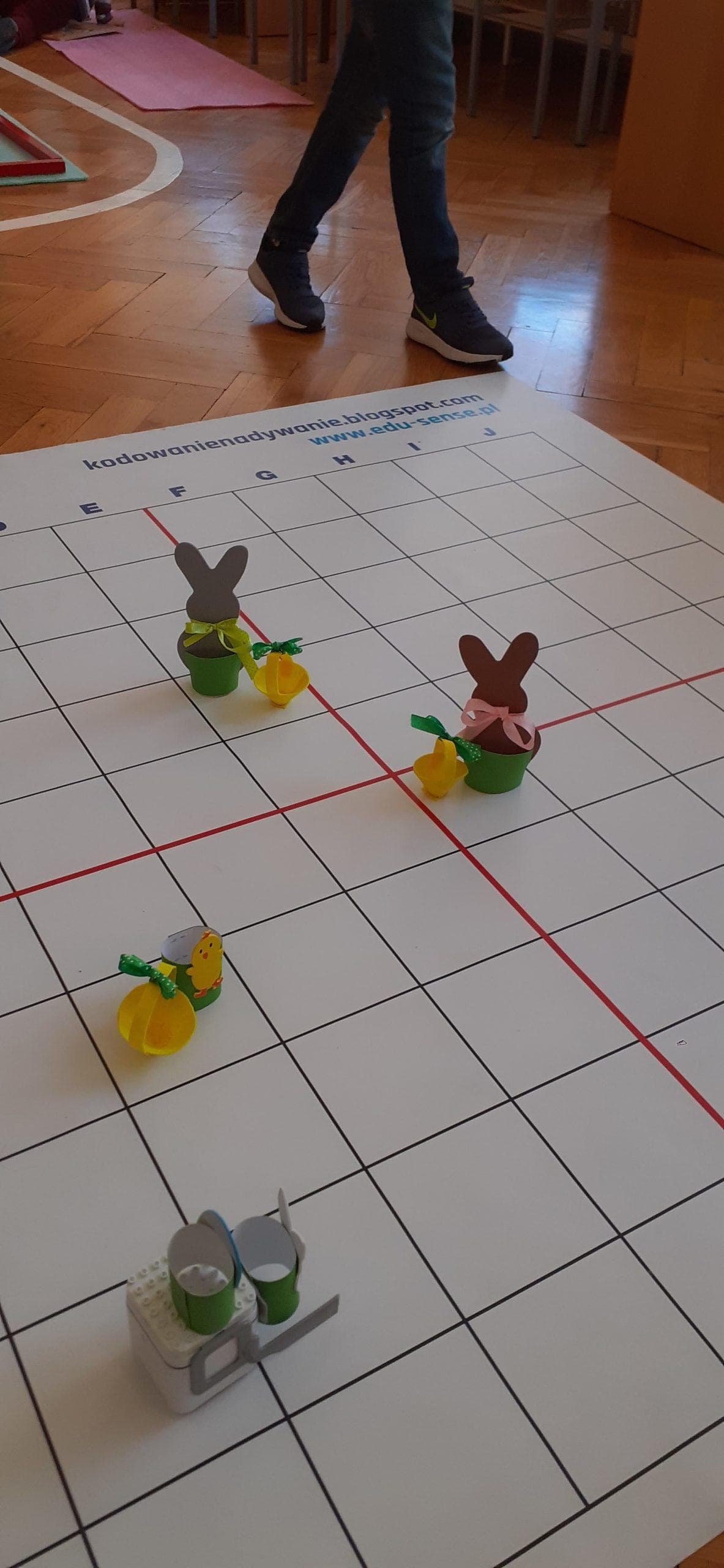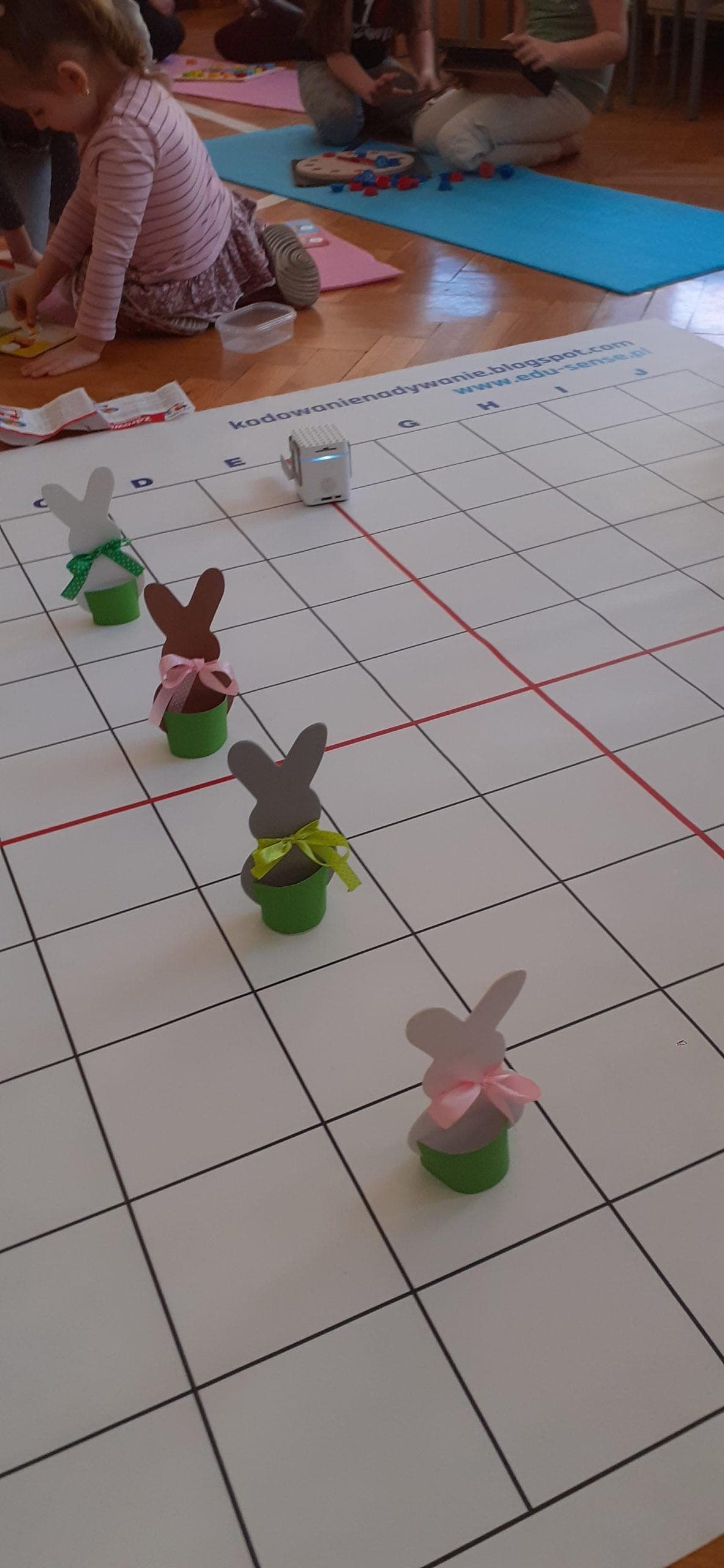 22 marca odbył się Dzień Nowych Technologii w Edukacji. To inicjatywa Ministerstwa Edukacji i Nauki, której celem jest popularyzowanie technologii informacyjno-komunikacyjnych wykorzystywanych w pracy z dziećmi i uczniami. W tym dniu w placówkach oświatowych organizowane są zajęcia, warsztaty, prezentacje multimedialne, gry, zabawy, projekcje filmów, spotkania z ciekawymi osobami. Dzieciom z naszej grupy już nie są obce nowe technologie. Na co dzień mają do czynienia z kodowaniem i programowaniem, z prezentacjami multimedialnymi. Kodowanie Ozobota , czy programowanie Genibota to aktywności bardzo lubiane przez dzieci starsze. Na okoliczność Dnia Nowych Technologii w Oświacie zorganizowałam dzieciom Wielkanocne Kodowanie z Genibotem. Dzieci wykonywały różne zadania i ćwiczenia polegające na programowaniu Genibota. Tematyka świąteczna, więc aktywnościom dzieci towarzyszyły zajączki, kurczaczki oraz pisanki. Wykonałam szereg akcesoriów świątecznych, aby można je było przypiąć do Genibota i uczynić te zajęcia bardziej ciekawsze i atrakcyjne. Dzieci programowały Genibota ,aby poruszał się na macie do kodowania w określony sposób – np „kupując” tylko pisanki w określonym kolorze, czy też, odwiedzając świąteczne kurczaczki, możliwości było sporo , dzieci same wymyślały proste zadania i kodowały ruch Genibota za pomocą kart kodów( jedź prosto, zawróć, obróć się w prawo , obróć się w lewo itp.) Zadania te wymagały sporej uwagi, koncentracji ,zastosowania i rozumienia pojęć związanych z kierunkami w przestrzeni, a także logicznego myślenia i współpracy. Udało się – dzieci bogacą nowe doświadczenia związane z rozwijaniem kompetencji cyfrowych przy zastosowaniu nowych technologii. Brawo!