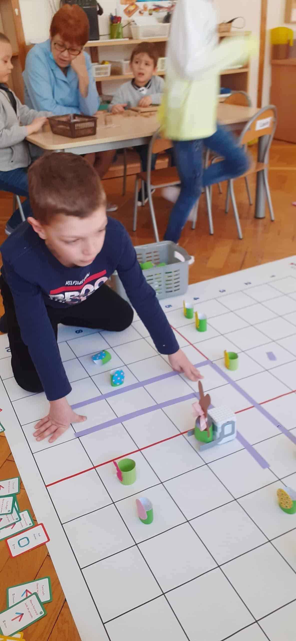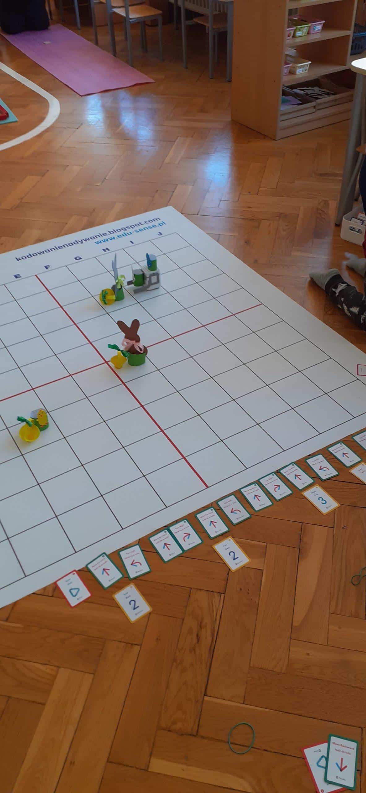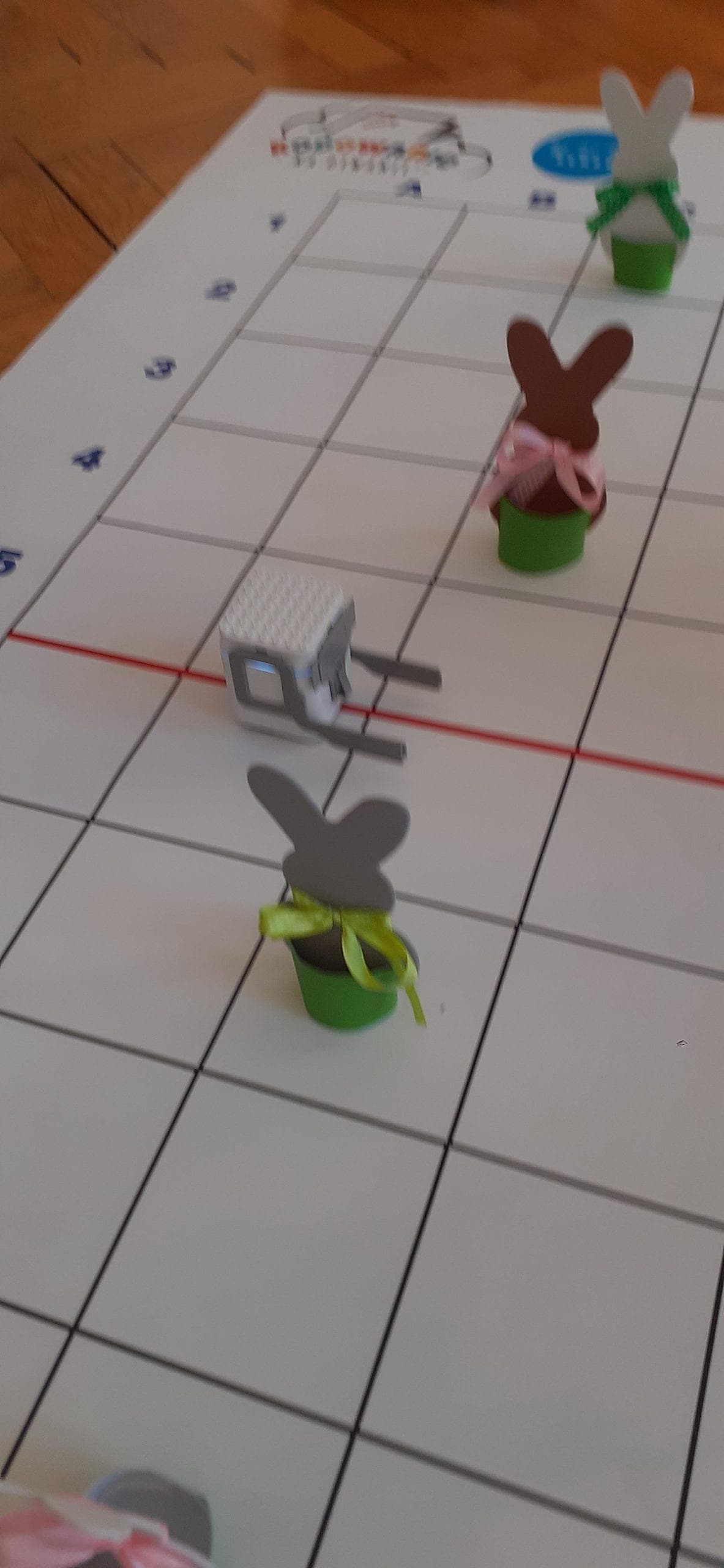 22 marca odbył się Dzień Nowych Technologii w Edukacji. To inicjatywa Ministerstwa Edukacji i Nauki, której celem jest popularyzowanie technologii informacyjno-komunikacyjnych wykorzystywanych w pracy z dziećmi i uczniami. W tym dniu w placówkach oświatowych organizowane są zajęcia, warsztaty, prezentacje multimedialne, gry, zabawy, projekcje filmów, spotkania z ciekawymi osobami. Dzieciom z naszej grupy już nie są obce nowe technologie. Na co dzień mają do czynienia z kodowaniem i programowaniem, z prezentacjami multimedialnymi. Kodowanie Ozobota , czy programowanie Genibota to aktywności bardzo lubiane przez dzieci starsze. Na okoliczność Dnia Nowych Technologii w Oświacie zorganizowałam dzieciom Wielkanocne Kodowanie z Genibotem. Dzieci wykonywały różne zadania i ćwiczenia polegające na programowaniu Genibota. Tematyka świąteczna, więc aktywnościom dzieci towarzyszyły zajączki, kurczaczki oraz pisanki. Wykonałam szereg akcesoriów świątecznych, aby można je było przypiąć do Genibota i uczynić te zajęcia bardziej ciekawsze i atrakcyjne. Dzieci programowały Genibota ,aby poruszał się na macie do kodowania w określony sposób – np „kupując” tylko pisanki w określonym kolorze, czy też, odwiedzając świąteczne kurczaczki, możliwości było sporo , dzieci same wymyślały proste zadania i kodowały ruch Genibota za pomocą kart kodów( jedź prosto, zawróć, obróć się w prawo , obróć się w lewo itp.) Zadania te wymagały sporej uwagi, koncentracji ,zastosowania i rozumienia pojęć związanych z kierunkami w przestrzeni, a także logicznego myślenia i współpracy. Udało się – dzieci bogacą nowe doświadczenia związane z rozwijaniem kompetencji cyfrowych przy zastosowaniu nowych technologii. Brawo!