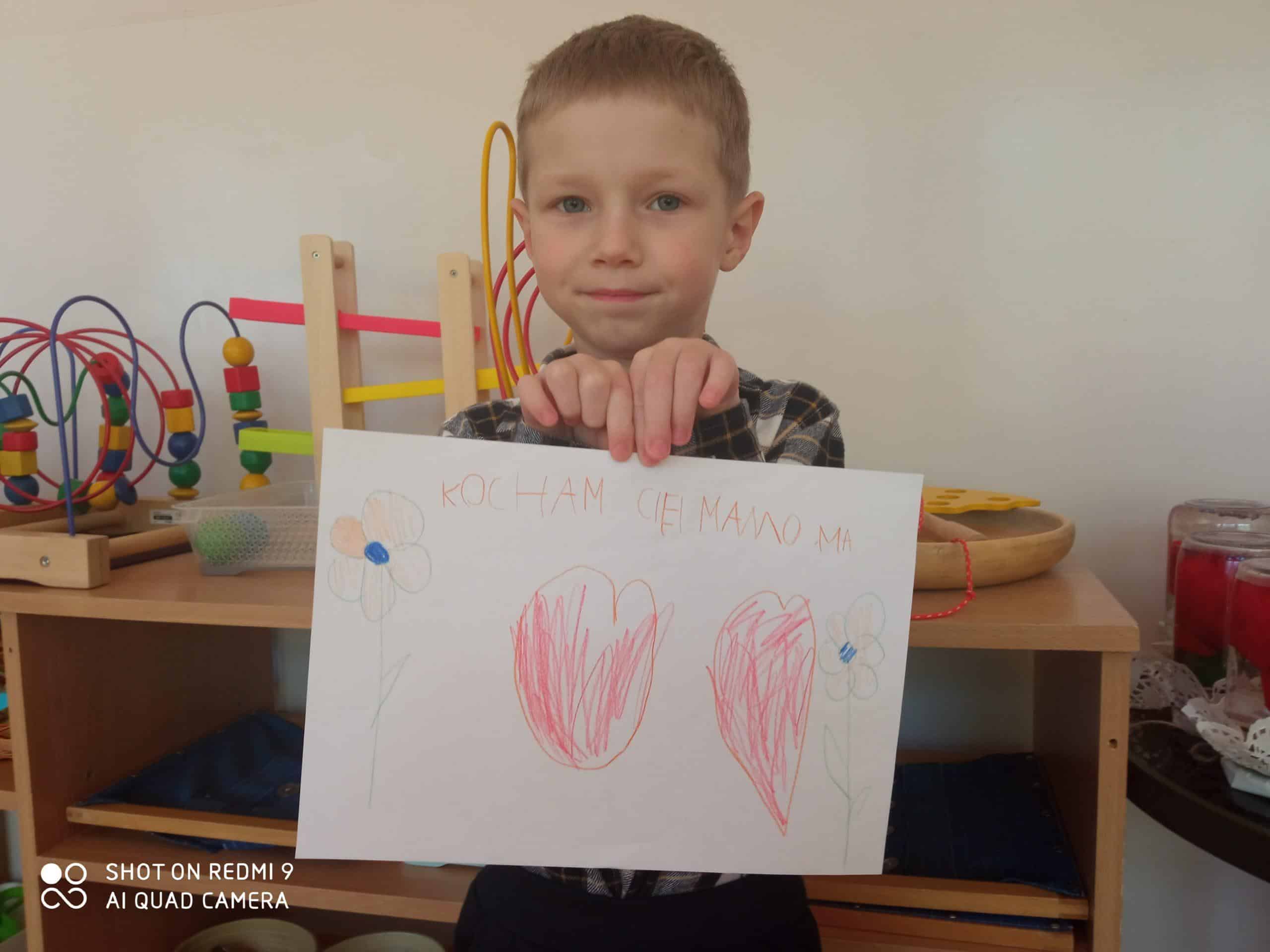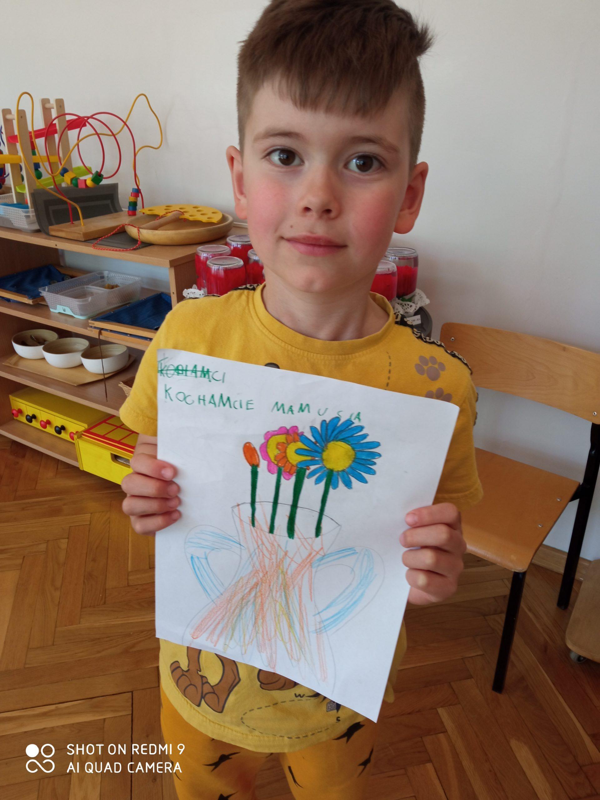 Te, jakże poważne rozmowy stały się dla nas punktem wyjścia do celebrowania w naszej grupie Dnia Matki. 26 maja to data wyjątkowa dla każdego dziecka, bo przypomina nam jak ważne i potrzebne są dla nas nasze Mamy, a powyższe wypowiedzi dzieci nie potrzebują już żadnego dodatkowego komentarza, bo jak powiedział Hubercik: „Po prostu Mama to jest Mama!”Dlatego też cały dzień rozmawialiśmy o Mamach, czytaliśmy bajki o Mamach, robiliśmy plastyczne upominki dla swoich kochanych Mam 🙂
