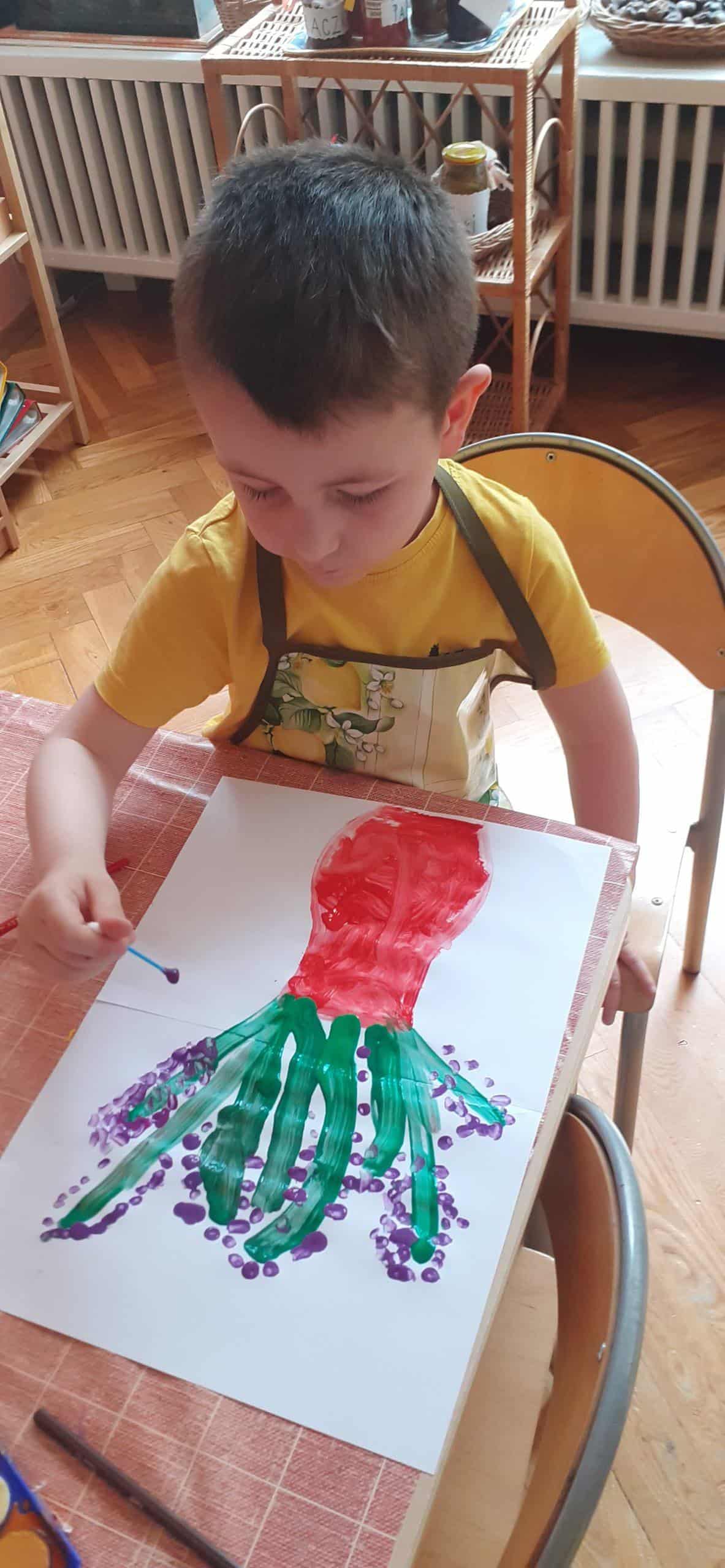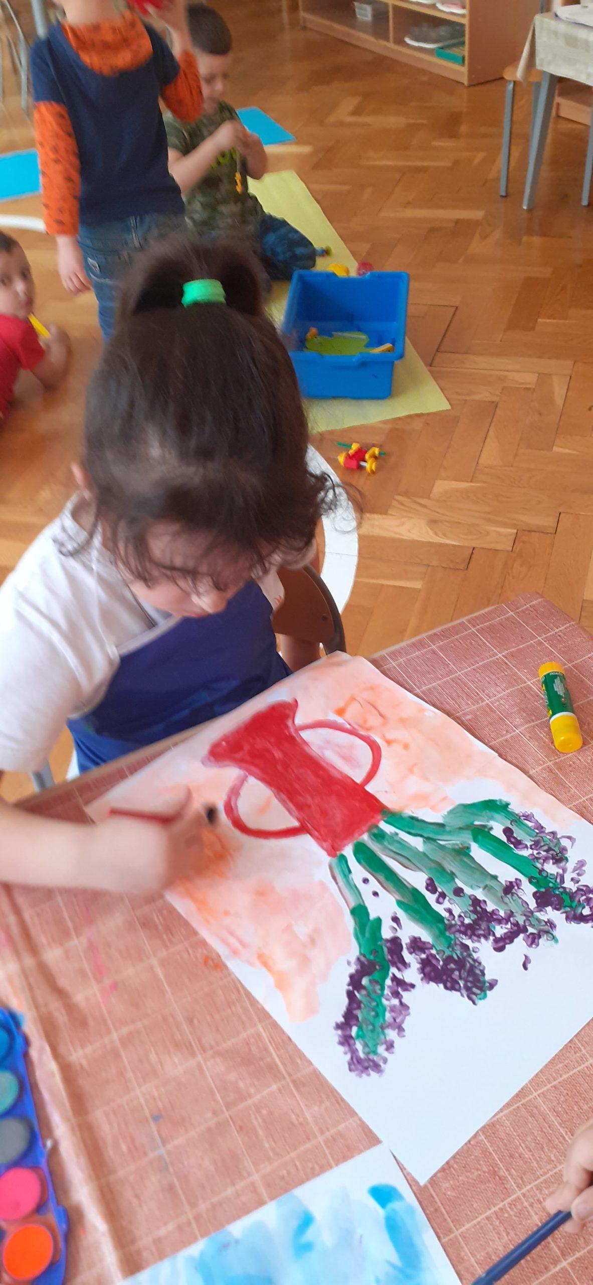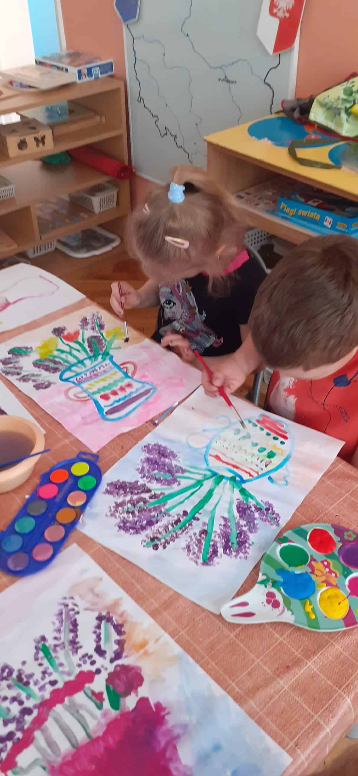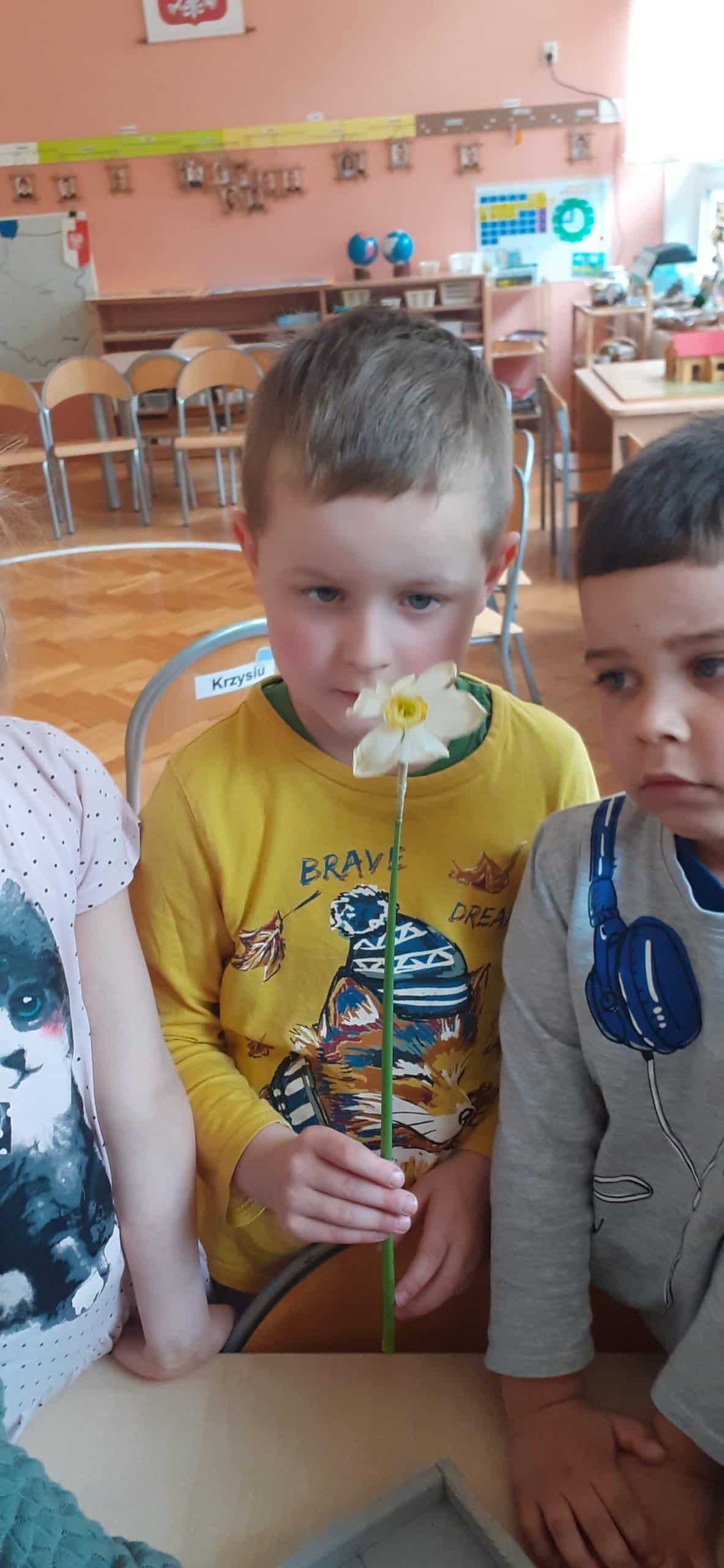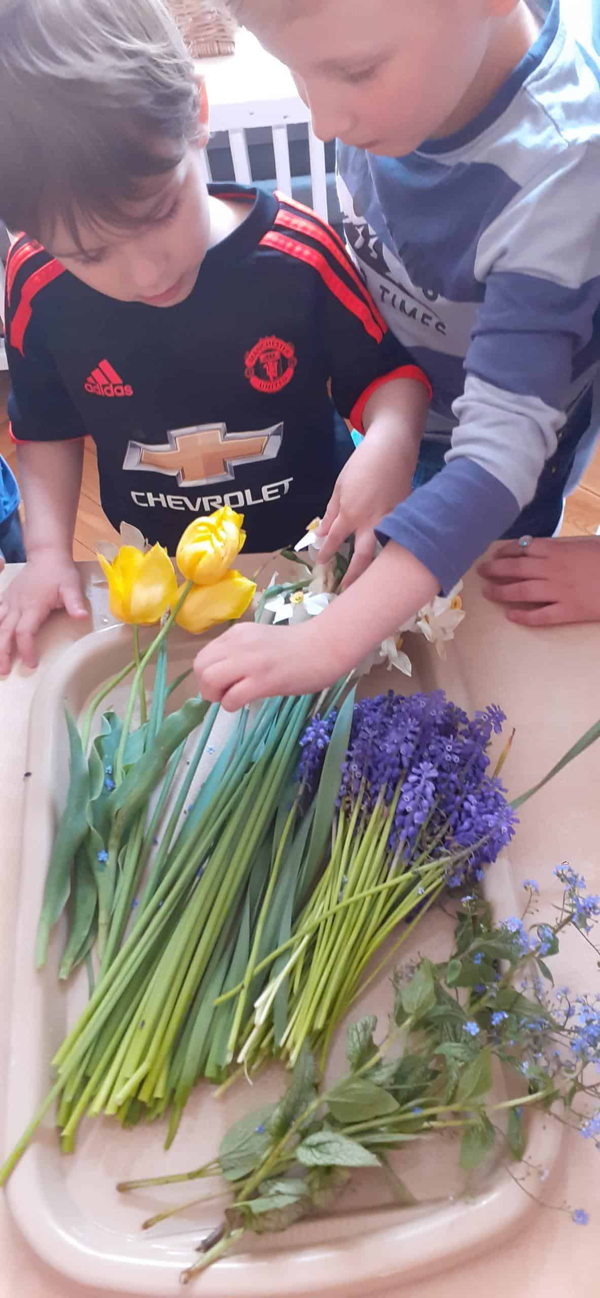 Wiosna to w naszym otoczeniu mnóstwo kolorowych i cudownych kwiatów. Postanowiliśmy wykorzystać ten fakt w praktycznym działaniu. W pedagogice Montessori ogromną wagę przywiązuje się do obcowania dzieci z naturą, z jej walorami, a przede wszystkim pięknem. Rozbudza się wśród dzieci poczucie estetyki. Pojawiły się w sali zajęć szafirki, tulipany i narcyzy. I tu wykorzystaliśmy montessoriańskie ćwiczenia dnia codziennego w zakresie dbałości o otoczenie. Pielęgnacja kwiatów ciętych jest doskonałym tego przykładem. Dzieci po poznaniu walorów estetycznych tych kwiatów przystąpiły do nauki układania bukietów. Wypełnienie wazonów odpowiednią ilością wody, to też ćwiczenie dnia codziennego i przy okazji nauka płynnych , delikatnych ruchów rąk przy nalewaniu wody. Dzieci z pietyzmem układały kwiaty w bukiety, przycinały zbyt długie gałązki, usuwały uschnięte części, po to aby estetycznie prezentowały się w wazonach. To ważna, praktyczna umiejętność dnia codziennego, bo przecież okazji do wręczania kwiatów nie brakuje. Przy okazji utrwaliliśmy budowę kwiatu, dzieci mogły wyróżnić słupek, pręciki, płatki korony , przylistki i łodygę. Powstały przepiękne bukiety, które potem stały się inspiracją do aktywności plastycznej dzieci . Brawo.