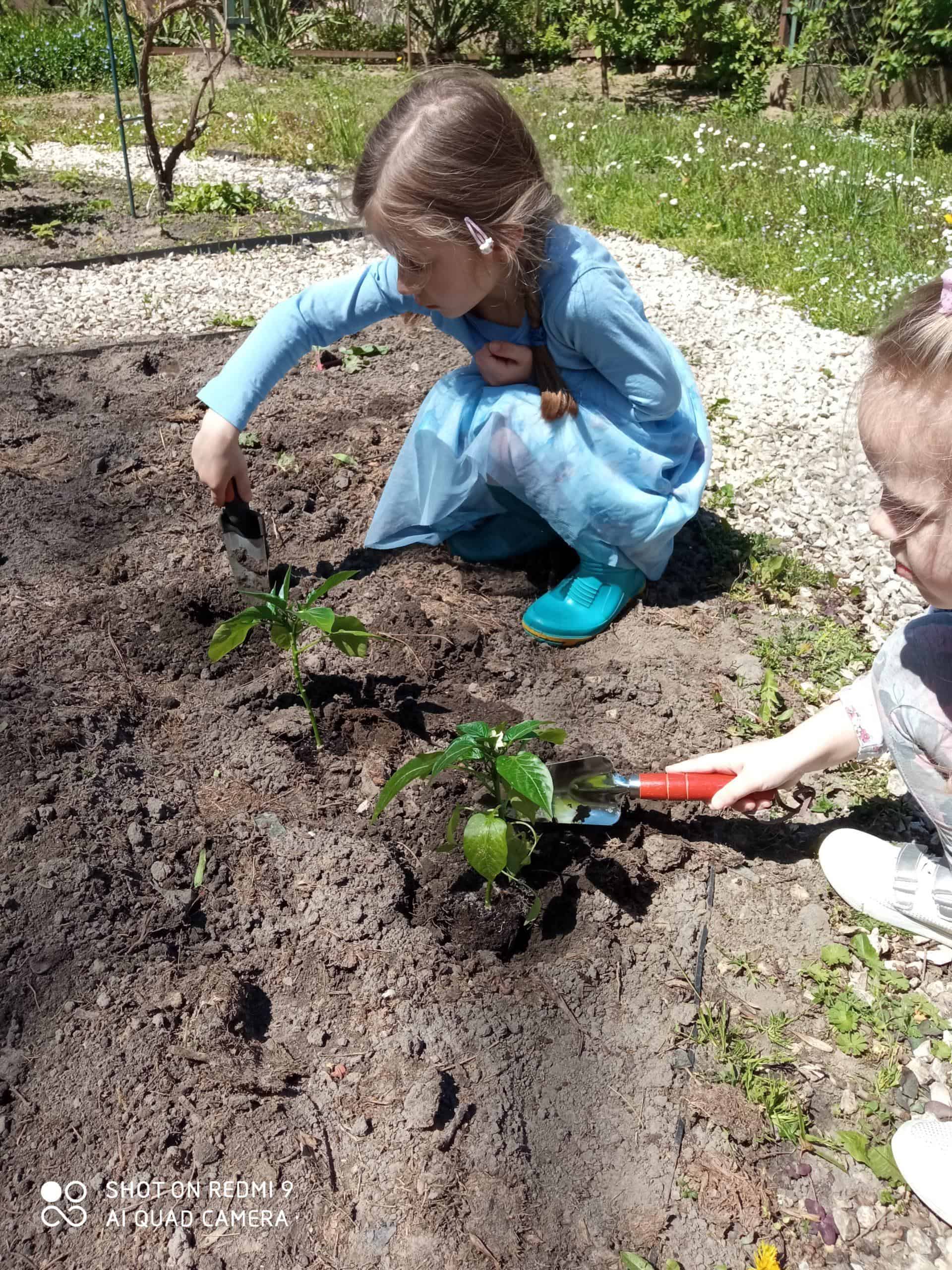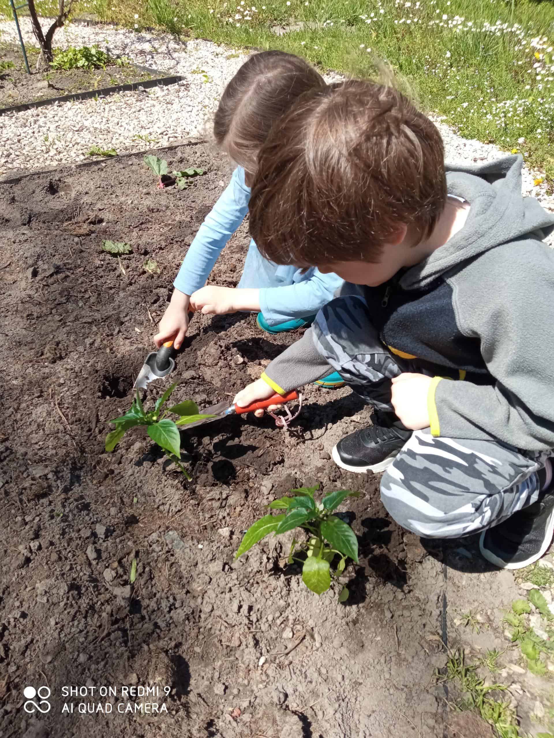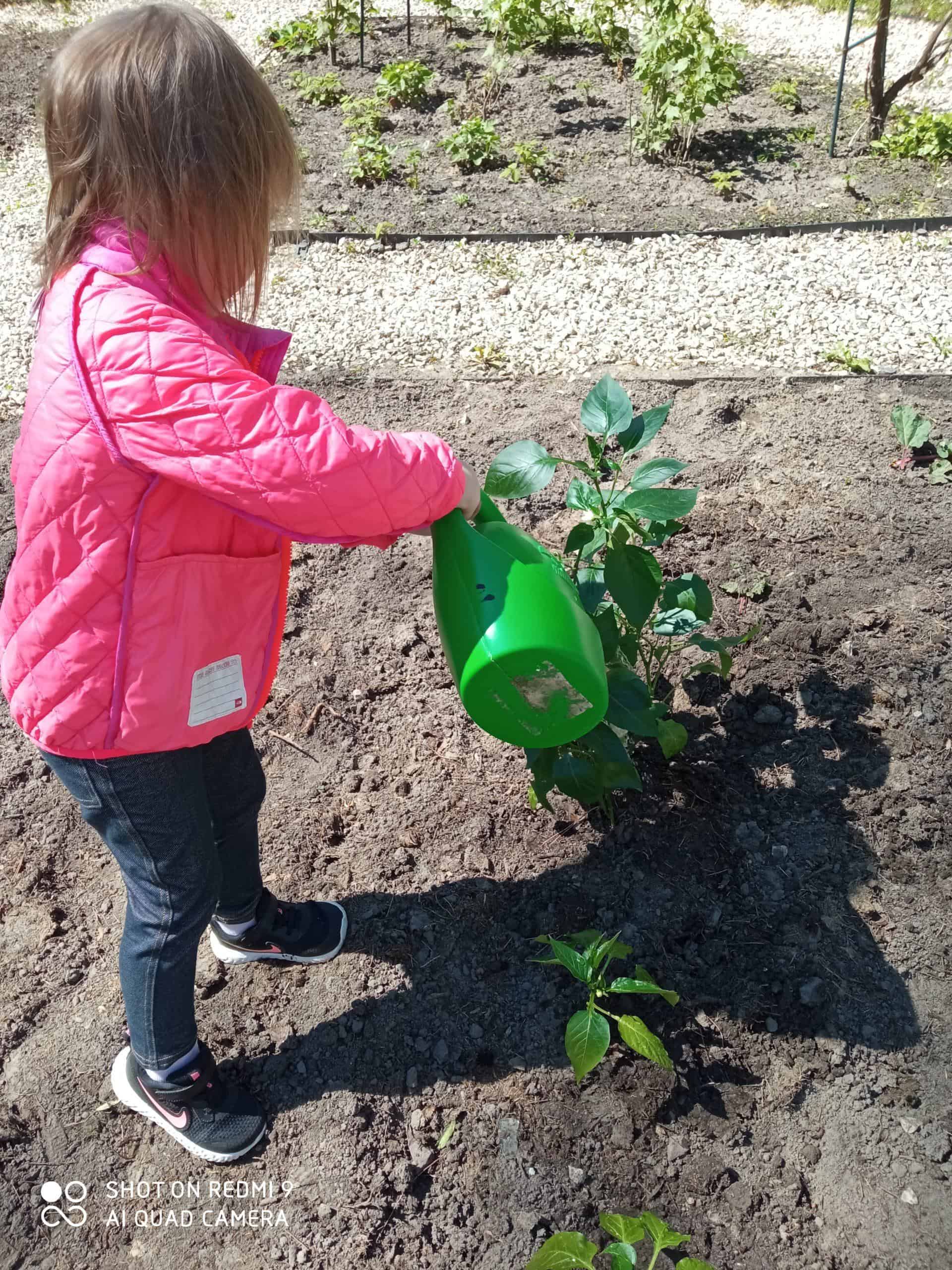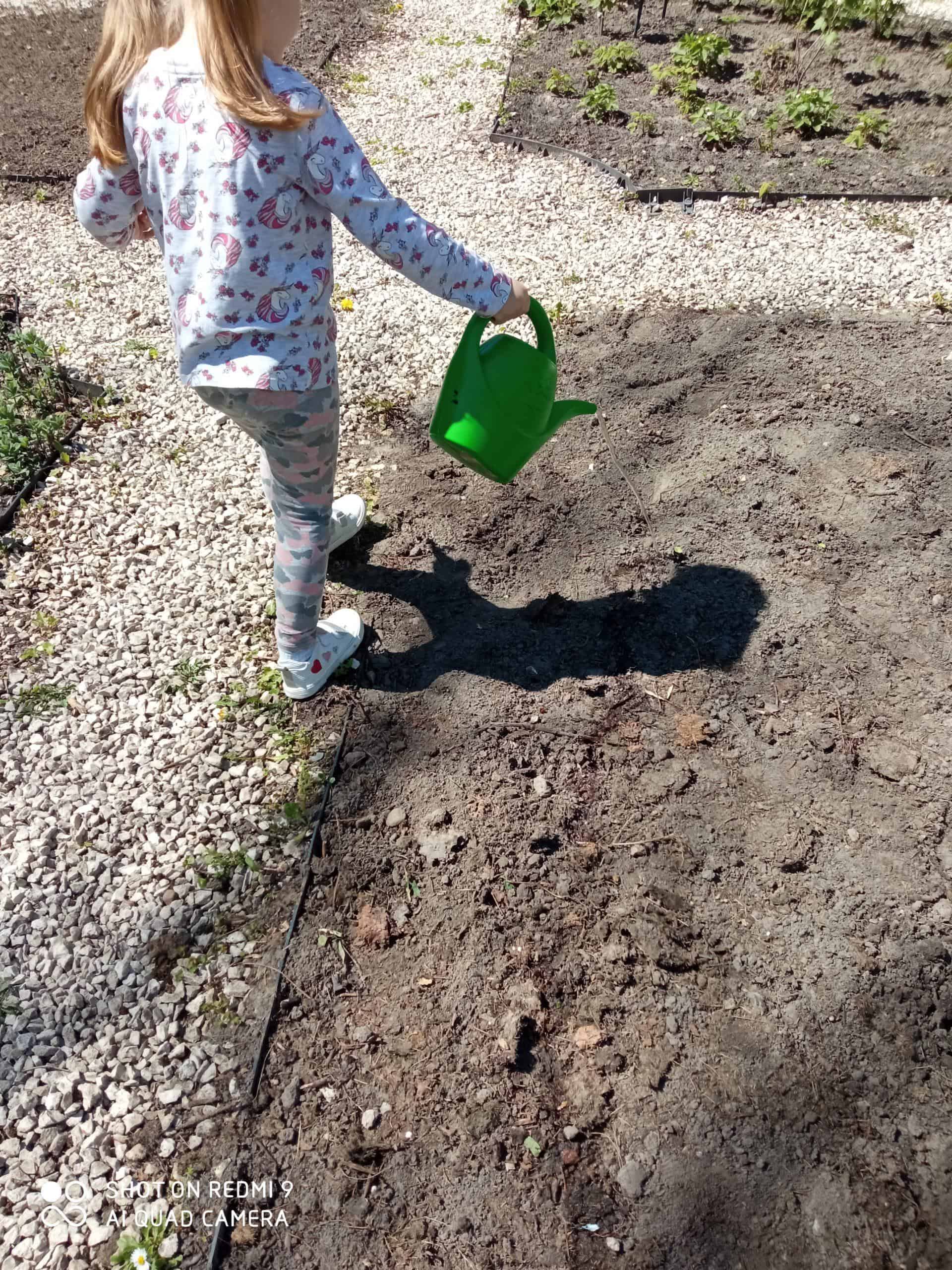 Po wykonanych pracach przyszedł czas na zabawę w ogrodzie. Teraz będziemy się przyglądać i obserwować wzrost naszych warzyw, a później ze smakiem będziemy się nimi zajadli, bo przecież nic tak dobrze nie smakuje, jak uprawy z własnego ogródka 🙂