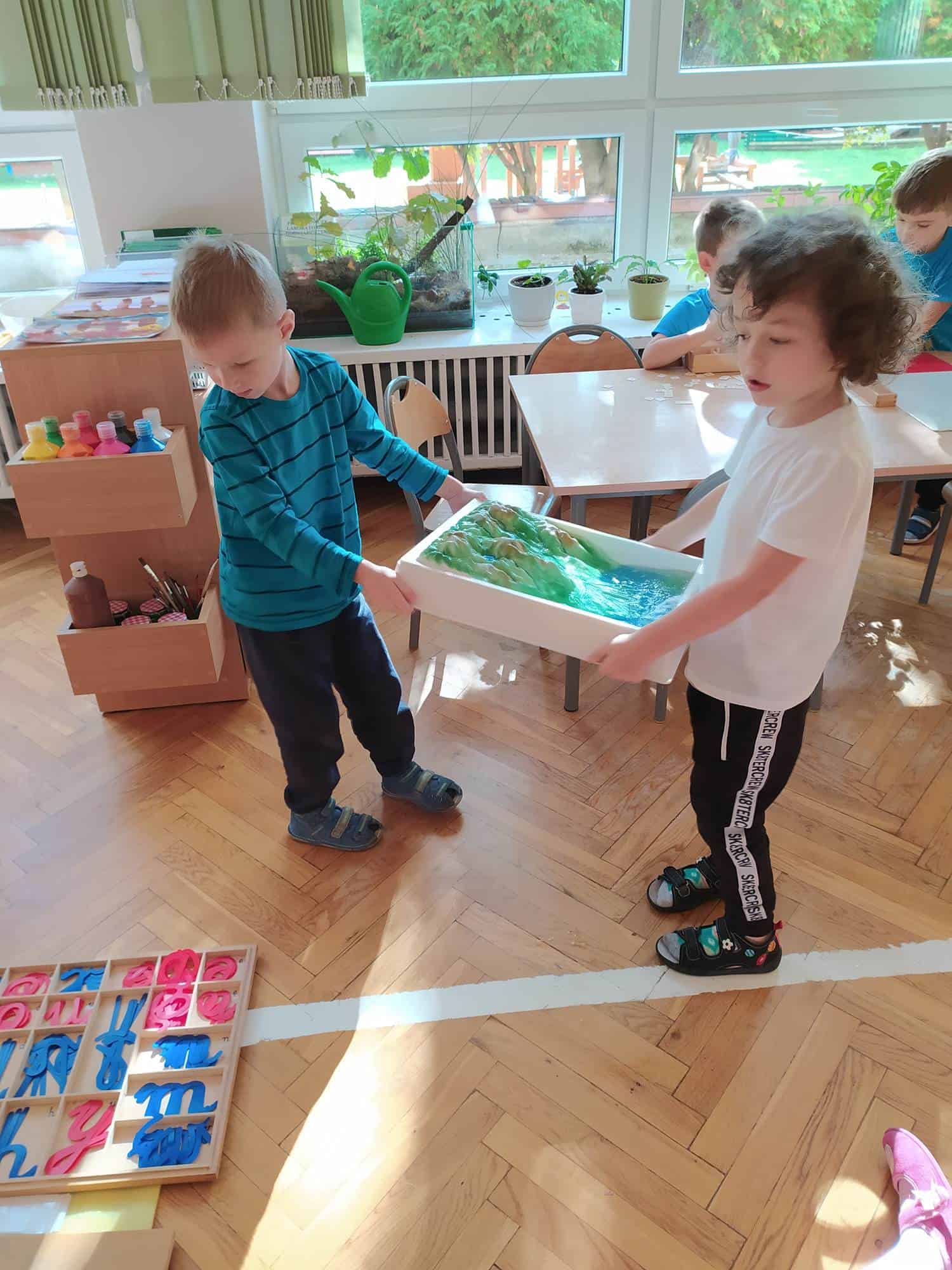 Każde gotowe ćwiczenie (np. na tacy) czy każde narzędzie (mała miotełka, dzbanek czy konewka do podlewania kwiatów) powinny mieć swoje określone miejsce, gdzie zawsze można je znaleźć, a po skończonej pracy zanieść je z powrotem. Dzieci, i to szczególnie te młodsze, mają dużą potrzebę porządku i znajdywania określonego przedmiotu zawsze w tym samym miejscu.