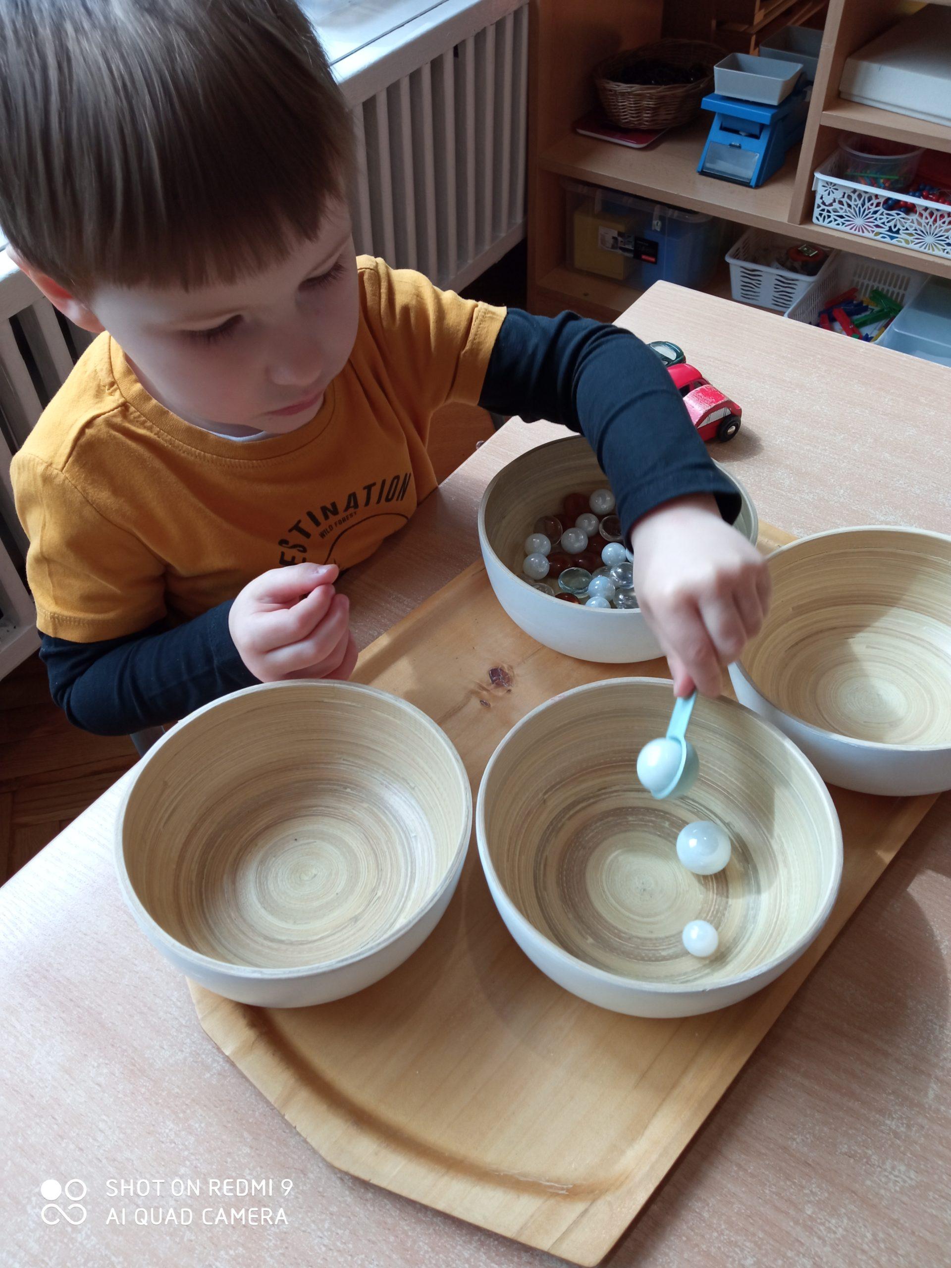 Zapinanie guzików, nalewanie wody do wazonika, praca ze szczypcami czy przenoszenie tac, wszystkie te czynności pomagają dziecku w coraz większym stopniu opanowywać ruchy nie tylko rąk, ale również całego ciała.