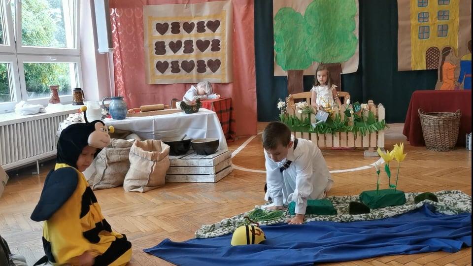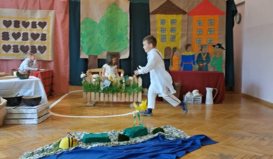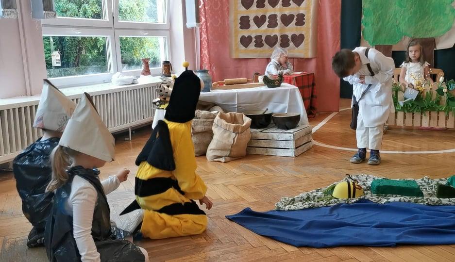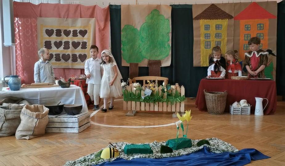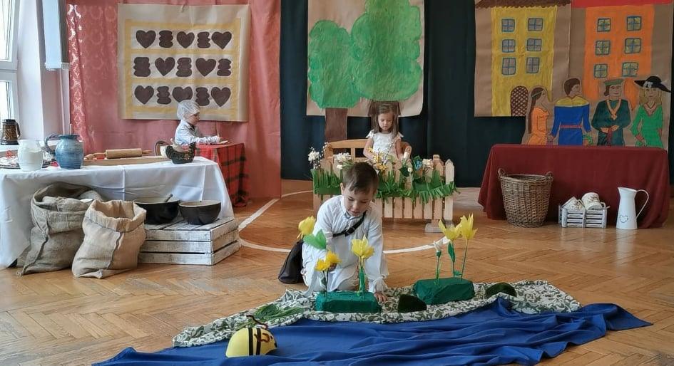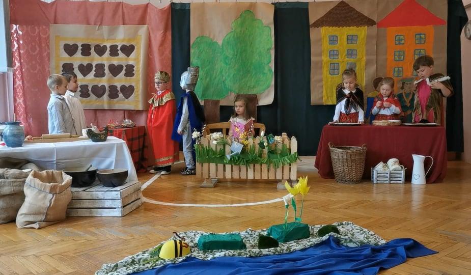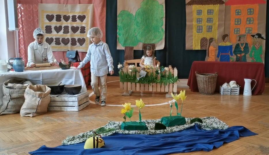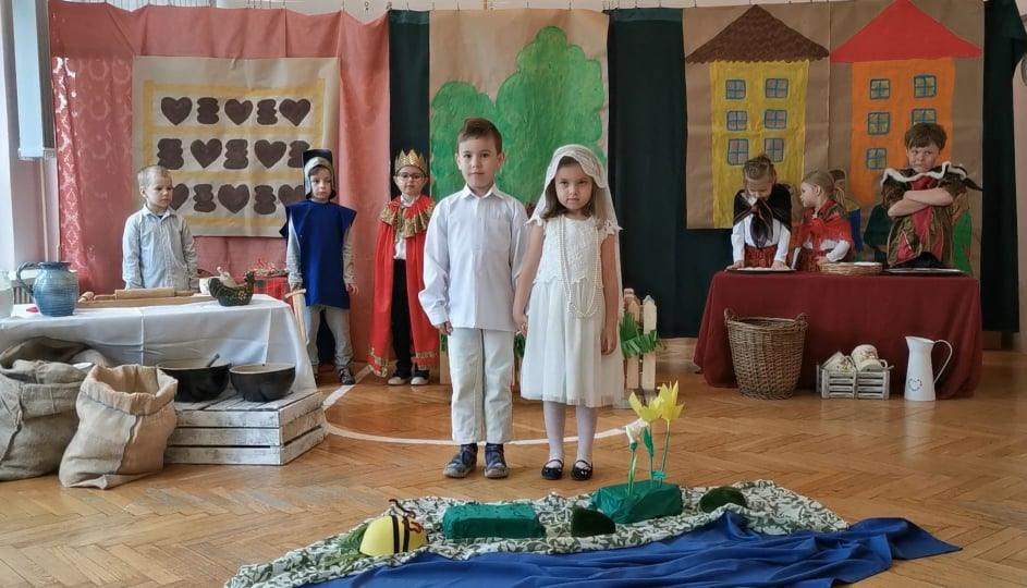 Przedszkolaki zaprezentowały legendę pt. Toruńskie pierniki. Mali aktorzy poradzili sobie świetnie. Z pełnym zaangażowaniem wcielili się w swoje role.