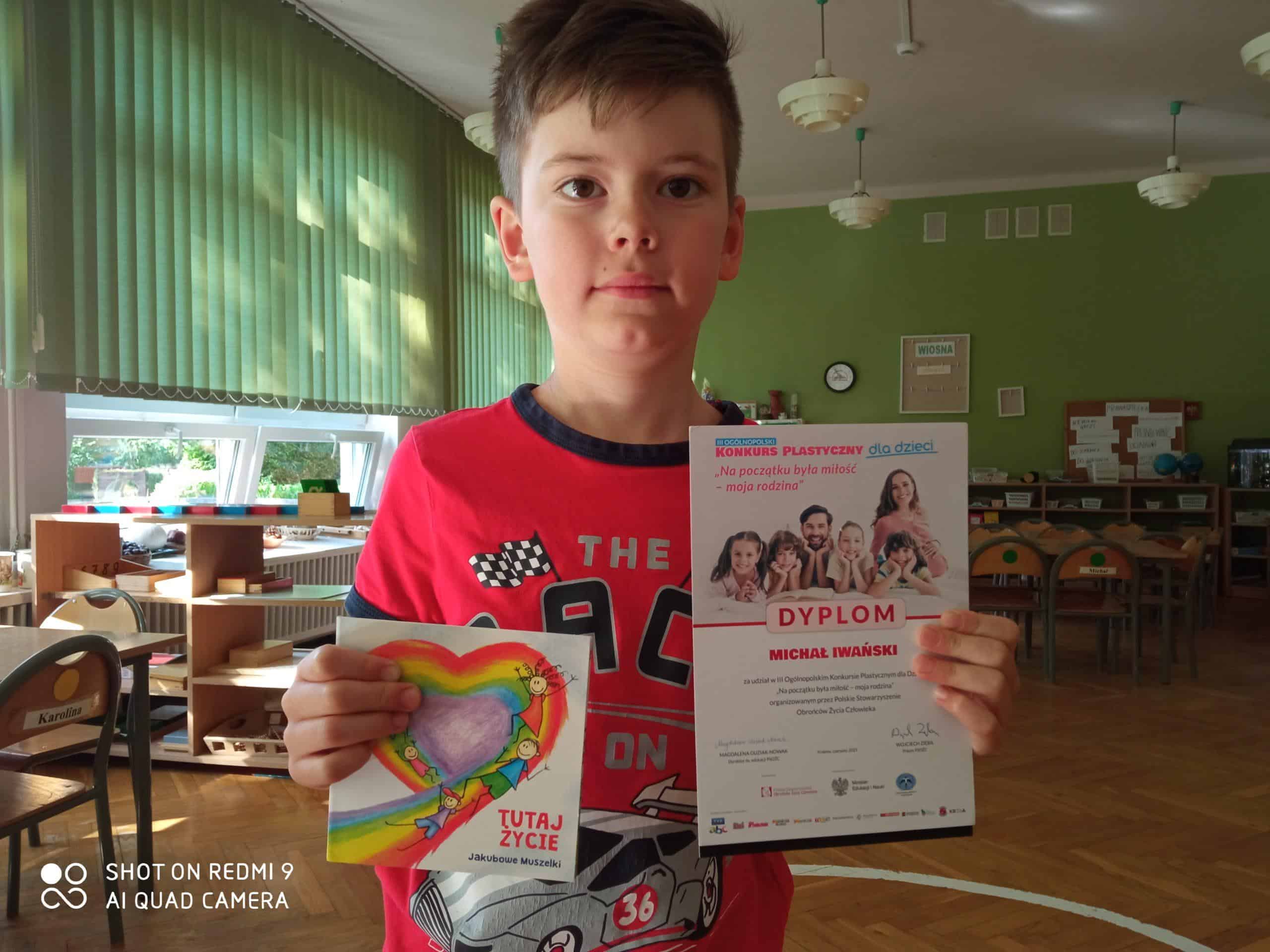 W minionym tygodniu nastąpiło rozstrzygnięcie III edycji Ogólnopolskiego Konkursu Plastycznego „Na początku była miłość – moja rodzina”. Zainteresowanie tematyką było ogromne, o czym świadczy liczba nadesłanych prac ( blisko 4500 prac z całej Polski). Pośród tych wszystkich wytworów plastycznych znalazła się także praca naszego Michałka, który z ogromną radością rysował swoją rodzinę. Starannie kolorował i dbał o wszystkie, wizerunkowe szczegóły 🙂