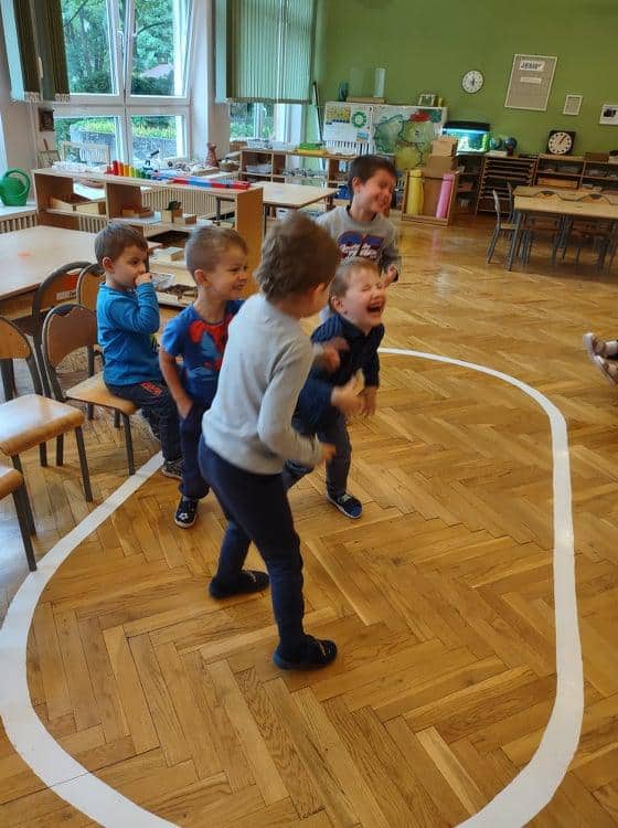 W dniu dzisiejszym podczas wspólnego świętowania porozmawialiśmy na temat ,, Jaki powinien być dobry kolega/ koleżanka? Wśród licznych odpowiedzi dzieci pojawiły się takie jak : sympatyczny, miły, uprzejmy, koleżeński, życzliwy, pomocny, grzeczny , powinien używać takich słów jak proszę, dziękuję, przepraszam. Następnie wysłuchaliśmy krótkiego tekstu niedokończonych zdań i wspólnie próbowaliśmy wskazać właściwą odpowiedz: – Kiedyś potrącił Andrzej Tomasza , ale powiedział zaraz …( przepraszam) – Kiedy Markowi książkę da wujek. Marek powiedział grzecznie …(dziękuję) – Ala o zeszyt prosiła Zosię, Zosia podając rzekła jej … ( proszę)
