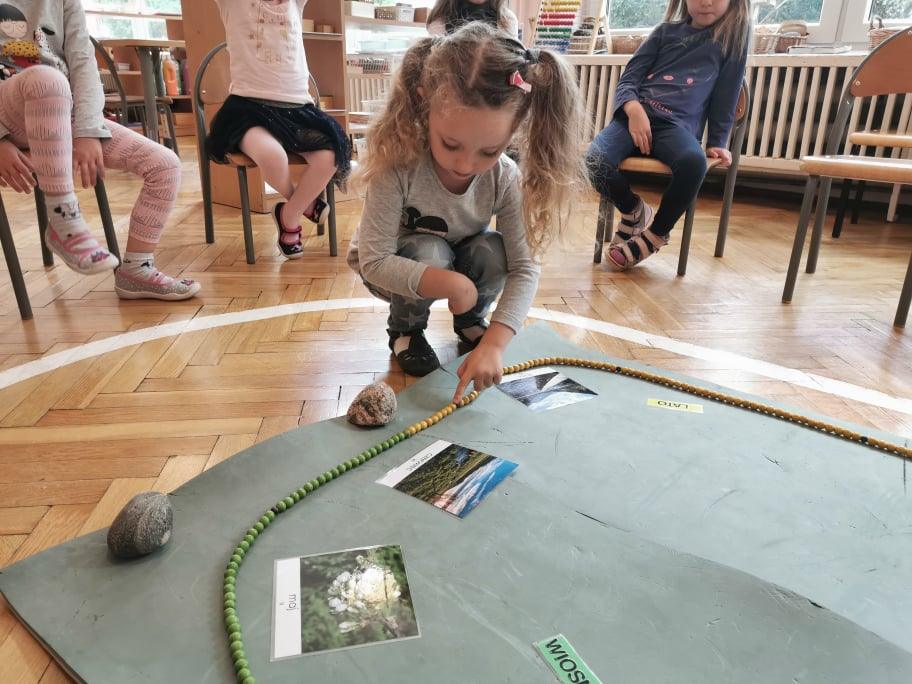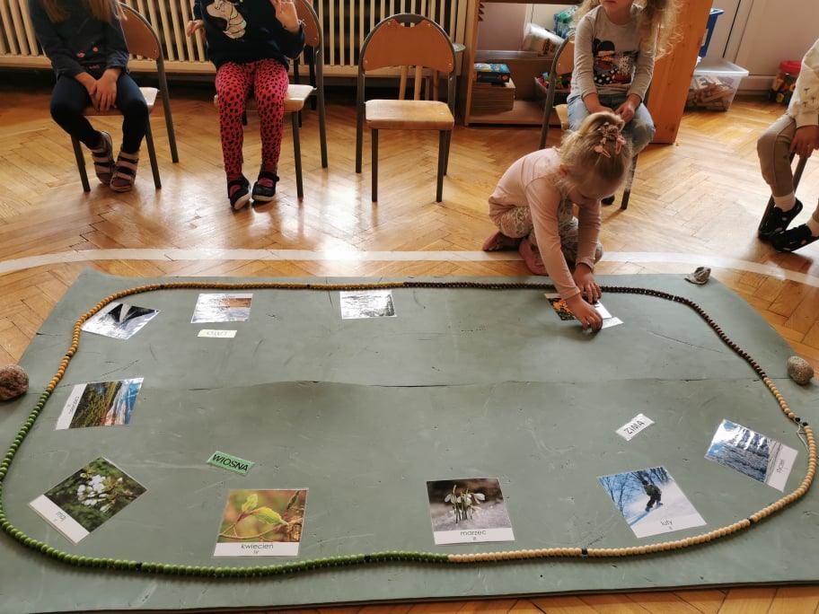 23 września rozpoczyna się kalendarzowa jesień. Dlatego w tym dniu podczas lekcji ogólnorozwojowej pracowaliśmy z koralikowym kalendarzem pór roku. Na sznurku znajduje się tyle korali, ile jest dni w ciągu roku. Korale różnią się kolorem w zależności od pory roku: