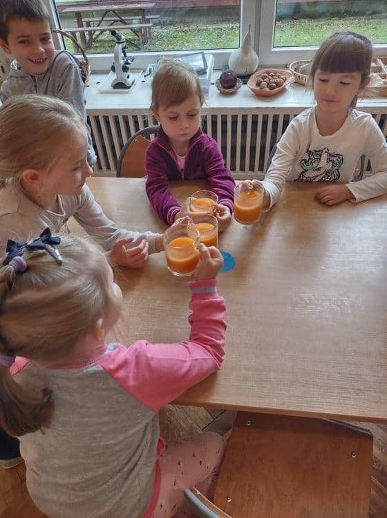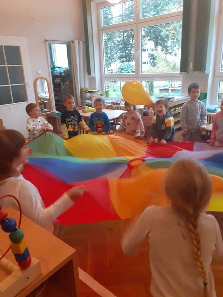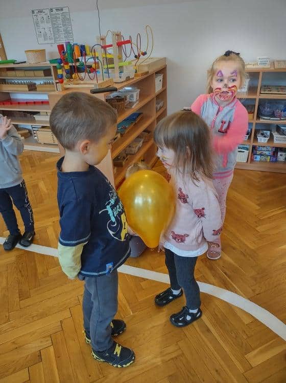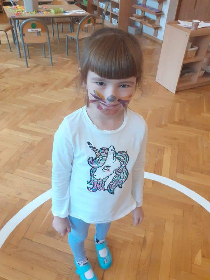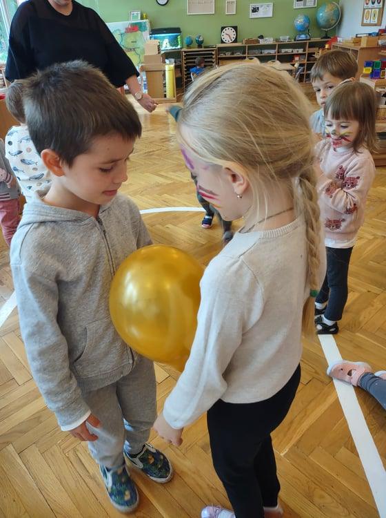 Tego dnia, przedszkolaki z naszej grupy, po wstępie teoretycznym 🙂 czyli rozmowach i luźnych dyskusjach na temat bycia przedszkolakiem, zostały zaproszone do wspólnej zabawy i udziału w różnorodnych atrakcjach, które zostały przygotowane na ten właśnie dzień. Rozpoczęło się nieco zagadkowo, gdyż przedszkolaki na chwilę zamieniły się w detektywów poszukujących tajemniczej przesyłki, którą zostawił i bardzo skrupulatnie ukrył nieznajomy przyjaciel naszej grupy 🙂 Wskazówki, które dzieci musiały odnajdywać i wykonywać zapisane tam polecenia, pomagały im i przybliżały ich do odkrycia miejsca tajemniczej przesyłki. Nie było to łatwe zadanie, ale nasze bystre przedszkolaki doskonale ze wszystkim sobie poradziły i znalazły swój koszyk słodkości u Pani Małgosi w gabinecie 🙂 Cóż za przebiegły osobnik tak dobrze ukrył przesyłkę 🙂 Gdy nasze szare komórki zostały dostatecznie rozbudzone, wówczas przyszedł czas na zabawy ruchowe. Znowu w ruch poszła nasza ukochana chusta dająca dzieciom wiele radości i uśmiechu. Oprócz chusty były zmagania z balonami, które na końcu zostały ozdobione przez dzieci według własnych pomysłów. Dla wszystkich chętnych zostało także utworzone stanowisko do malowania buziek 🙂 kolejka była dosyć długa 🙂 Na sam koniec naszego świętowania udało nam się wznieść toast pysznym, marchewkowym sokiem, zaserwowanym dla dzieci na drugie śniadanie. Szczęśliwy przedszkolak, to zdrowy przedszkolak – zatem na zdrowie nasze kochane zieloniuszki 🙂