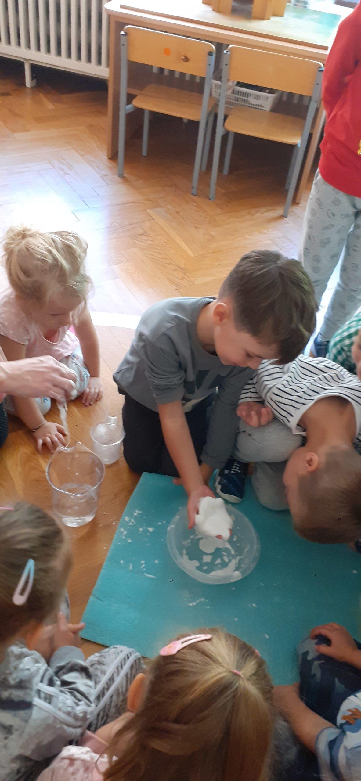 To coroczne święto obchodzone w naszym przedszkolu. Święto ustanowione zostało z inicjatywny Rzecznika Praw Dziecka dla popularyzacji wychowania przedszkolnego i wzrostu jego znaczenia w świadomości społecznej. A dla nas to była inspiracja do zorganizowania dzieciom w tym dniu wielu zabaw wyzwalających radość, zadowolenie i dobre samopoczucie. Tak więc dzisiejszy dzień wypełniony był zabawami wyzwalającymi ekspresję ruchową, taneczną, nie zabrakło zabaw z elementami rywalizacji , animacji ruchowej i oczywiście ulubionych zabaw z chustą animacyjną, a także zabaw balonowych. Największą atrakcją były zabawy sensoryczne z cieczą nienewtonowską (połączenie w odpowiednich proporcjach mąki ziemniaczanej i wody). To był radosny dzień. Wszystkim przedszkolakom życzymy zdrowia, aby każdy dzień był dla nich radosny i wypełniony ciekawymi zabawami, spotkaniami z kolegami, a przedszkole było dla nich wspaniałym miejscem do zdobywania nowych wiadomości i umiejętności.