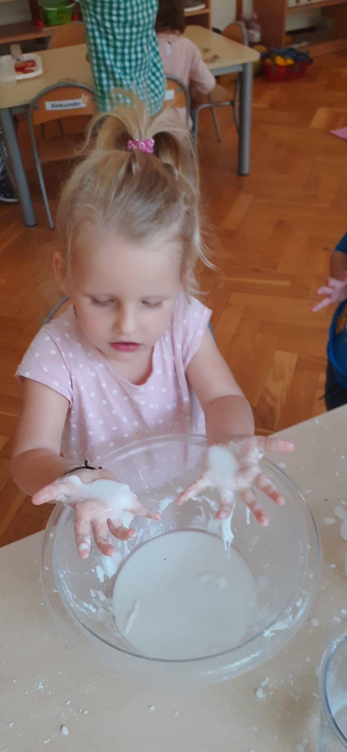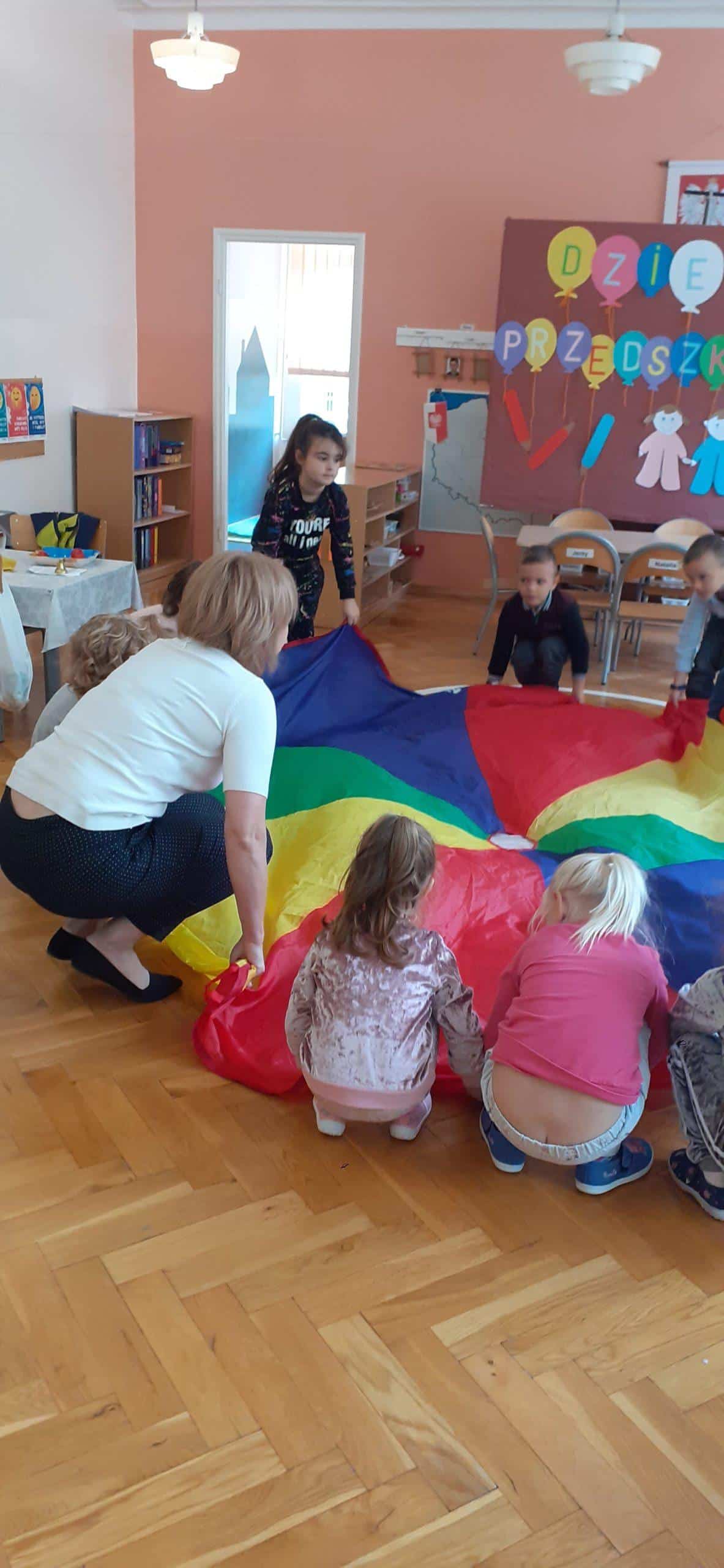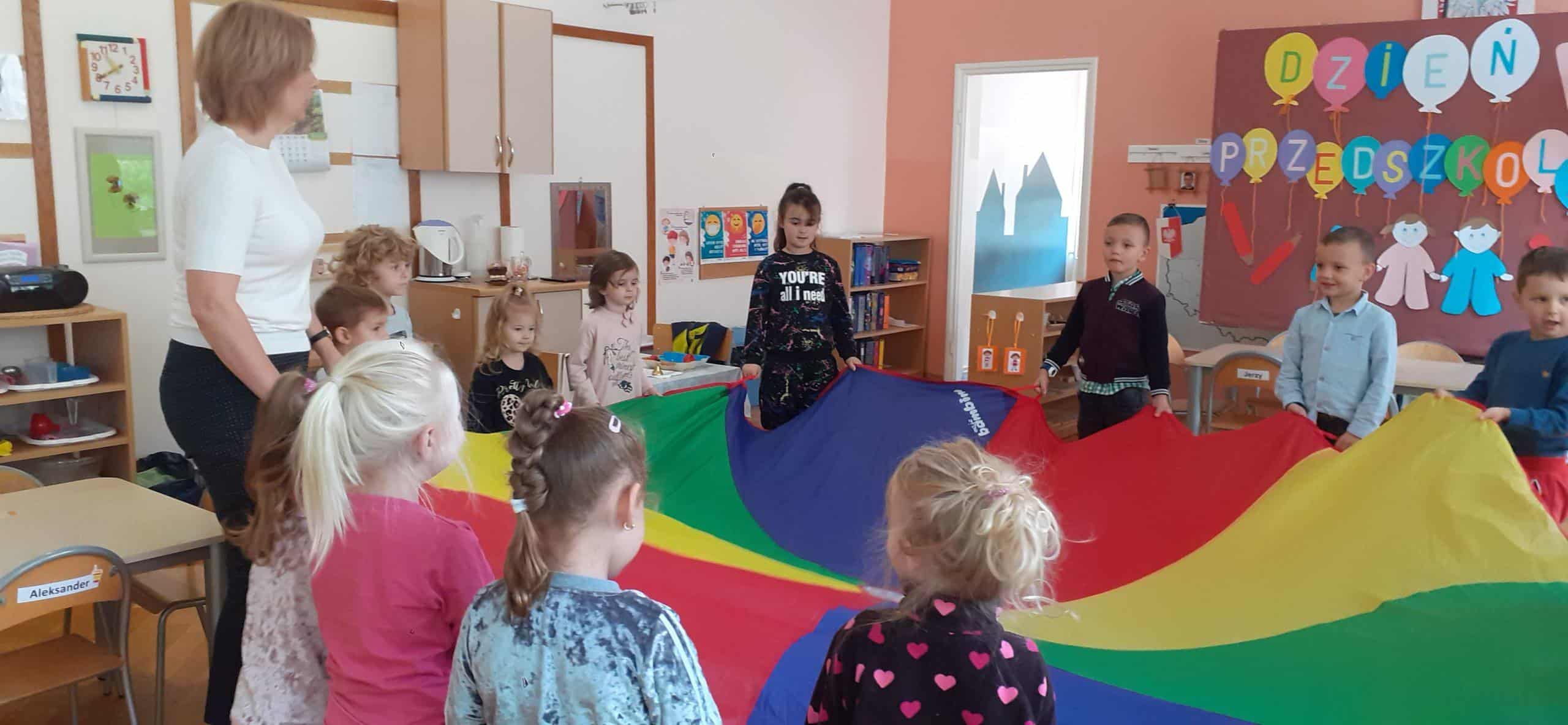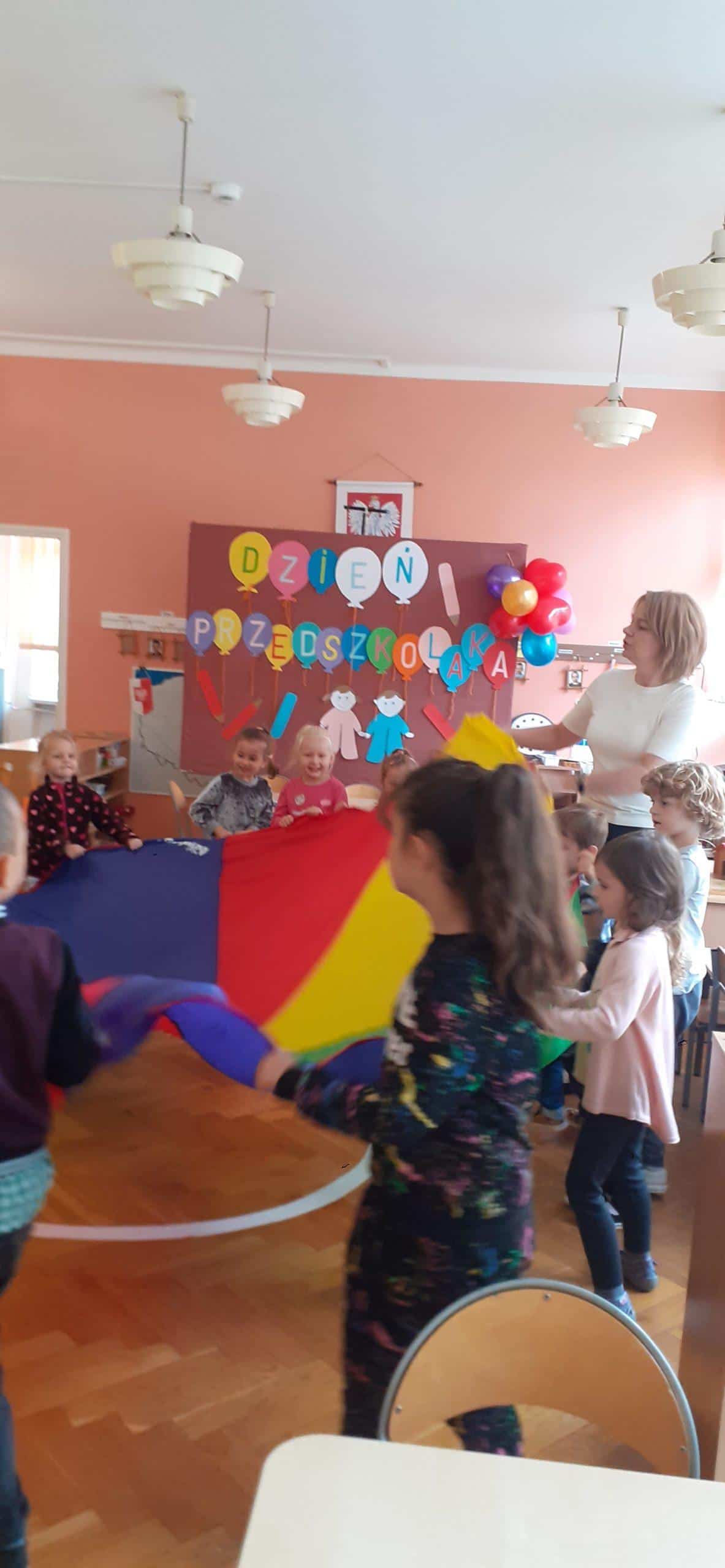 To coroczne święto obchodzone w naszym przedszkolu. Święto ustanowione zostało z inicjatywny Rzecznika Praw Dziecka dla popularyzacji wychowania przedszkolnego i wzrostu jego znaczenia w świadomości społecznej. A dla nas to była inspiracja do zorganizowania dzieciom w tym dniu wielu zabaw wyzwalających radość, zadowolenie i dobre samopoczucie. Tak więc dzisiejszy dzień wypełniony był zabawami wyzwalającymi ekspresję ruchową, taneczną, nie zabrakło zabaw z elementami rywalizacji , animacji ruchowej i oczywiście ulubionych zabaw z chustą animacyjną, a także zabaw balonowych. Największą atrakcją były zabawy sensoryczne z cieczą nienewtonowską (połączenie w odpowiednich proporcjach mąki ziemniaczanej i wody). To był radosny dzień. Wszystkim przedszkolakom życzymy zdrowia, aby każdy dzień był dla nich radosny i wypełniony ciekawymi zabawami, spotkaniami z kolegami, a przedszkole było dla nich wspaniałym miejscem do zdobywania nowych wiadomości i umiejętności.