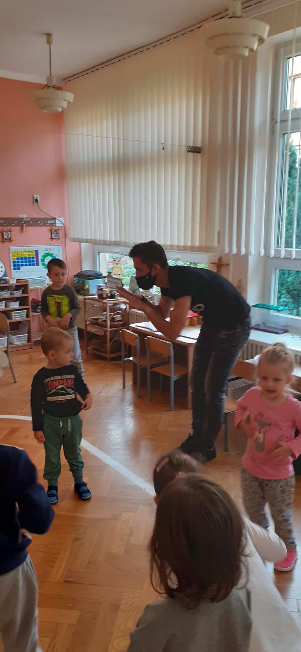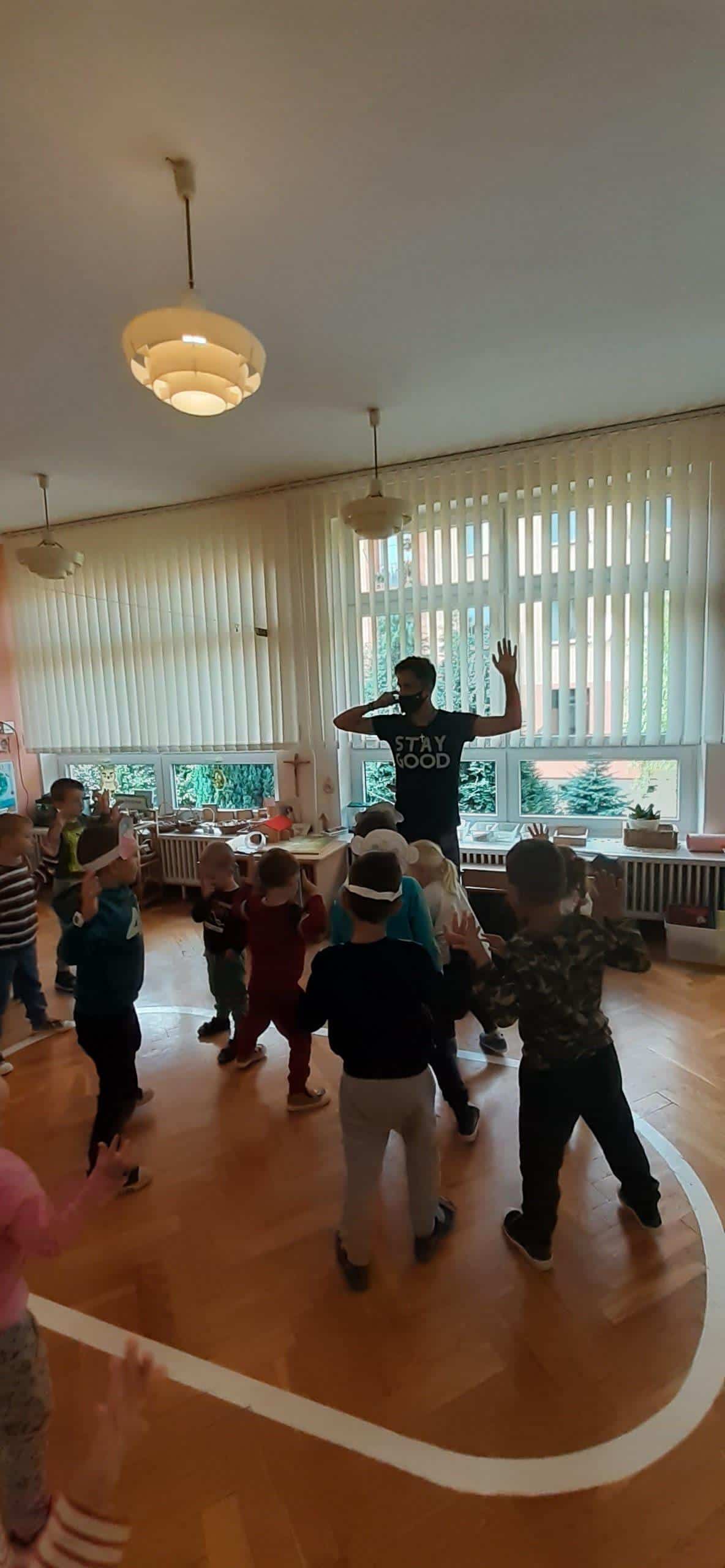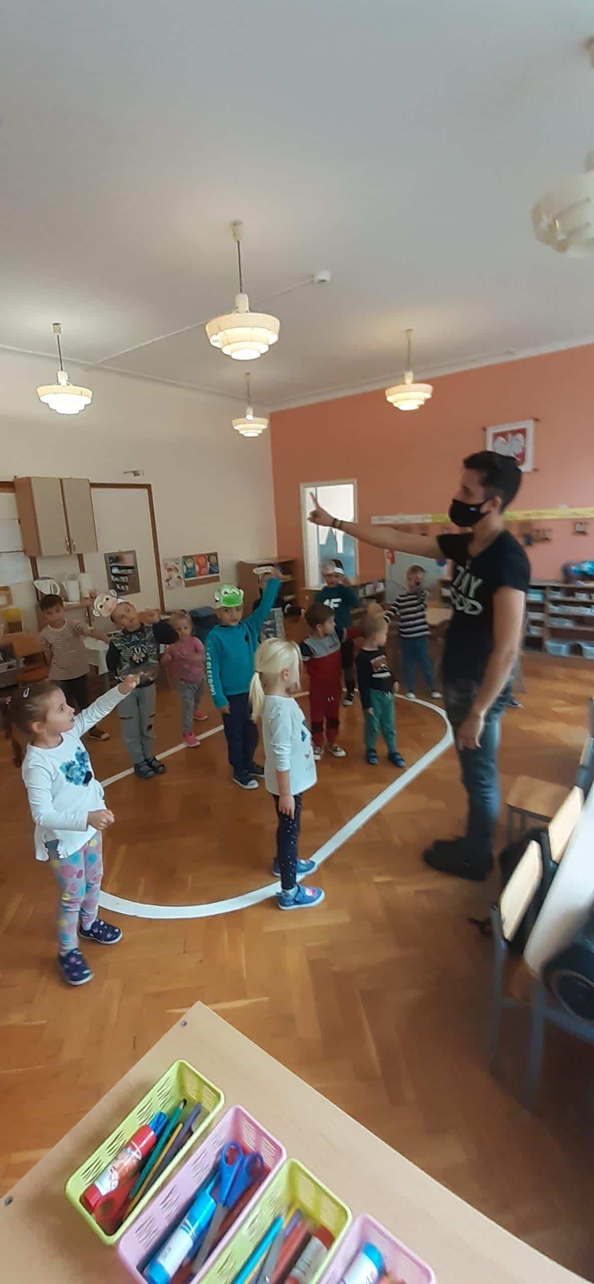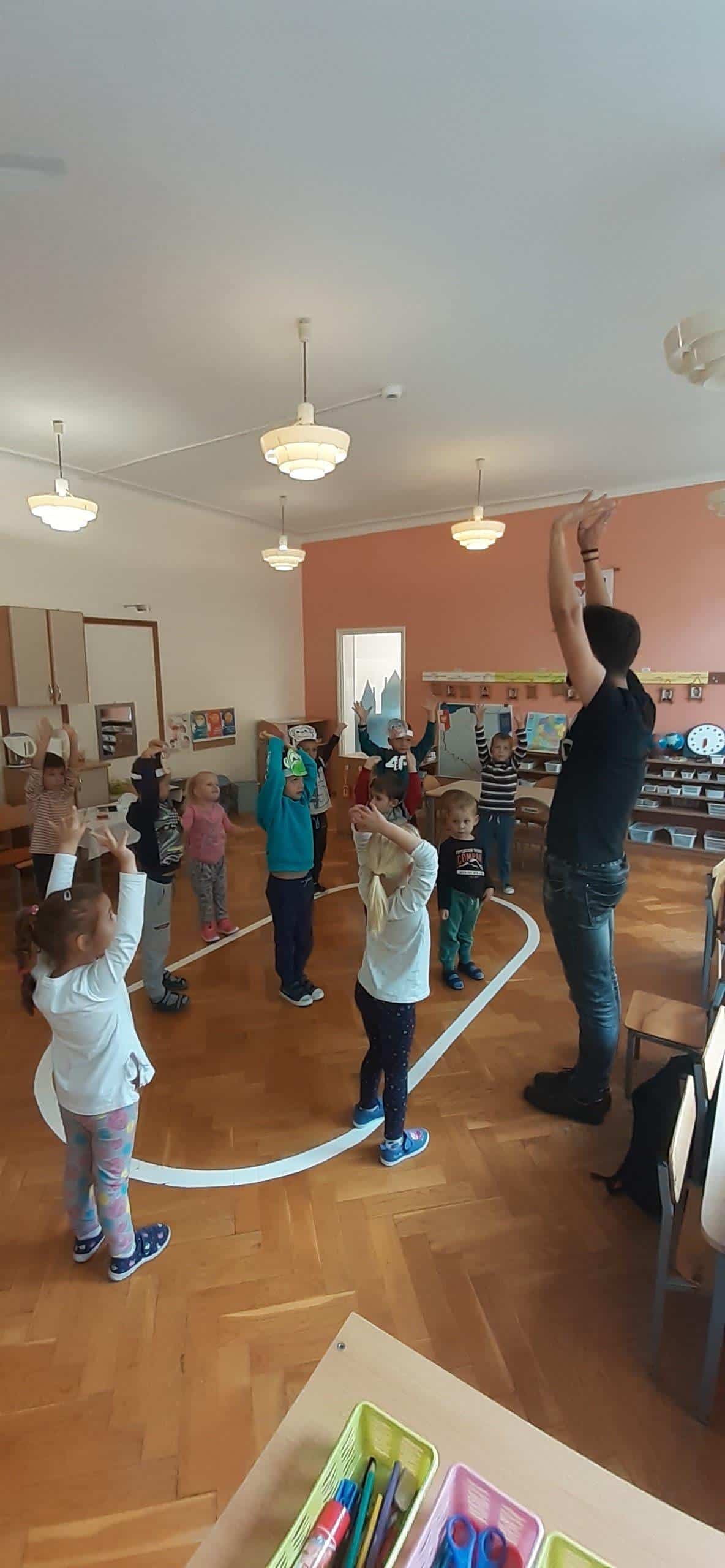 W tym roku szkolnym w naszej grupie również świętowaliśmy wspólnie z dziećmi ten ważny dzień. Zanim wzięliśmy udział we wspólnej zabawie przeprowadzona została lekcja uświadamiająca dzieciom jak ważną instytucją dla rozwoju dzieci jest przedszkole, jaką pełni rolę zarówno w życiu dzieci jaki osób dorosłych. W dalszej części zajęcia dzieci uczestniczyły w zorganizowanych zawodach i zabawach ruchowych tj. bieg z piłeczką położoną na łyżce. Grupa została podzielona na dwie drużyny ,pierwszy zawodnik trzyma łyżkę na której leży plastikowa piłeczka. Zadaniem zawodnika jest przejście po wyznaczonej linii i oddanie łyżki kolejnemu dziecku uważając aby piłeczka nie spadła. Inna zabawa ,,Z kamienia na kamień” po ułożeniu kółek do ćwiczeń w niewielkich odległościach od siebie, dzieci na podane hasło pokonują przeszkodę. Kolejnym naszym działaniem było odczytywanie kodów i kodowanie własnych obrazków przy użyciu dywanu do kodowania i kolorowych kubków. W tym dniu nie zabrakło również wielu zabaw muzyczno- ruchowych z balonem oraz z chustą animacyjną Klanza, które to sprawiły dzieciom wiele radości.