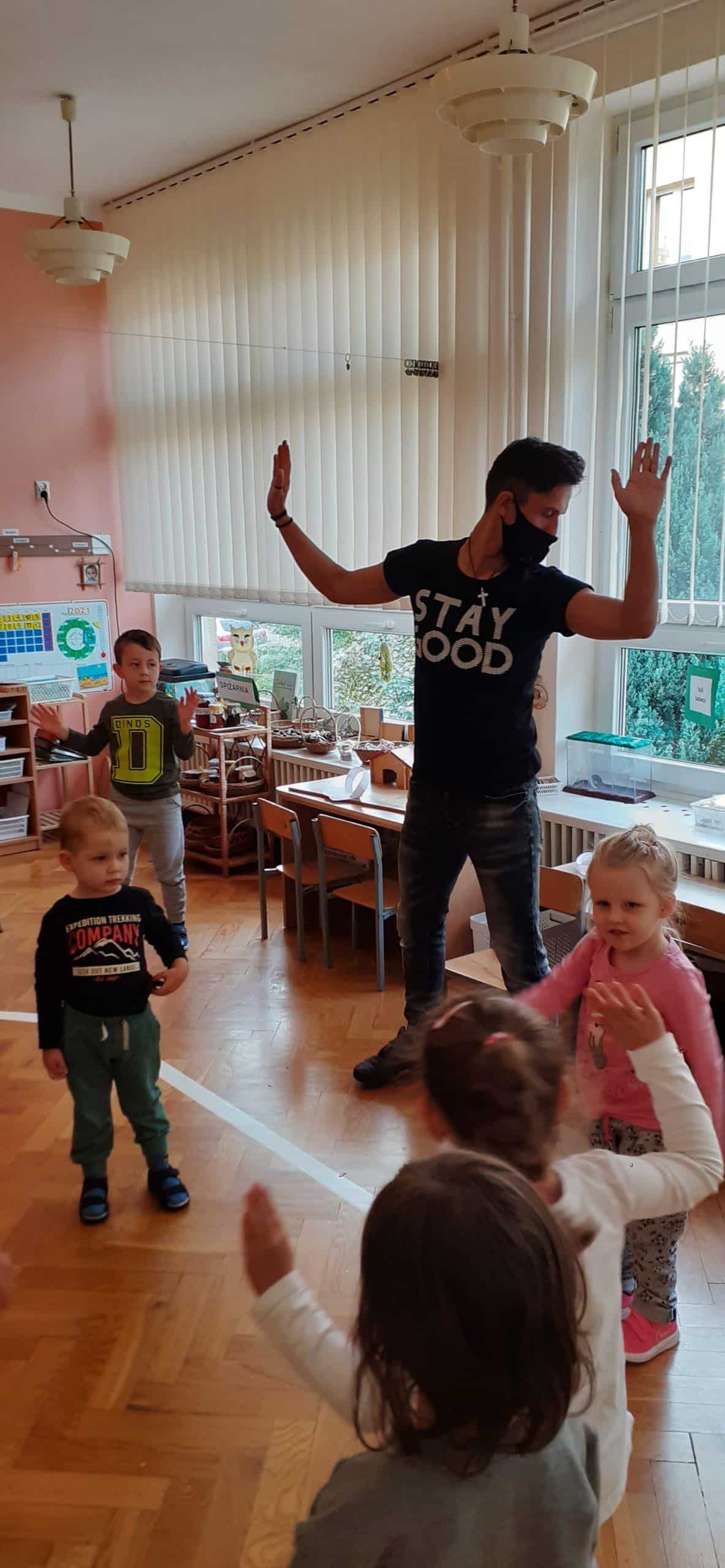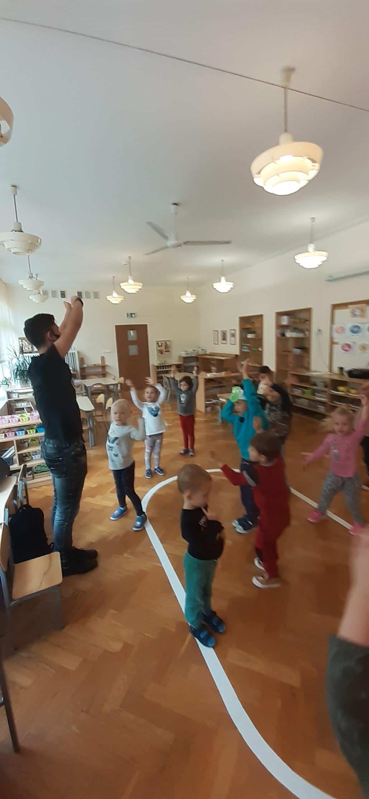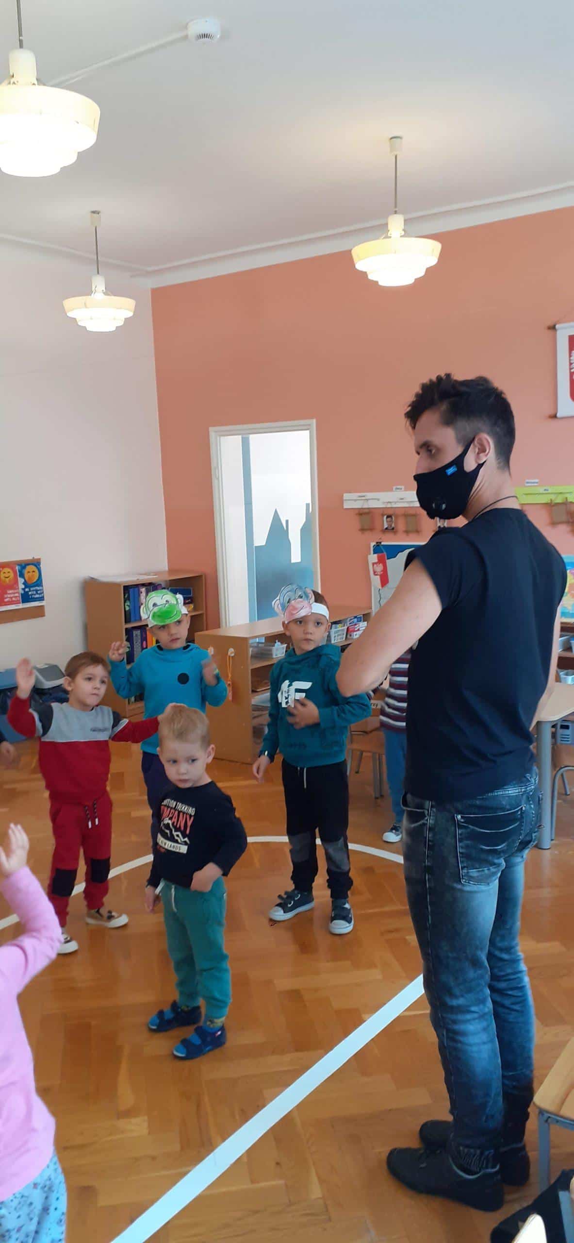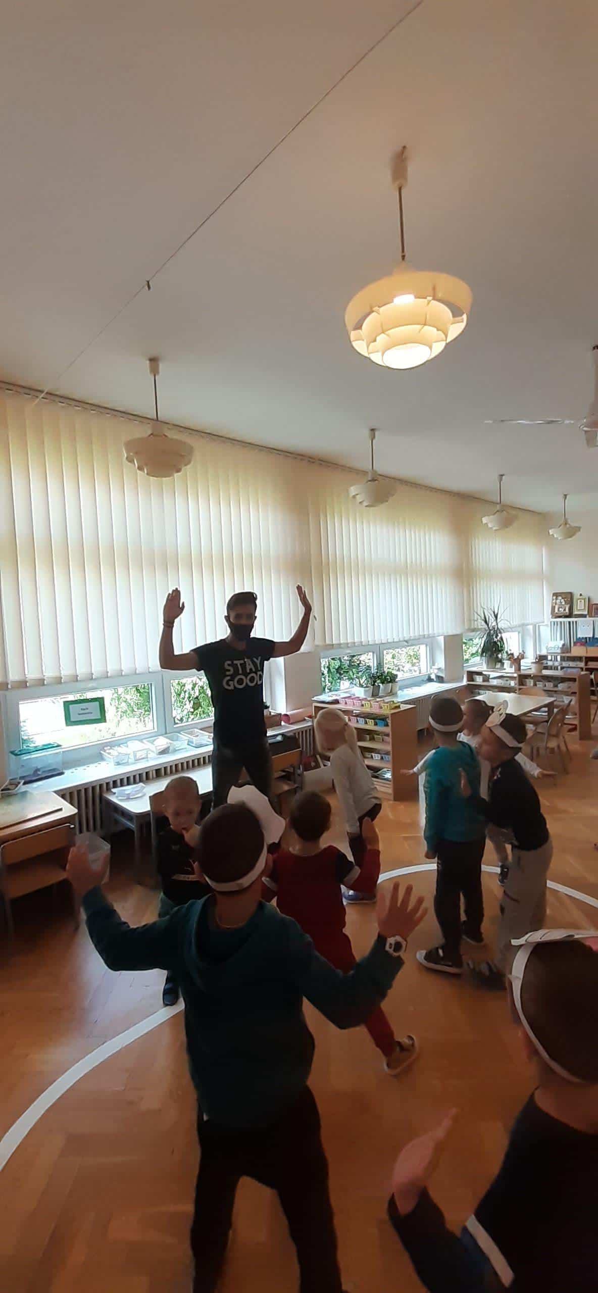 W tym roku szkolnym w naszej grupie również świętowaliśmy wspólnie z dziećmi ten ważny dzień. Zanim wzięliśmy udział we wspólnej zabawie przeprowadzona została lekcja uświadamiająca dzieciom jak ważną instytucją dla rozwoju dzieci jest przedszkole, jaką pełni rolę zarówno w życiu dzieci jaki osób dorosłych. W dalszej części zajęcia dzieci uczestniczyły w zorganizowanych zawodach i zabawach ruchowych tj. bieg z piłeczką położoną na łyżce. Grupa została podzielona na dwie drużyny ,pierwszy zawodnik trzyma łyżkę na której leży plastikowa piłeczka. Zadaniem zawodnika jest przejście po wyznaczonej linii i oddanie łyżki kolejnemu dziecku uważając aby piłeczka nie spadła. Inna zabawa ,,Z kamienia na kamień” po ułożeniu kółek do ćwiczeń w niewielkich odległościach od siebie, dzieci na podane hasło pokonują przeszkodę. Kolejnym naszym działaniem było odczytywanie kodów i kodowanie własnych obrazków przy użyciu dywanu do kodowania i kolorowych kubków. W tym dniu nie zabrakło również wielu zabaw muzyczno- ruchowych z balonem oraz z chustą animacyjną Klanza, które to sprawiły dzieciom wiele radości.
