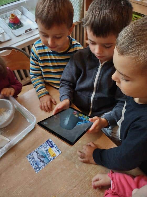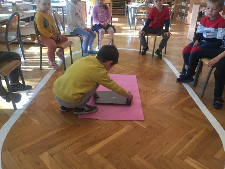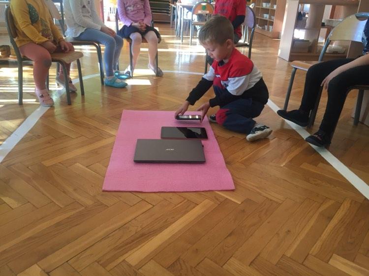 W naszej grupie odbyły się zajęcia na temat nowych urządzeń technologicznych, które wykorzystujemy na co dzień w celach informacyjnych, komunikacyjnych, edukacyjnych. Dzieci miały za zadanie metodą burzy mózgów wymienić jakie urządzenia posiadamy w naszej grupie oraz do jakich celów je wykorzystujemy. Ignaś słusznie zauważył, że nowe technologie pozwalają nam do korzystania z aplikacji edukacyjnych (np. Smarty, See More, GeniBot) za pomocą telefonu albo tabletu, aplikacji Microsoft Teams, która umożliwiła nam kontakt z dziećmi i rodzicami podczas pracy zdalnej. W czasie pandemii najczęściej wykorzystywanym urządzeniem, który nam towarzyszy jest telefon komórkowy, który pomaga nam na bieżąco kontaktować się z rodzicami.(Ula: Rodzice dzwonią jak przychodzą po swoje dzieci, albo piszą smsa, że kogoś nie będzie) Telefon komórkowy również wykorzystujemy do robienia zdjęć, które możemy później umieścić na stronie internetowej, dzięki temu rodzice na bieżąco mogą widzieć co jego dziecko robiło w przedszkolu. Joachim zwrócił uwagę również na to, że dzięki telefonom możemy włączać piosenki do nauki oraz zabaw ruchowych z głośnika bluetooth. Dzieci również zwróciły uwagę, że za pomocą laptopa, który posiadamy w grupie możemy co tydzień organizować piątkowe kino dla dzieci, które cieszy się dużym zainteresowaniem.