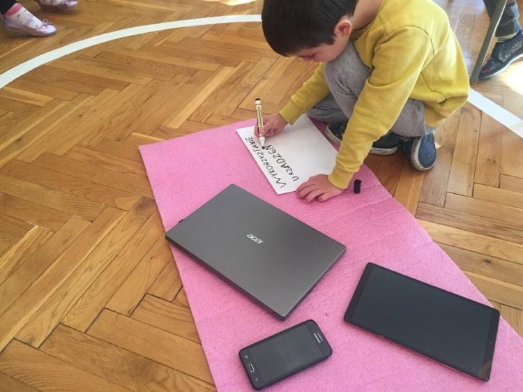 W naszej grupie odbyły się zajęcia na temat nowych urządzeń technologicznych, które wykorzystujemy na co dzień w celach informacyjnych, komunikacyjnych, edukacyjnych. Dzieci miały za zadanie metodą burzy mózgów wymienić jakie urządzenia posiadamy w naszej grupie oraz do jakich celów je wykorzystujemy. Ignaś słusznie zauważył, że nowe technologie pozwalają nam do korzystania z aplikacji edukacyjnych (np. Smarty, See More, GeniBot) za pomocą telefonu albo tabletu, aplikacji Microsoft Teams, która umożliwiła nam kontakt z dziećmi i rodzicami podczas pracy zdalnej. W czasie pandemii najczęściej wykorzystywanym urządzeniem, który nam towarzyszy jest telefon komórkowy, który pomaga nam na bieżąco kontaktować się z rodzicami.(Ula: Rodzice dzwonią jak przychodzą po swoje dzieci, albo piszą smsa, że kogoś nie będzie) Telefon komórkowy również wykorzystujemy do robienia zdjęć, które możemy później umieścić na stronie internetowej, dzięki temu rodzice na bieżąco mogą widzieć co jego dziecko robiło w przedszkolu. Joachim zwrócił uwagę również na to, że dzięki telefonom możemy włączać piosenki do nauki oraz zabaw ruchowych z głośnika bluetooth. Dzieci również zwróciły uwagę, że za pomocą laptopa, który posiadamy w grupie możemy co tydzień organizować piątkowe kino dla dzieci, które cieszy się dużym zainteresowaniem.