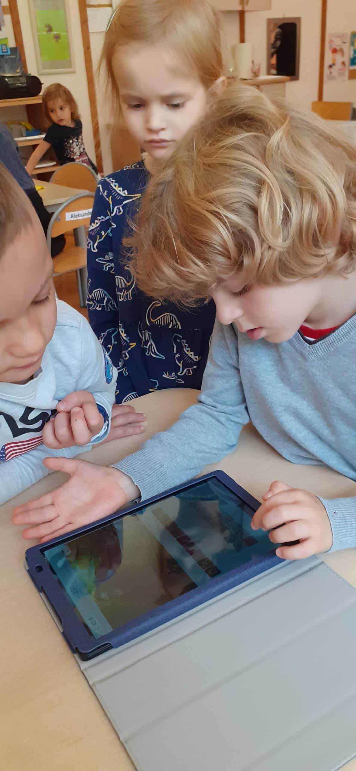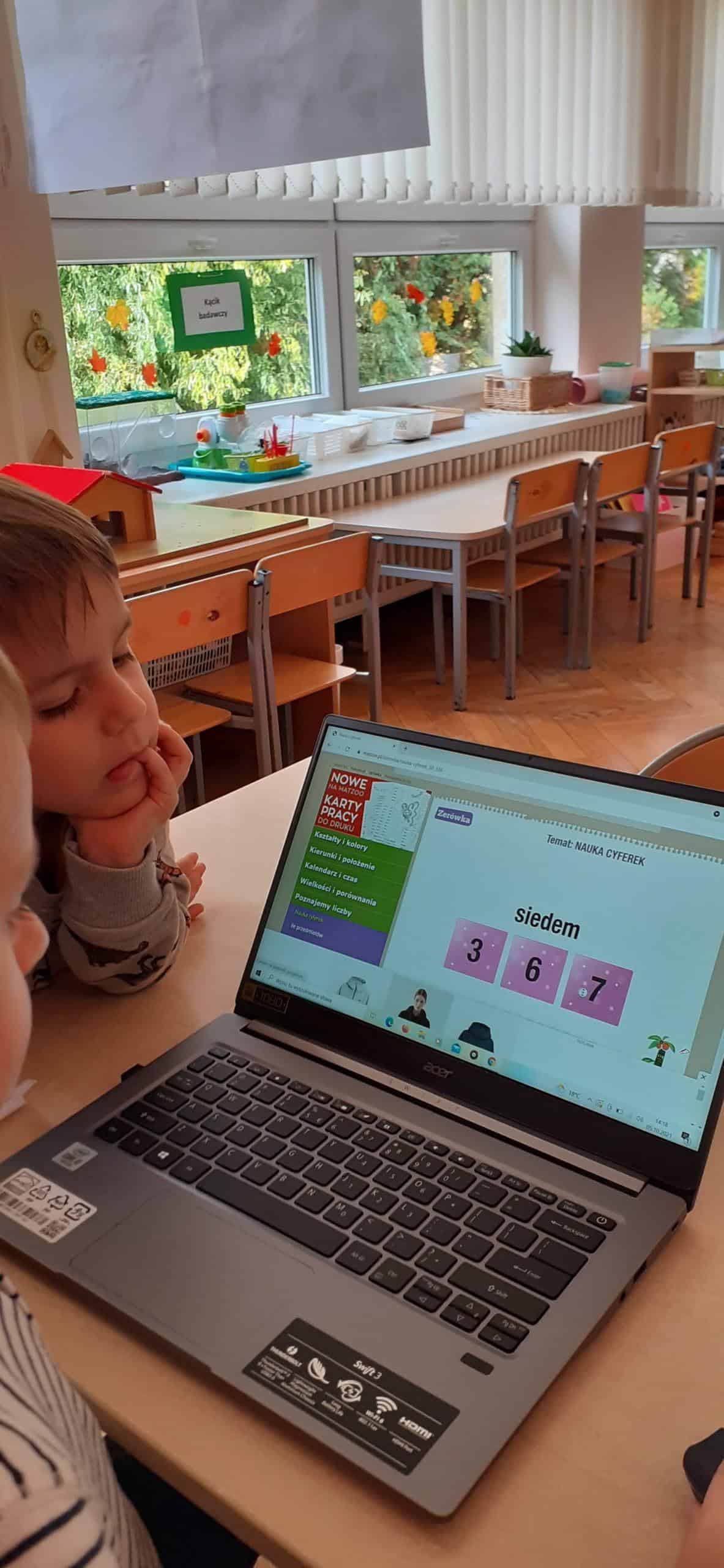 Od kilku lat w naszym przedszkolu stosujemy nowoczesne osiągnięcia technologii informacyjno – komunikacyjnej. Dzieci korzystają z tabletu, laptopa, dywanu interaktywnego , znają już Ozoboty i Geniboty. Urządzenia te pomagają dzieciom poznawać i rozumieć otaczający świat. Dzieci uczą się korzystać z tych urządzeń w sposób świadomy, racjonalny, poznają możliwości internetu , ale także zagrożenia znajdujące się w sieci. Przy okazji rozwijają procesy myślowe, koncentrację , spostrzegawczość, koordynację wzrokowo -ruchową, szybkość reakcji, uwagę. Technologie interaktywne pozwalają dzieciom zdobywać wiedzę za pomocą wielu zmysłów. Proponując dzieciom zabawy interaktywne wybieramy te, które najbardziej służą dzieciom i pomagają nam w osiąganiu wybranych celów edukacyjno – wychowawczych.