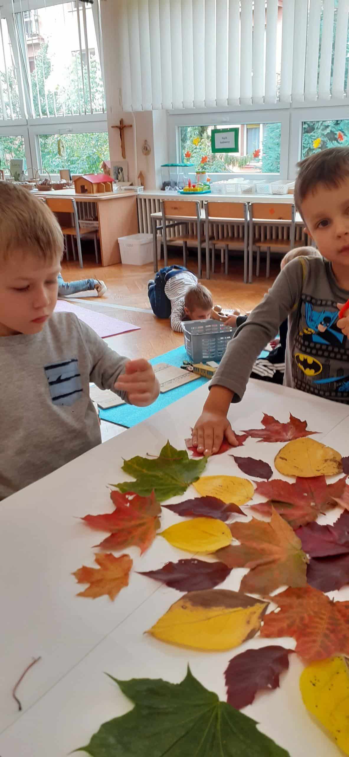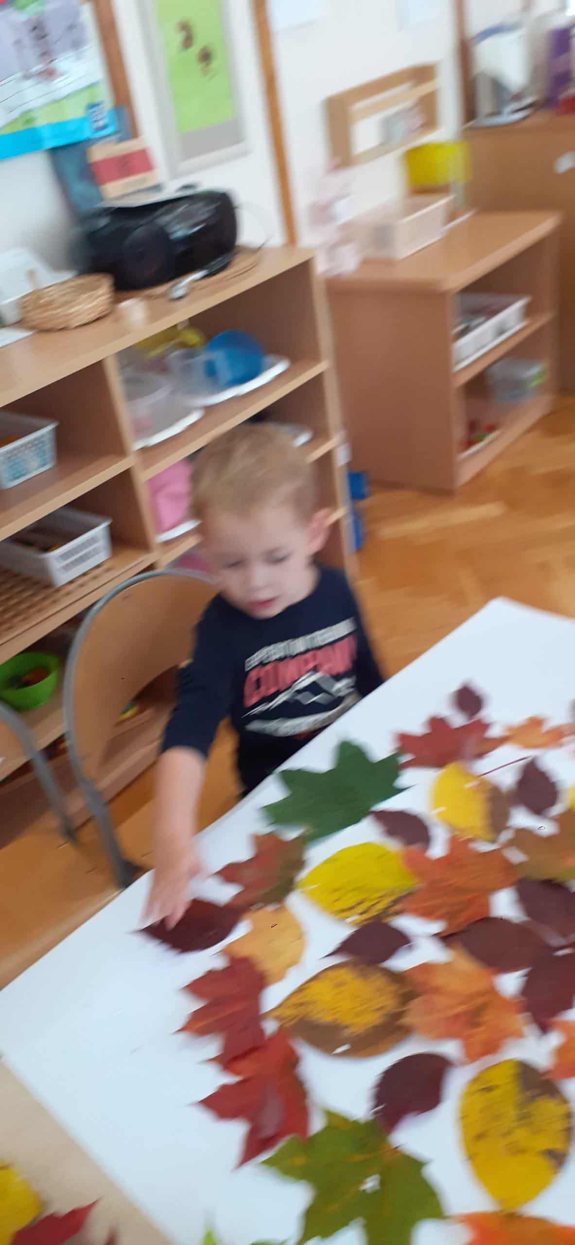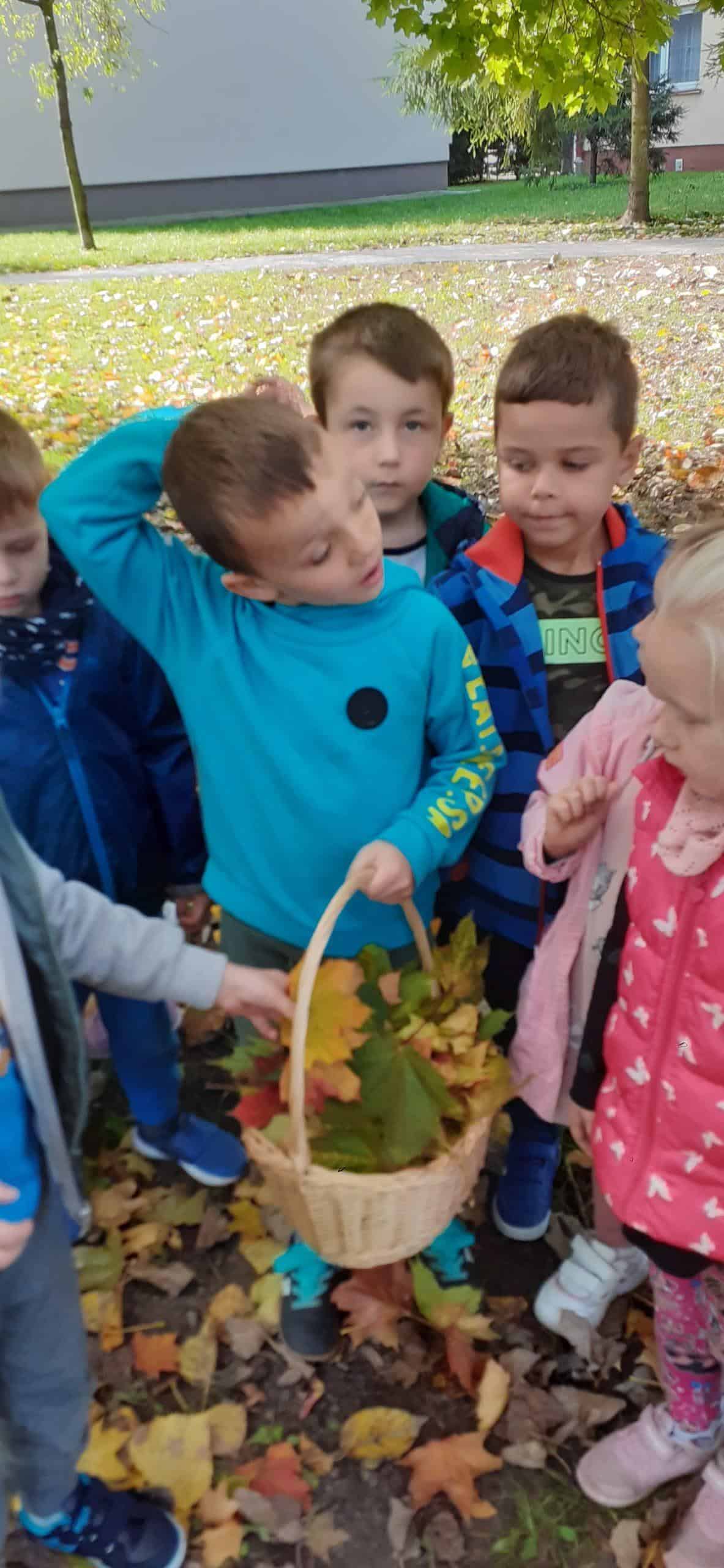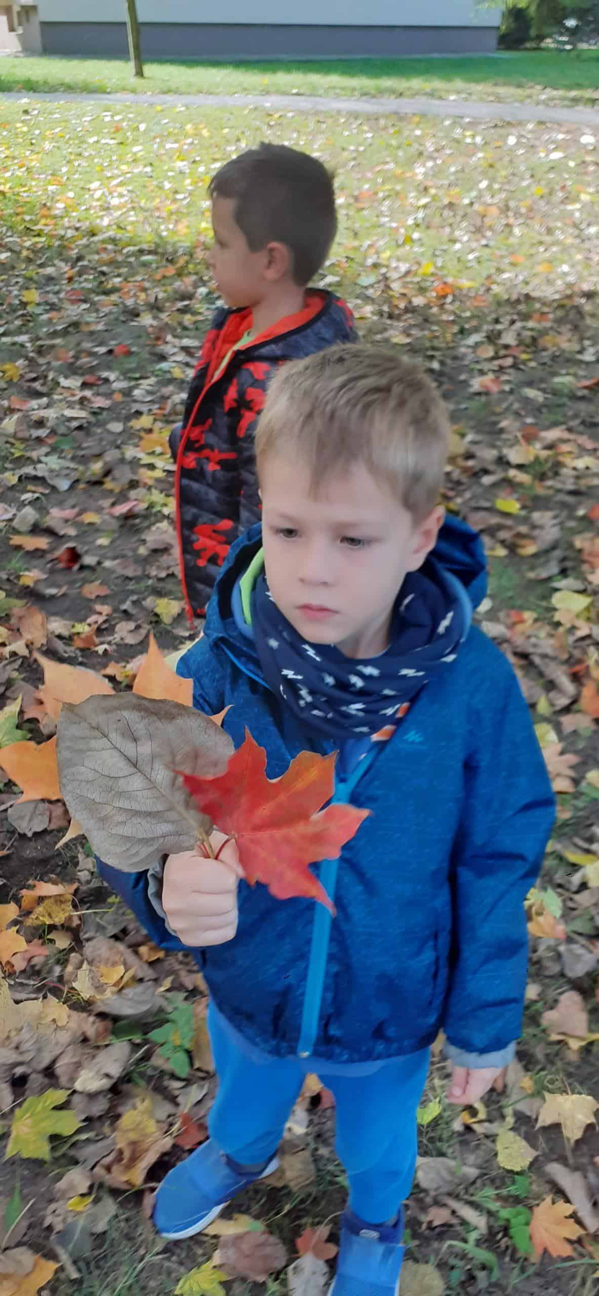 Po niemalże rocznej przerwie wznowiliśmy spacery z dziećmi po najbliższej okolicy. Dlatego teraz spacery wyzwalają mnóstwo emocji. Tym razem spacer miał określony cel- zgromadzić najpiękniejsze okazy rożnych gatunków liści , aby potem po ich zasuszeniu wykorzystać do aktywności plastycznej. Jak się okazało trafiliśmy na okazy w przeróżnych jesiennych kolorach . Była to okazja do utrwalenia nazw kolorów , również w języku angielskim. Dzieci określały widoczne zmiany w przyrodzie w związku z jesienią , przyglądały się rożnym gatunkom drzew, opisywały ich wygląd, poznawały kształty liści. Spacer ten w dużej mierze spełnił walory dydaktyczne , a także wychowawcze, dzieci dostrzegały piękno jesiennego krajobrazu, wróciły zrelaksowane i zadowolone z pięknej kolekcji liści .