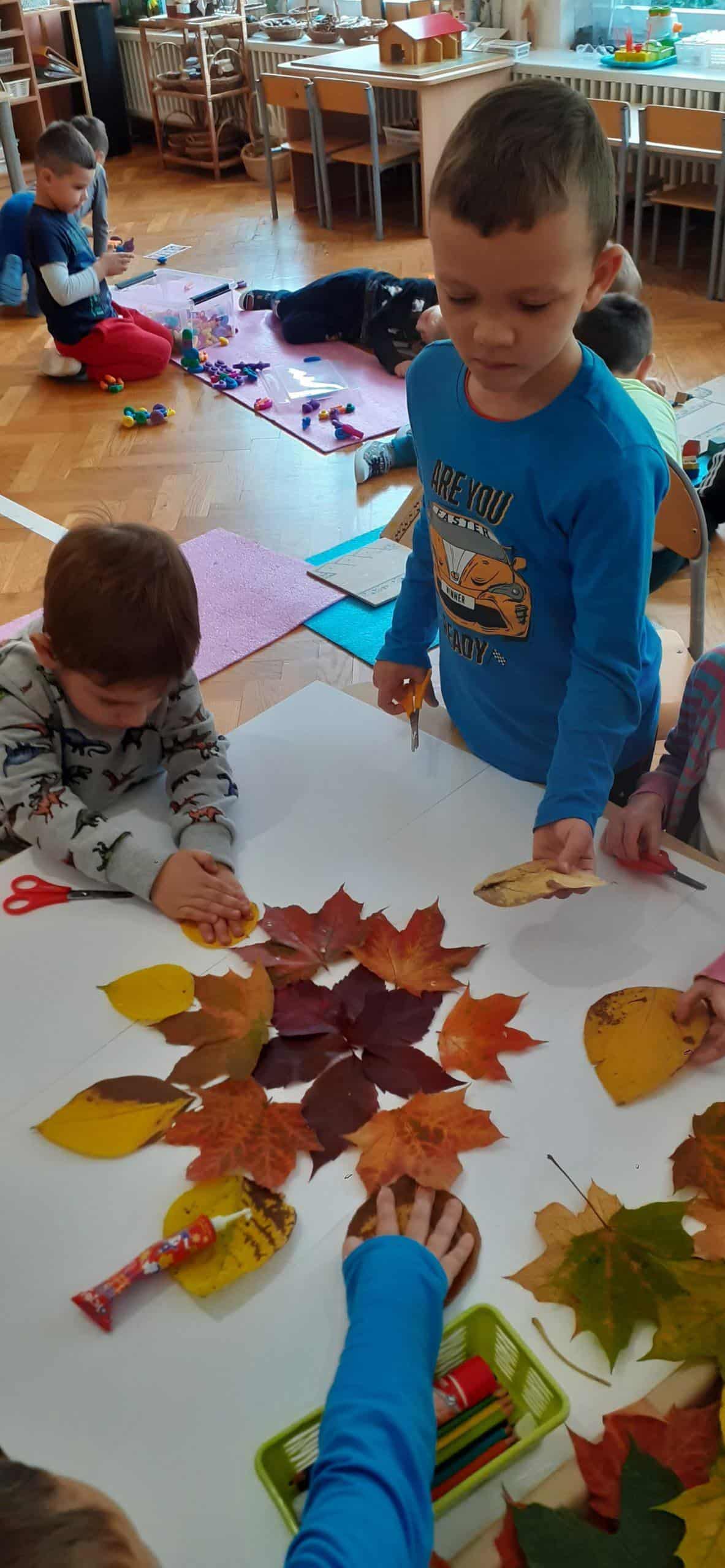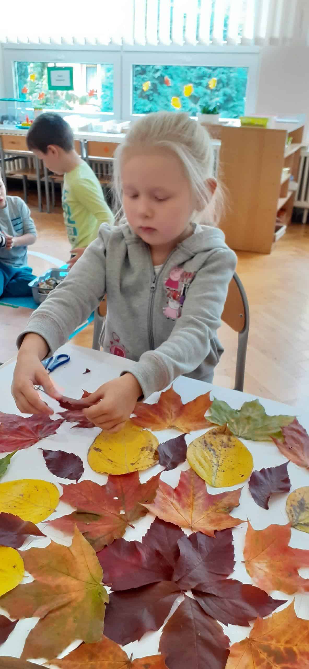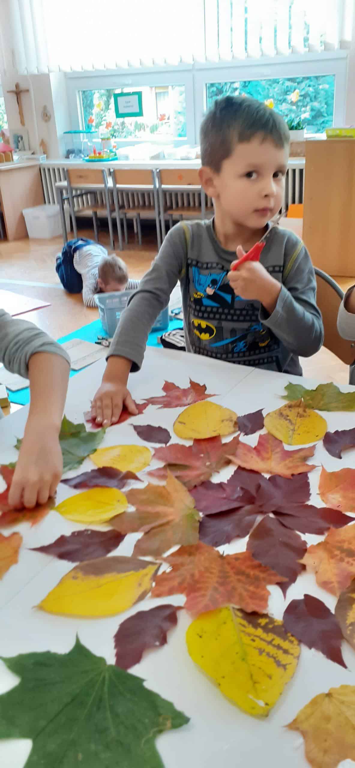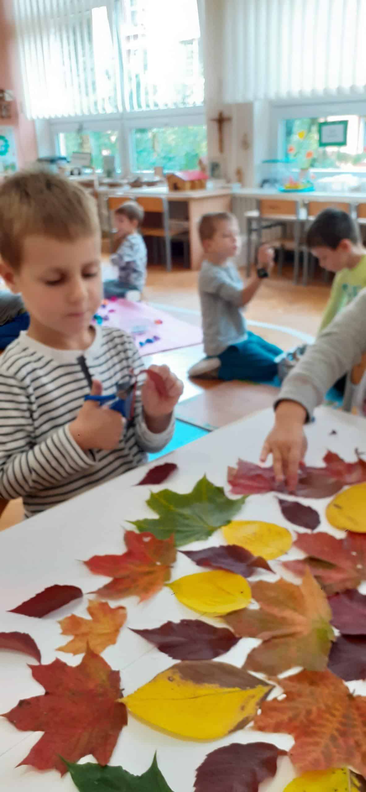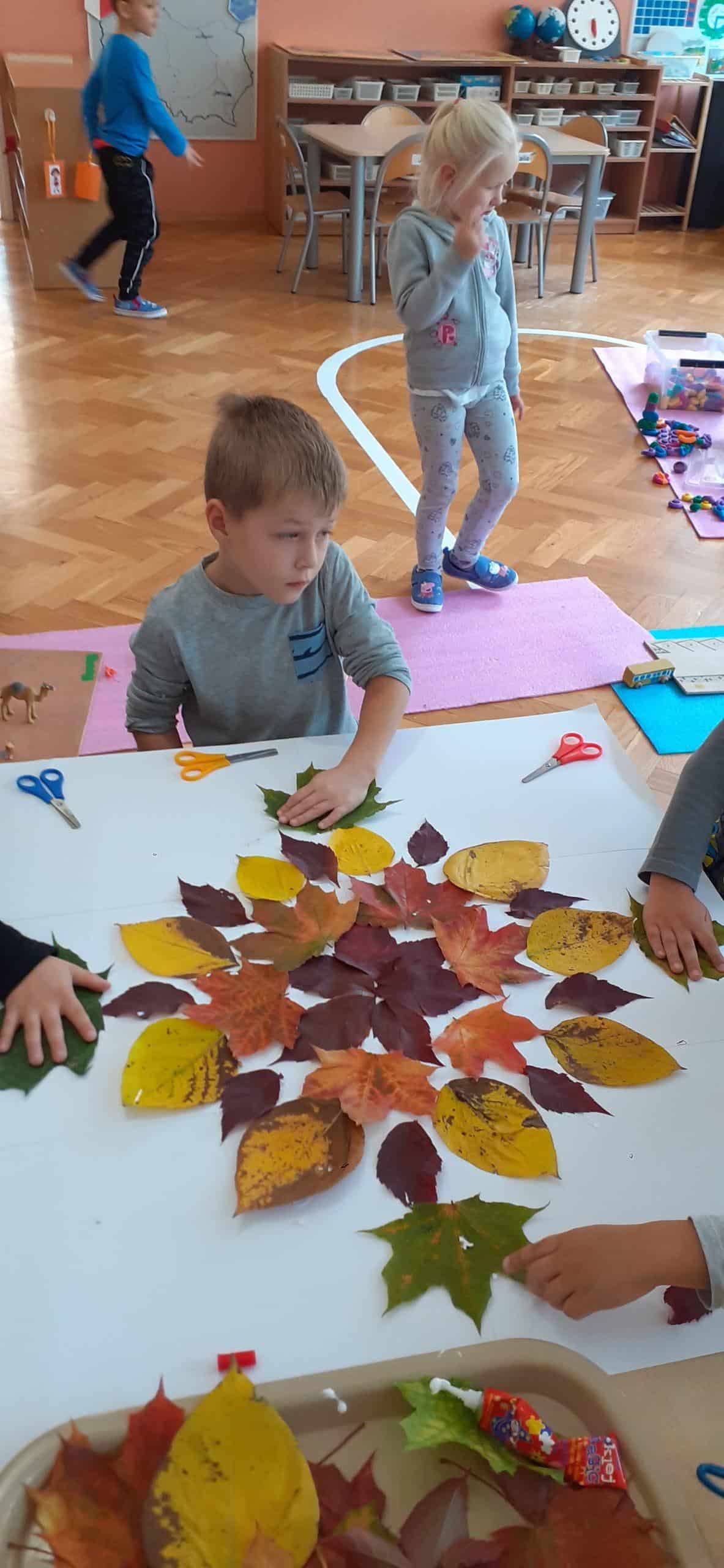 Po niemalże rocznej przerwie wznowiliśmy spacery z dziećmi po najbliższej okolicy. Dlatego teraz spacery wyzwalają mnóstwo emocji. Tym razem spacer miał określony cel- zgromadzić najpiękniejsze okazy rożnych gatunków liści , aby potem po ich zasuszeniu wykorzystać do aktywności plastycznej. Jak się okazało trafiliśmy na okazy w przeróżnych jesiennych kolorach . Była to okazja do utrwalenia nazw kolorów , również w języku angielskim. Dzieci określały widoczne zmiany w przyrodzie w związku z jesienią , przyglądały się rożnym gatunkom drzew, opisywały ich wygląd, poznawały kształty liści. Spacer ten w dużej mierze spełnił walory dydaktyczne , a także wychowawcze, dzieci dostrzegały piękno jesiennego krajobrazu, wróciły zrelaksowane i zadowolone z pięknej kolekcji liści .