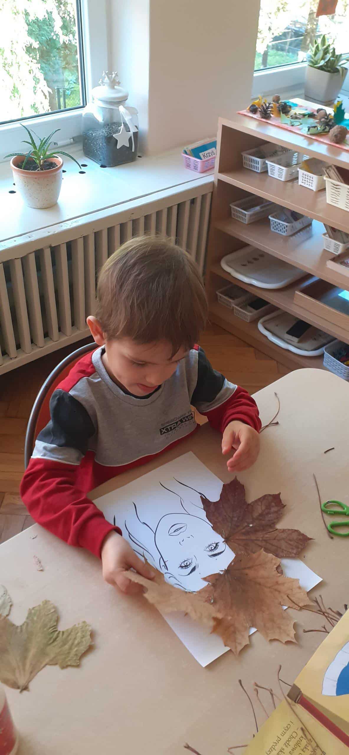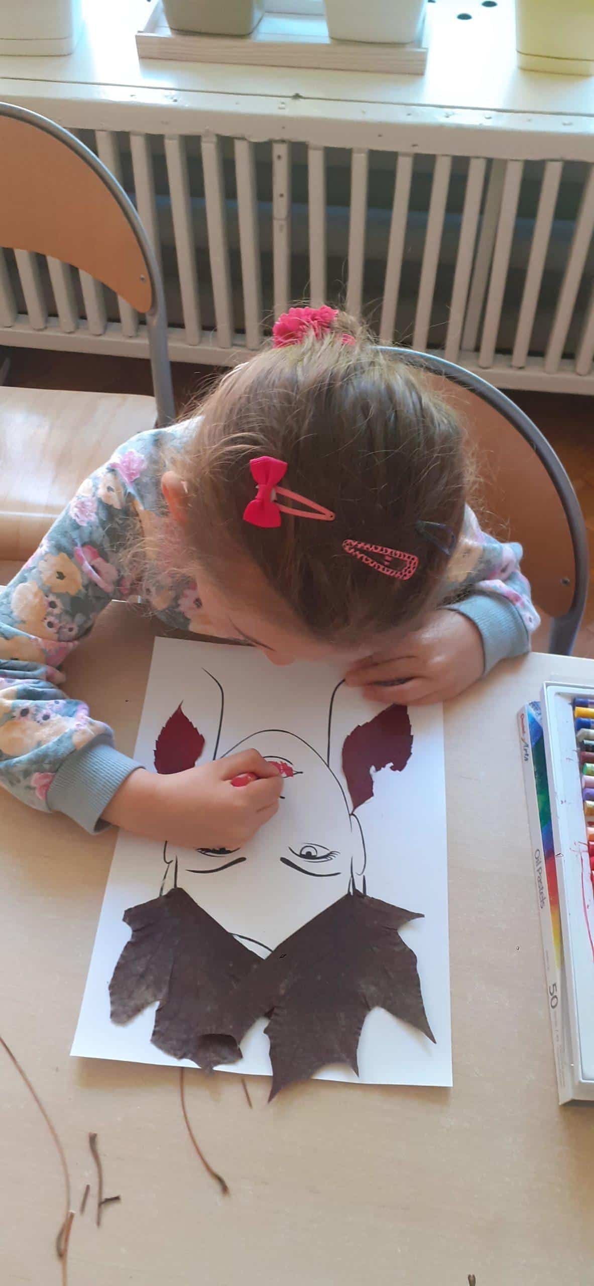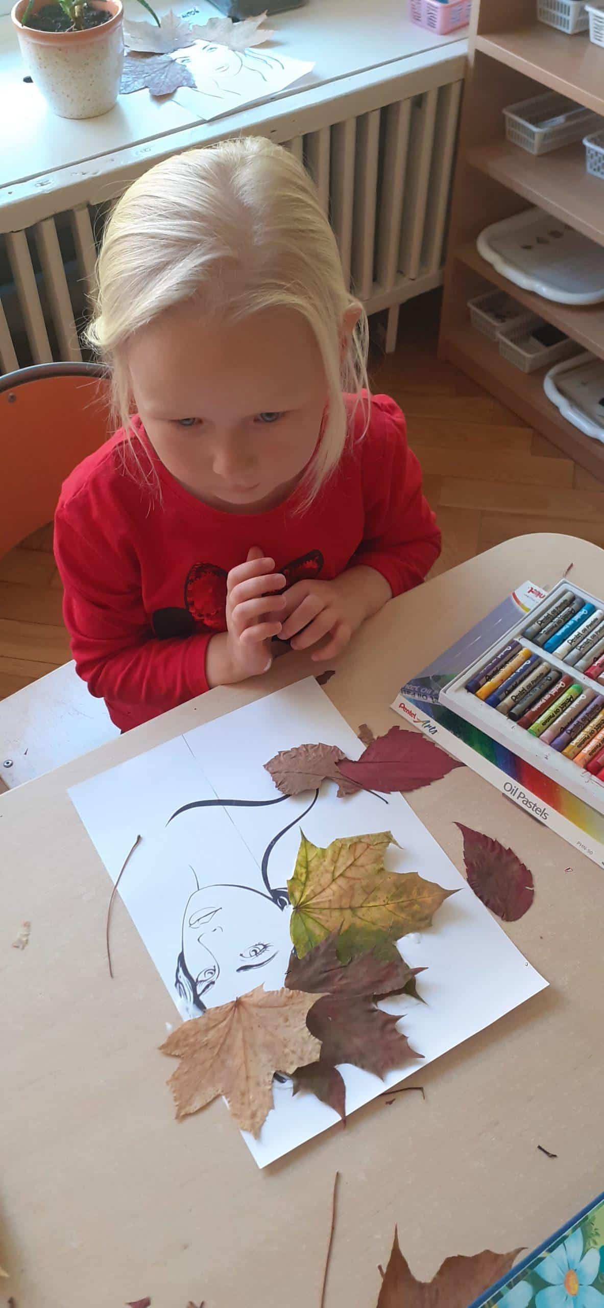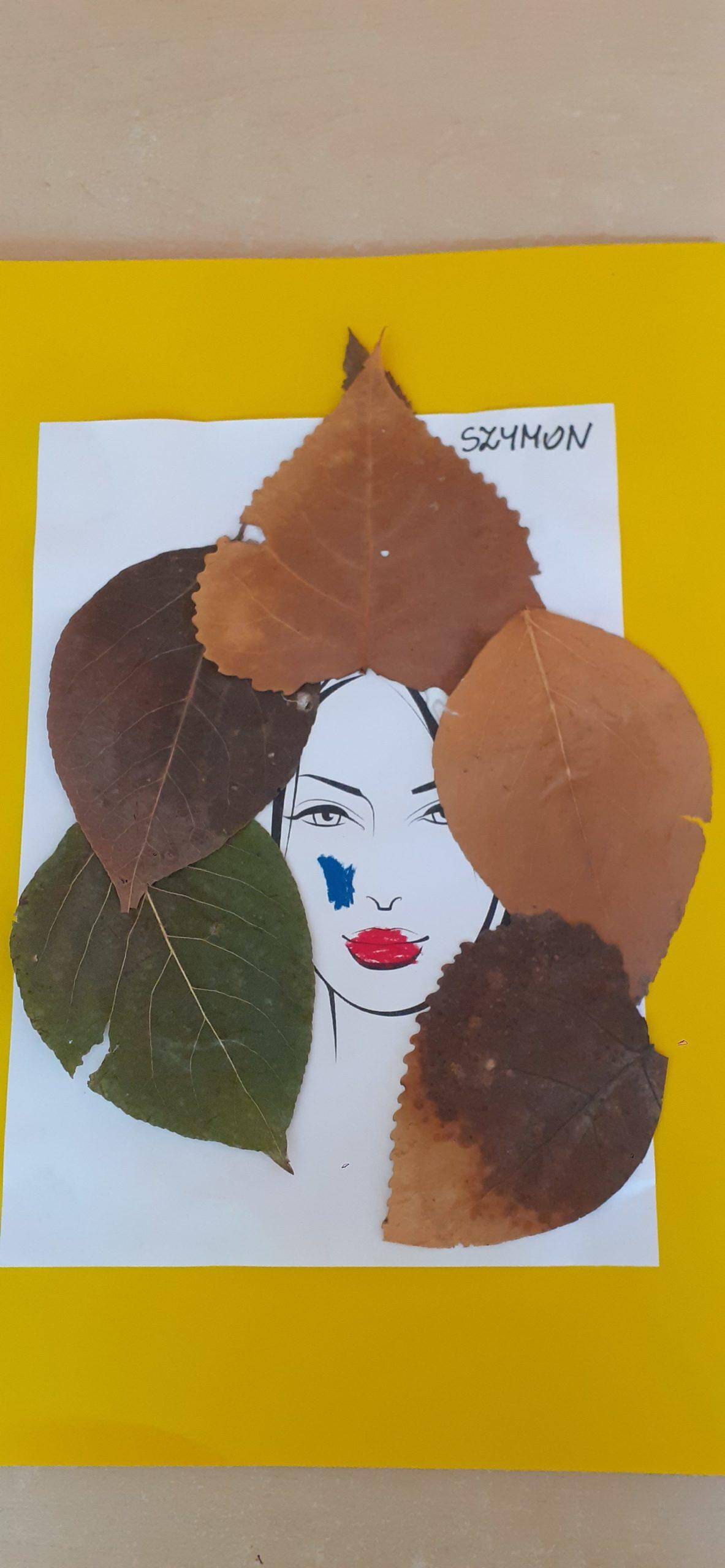 Kreatywne działania przedszkolaków – zaprojektowanie fryzury z wykorzystaniem zasuszonych, kolorowych liści. Tak na wesoło i z przymrużeniem oka -Drogie Mamy – to są najmodniejsze fryzury tej jesieni, fryzury czesane wiatrem, może ktoś potrzebuje inspiracji na ten sezon – warto wykorzystać -dzieci naprawdę się postarały 🙂