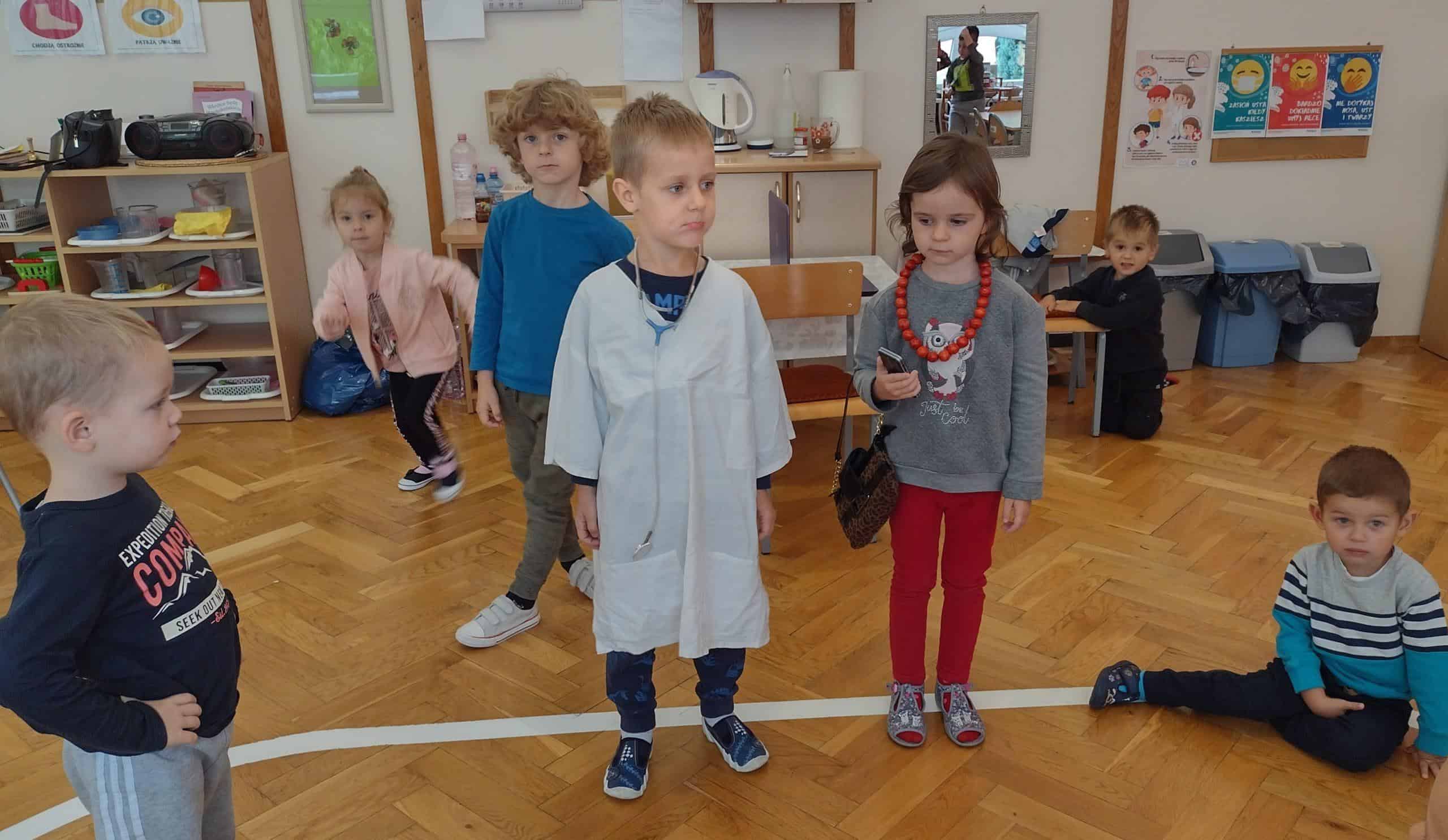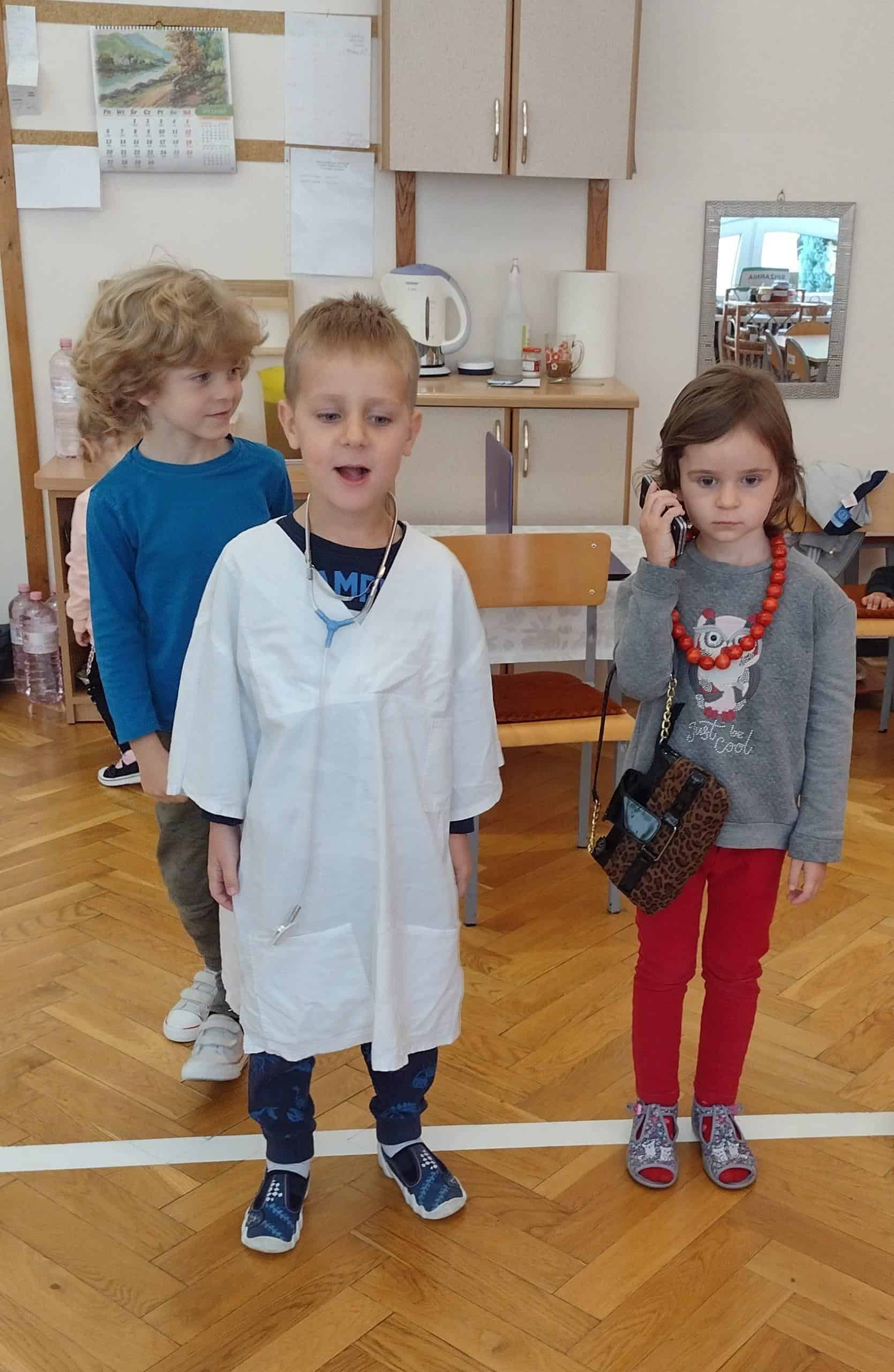 Na angielskim odwiedziło nas stado figlarnych małpek, które rozbrykały się po całej sali. Pięć z nich zaczęło skakać po łóżku, i jedna po drugiej – spadać z niego, co niestety skutkowało guzem na głowie. Mama małpka raz po raz dzwoniła do doktora, który zabronił małpkom skakania po łóżku, ale małpki jak to małpki…