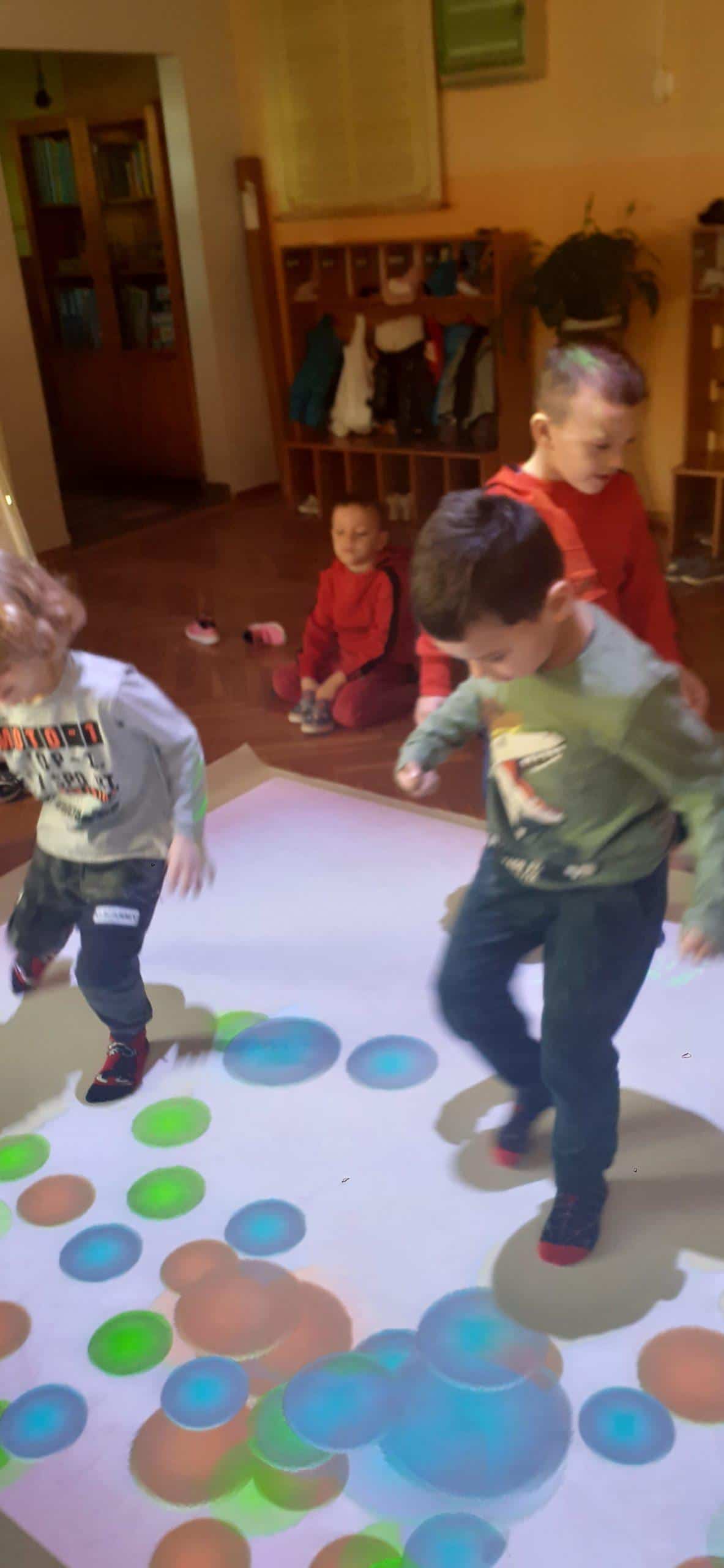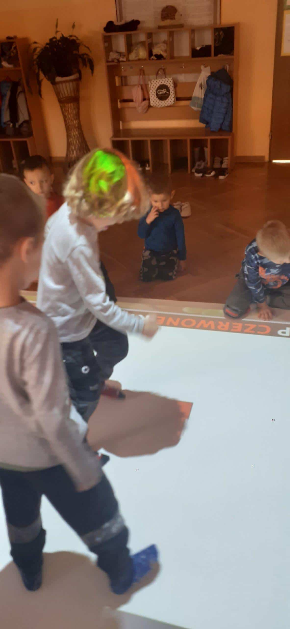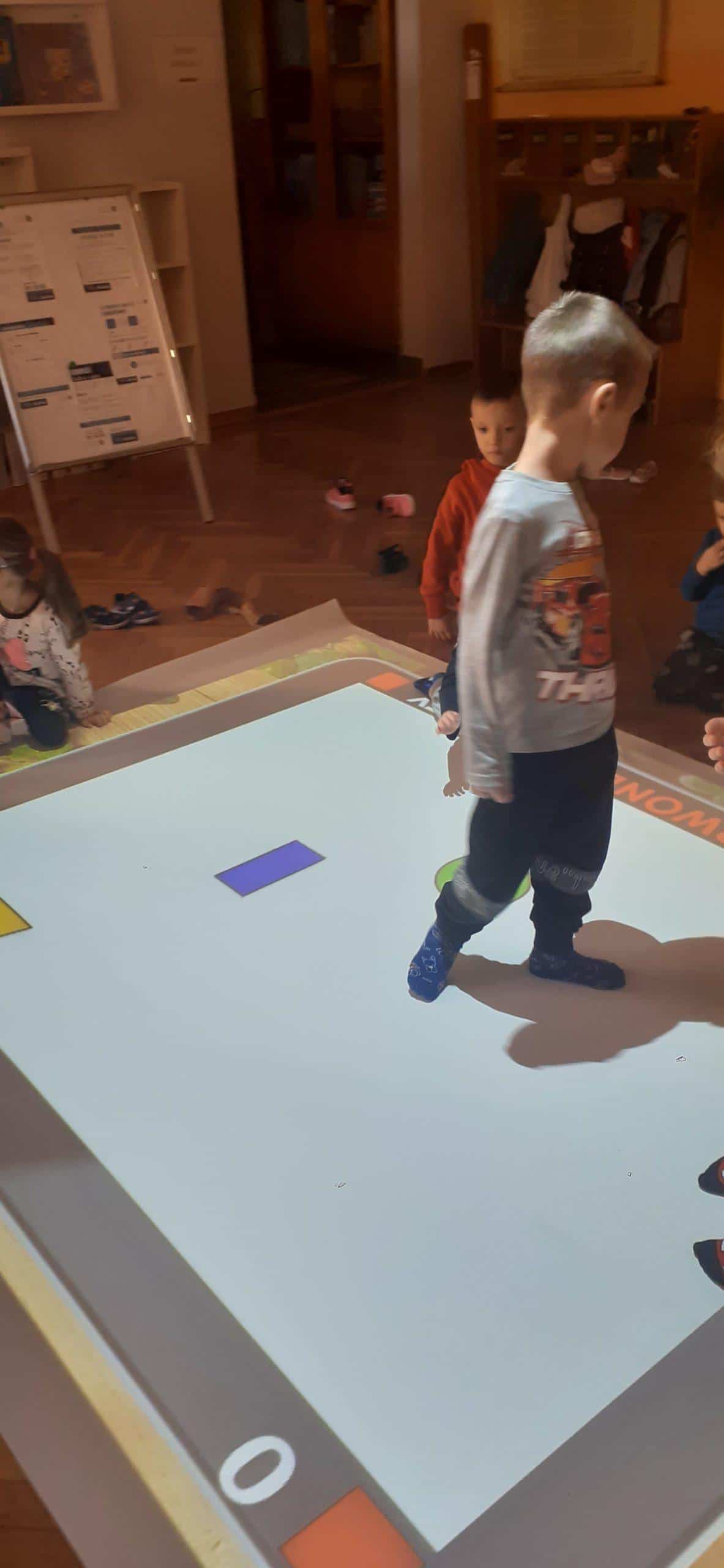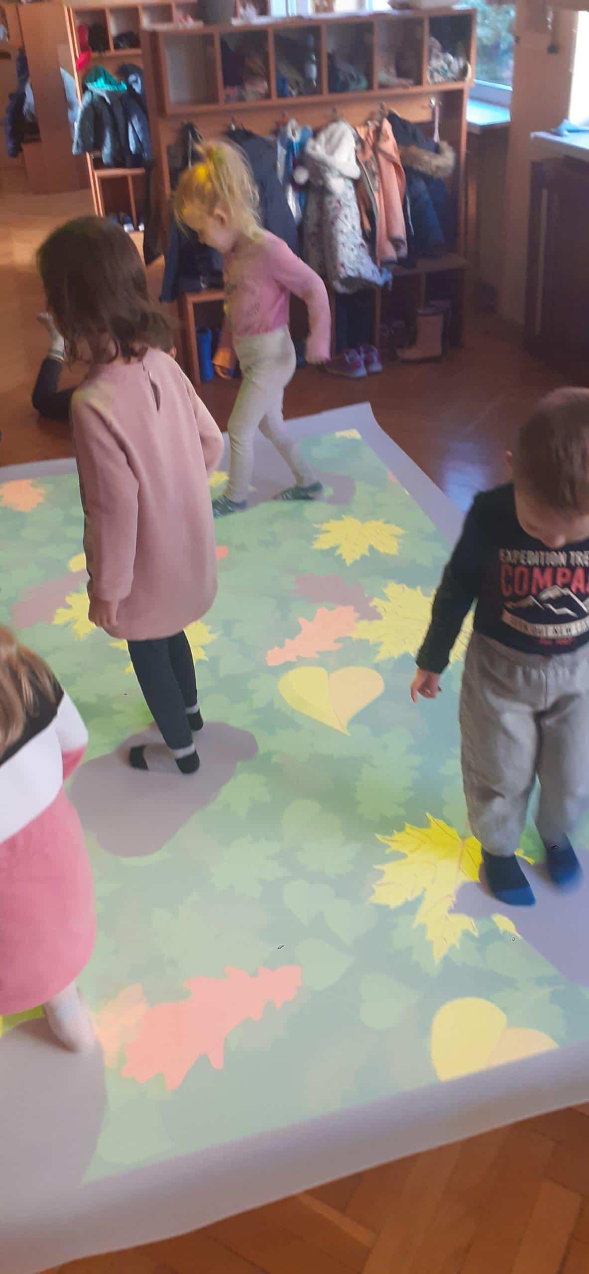 Dywan interaktywny to ulubiona forma zajęć dzieci. Umieszczony pod sufitem projektor interaktywny tworzy wirtualną interaktywną podłogę, na której dzieci przeżywają ciekawe doświadczenia. To też nauka połączona z zabawą, ale także z edukacją poznawczą z różnych obszarów rozwojowych. Podczas zabaw i ćwiczeń na interaktywnym dywanie dzieci rozwijają lub doskonalą kompetencje językowe, matematyczne, przyrodnicze, a także pamięć, uwagę , spostrzegawczość, koncentrację uwagi.