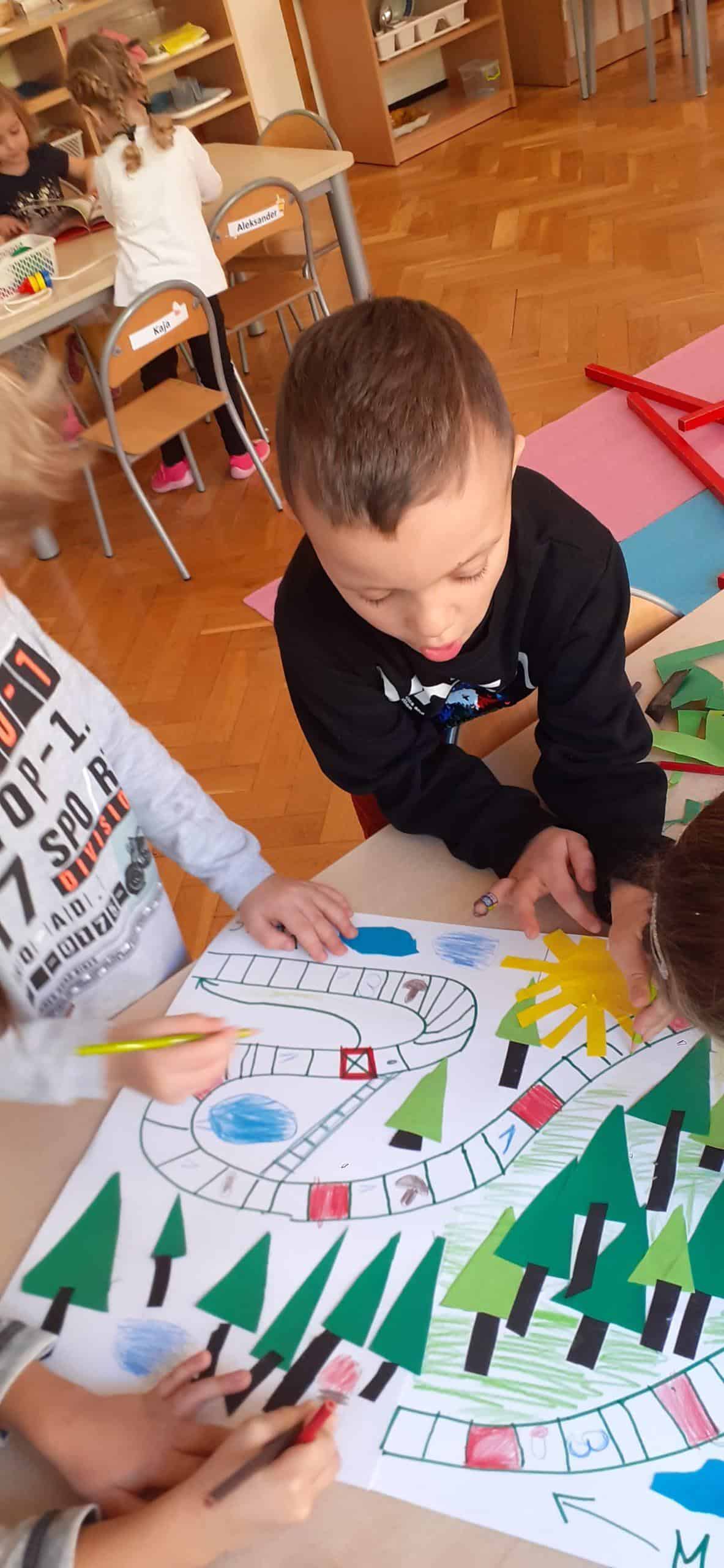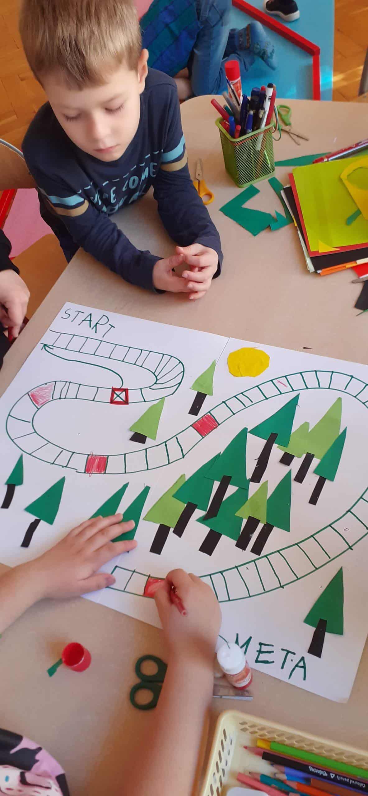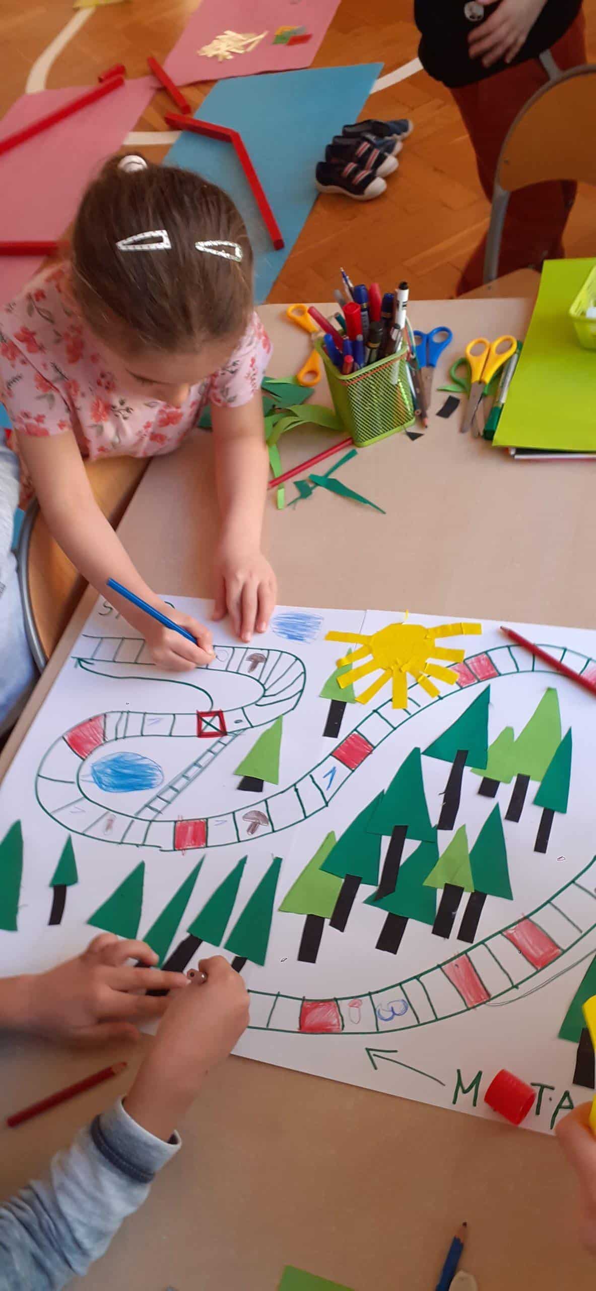 W tym roku szkolnym w grupie Pomarańczowej realizowany jest program , którego głównym celem jest nauczenie dzieci sztuki konstruowania gier matematycznych. Program ten proponuje zastosowanie różnorodnych gier matematycznych o różnym stopniu trudności , o bardziej lub mniej rozbudowanym wątku matematycznym . Będą to tzw.: gry – ściganki i gry opowiadania , ale zaprojektowane przez dzieci (plansza i zasady gry). Realizowane treści zawarte w tym programie dostarczą dziecku konkretnych doświadczeń , niezbędnych do zrozumienia pojęć matematycznych , rozwinął umiejętność logicznego myślenia , zaspokoją ciekawość , rozwijać będą zainteresowania i pobudzą dzieci do samodzielnej aktywności. W miarę jak będą powiększać się kompetencje matematyczne dzieci , sytuacje w grach będą coraz bardziej matematyzowane i na coraz wyższym poziomie trudności. Dlatego też zapoznanie dzieci z grami matematycznymi i wprowadzenie ich w tajniki ich konstruowania w ogromnym stopniu wpłynie na przygotowanie do sprostania zadaniom stawianym przez szkołę. Nauczenie dzieci konstruowania gier, oraz ich rozgrywania przyczyni się nie tylko do rozwijania kluczowych kompetencji matematycznych, ale także będzie kształtowało odporność emocjonalną, co jest niezmiernie istotnym czynnikiem wpływającym na tak ważną dojrzałość szkolną. W ostatnim czasie na okoliczność konkursu, w ramach którego było zaprojektowanie gry planszowej powstała gra pt.” Na grzyby”. Było to dla dzieci bardzo emocjonujące zadanie , zwłaszcza w kontekście ustalania zasad gry , ustalania tzw. premii i pułapek. I udało się poswatała fantastyczna gra planszowa z wątkiem matematycznym.