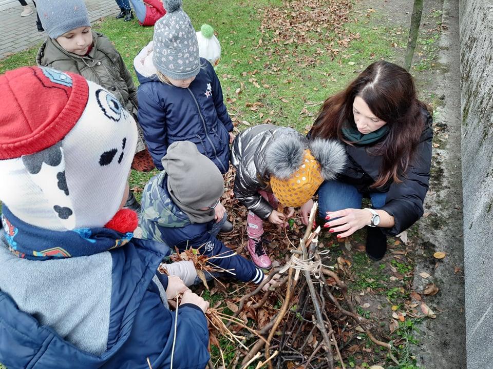 Pan Jacek opowiedział ciekawą historię łowiectwa, wymienił zadania koła łowieckiego, wytłumaczył dzieciom jaką rolę mają myśliwi w ochronie przyrody. Zwrócił uwagę, iż członkowie Polskiego Związku Łowieckiego dbają o ojczystą przyrodę, rozwój przyrody i odnowę zwierzyny. Myśliwy w absorbujący sposób zobrazował dzieciom zwierzęta leśne i sposoby ich dokarmiania zimą. Opowiedział o zwyczajach myśliwych i ich obowiązkach wobec przyrody. Myśliwy zajmuje się dzikimi zwierzętami mieszkającymi w lasach i na polach.Myśliwi także dokarmiają zwierzęta. Na polach budują budki dla bażantów czy kuropatw a w lasach paśniki i lizawki (karmniki z solą dla zwierząt). Wielką niespodzianką były medale i breloki z dzikiem, które wręczył dzieciom Pan Jacek.