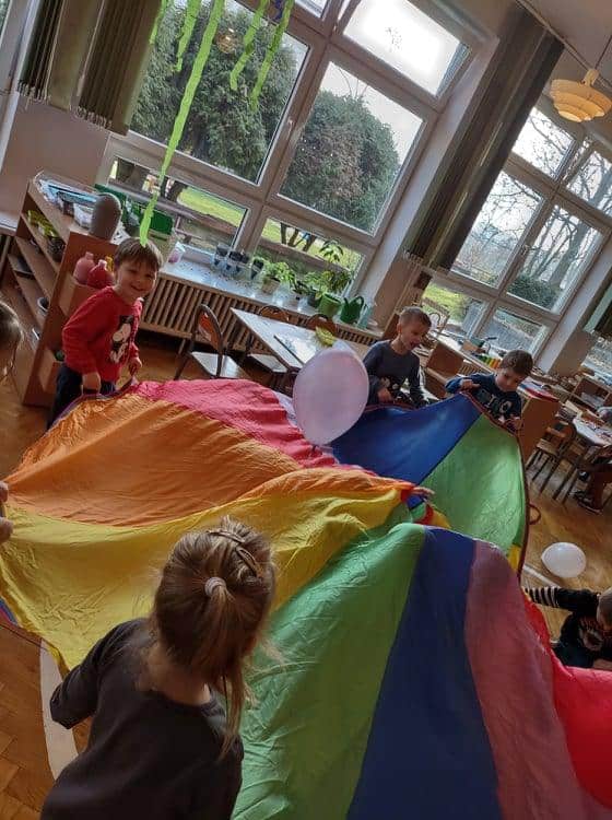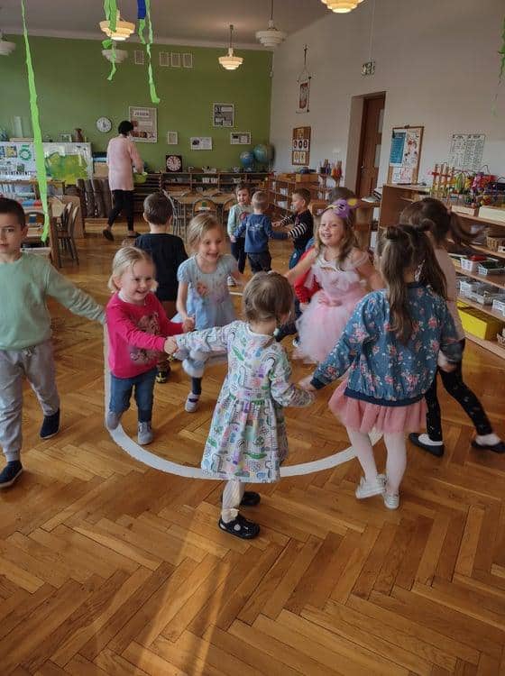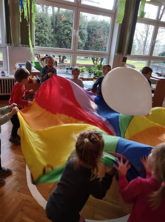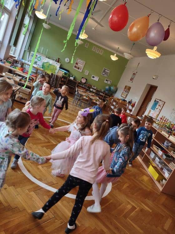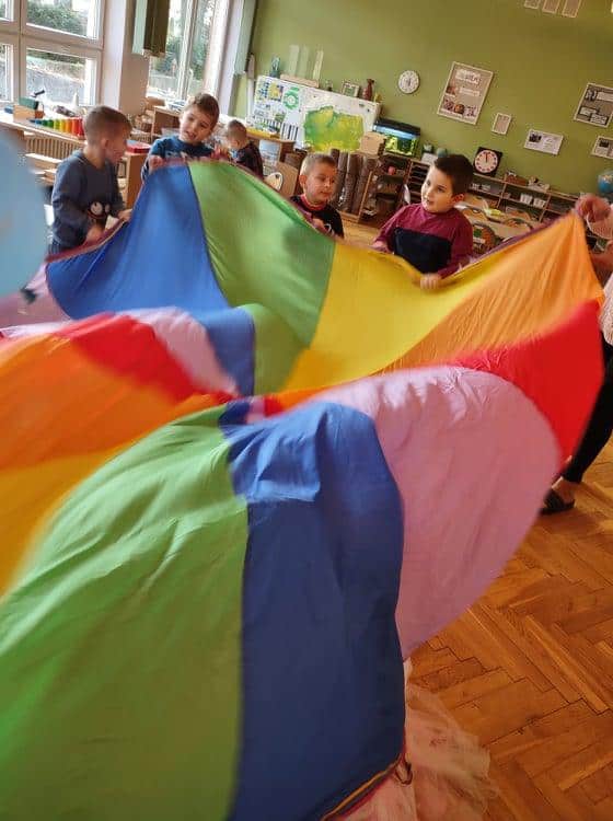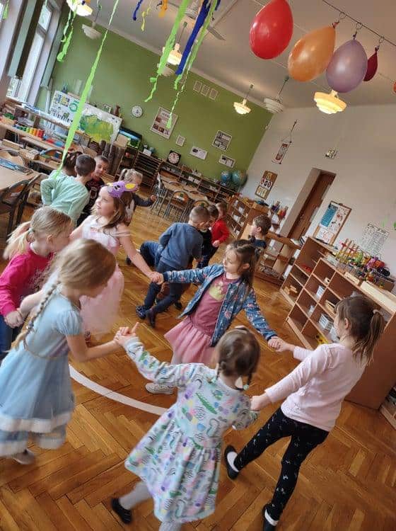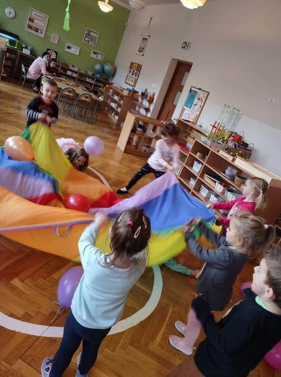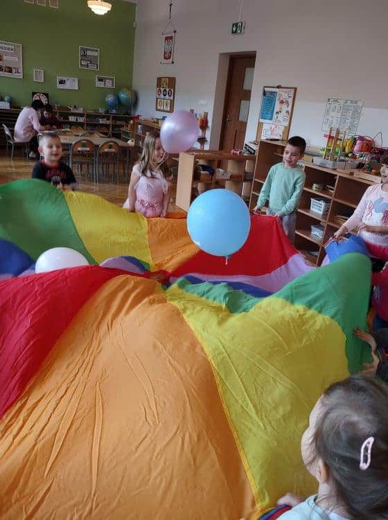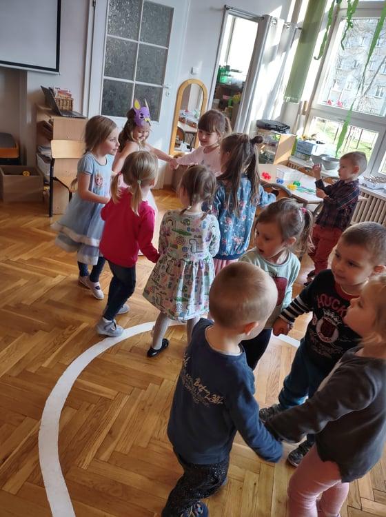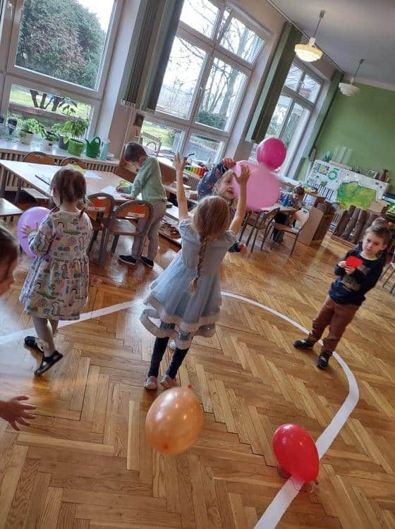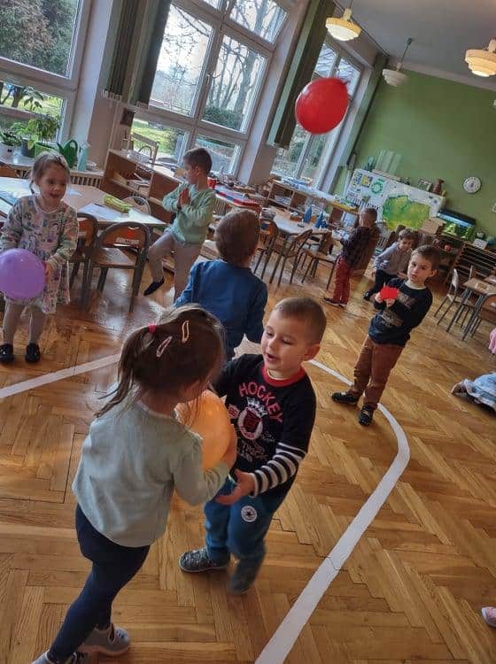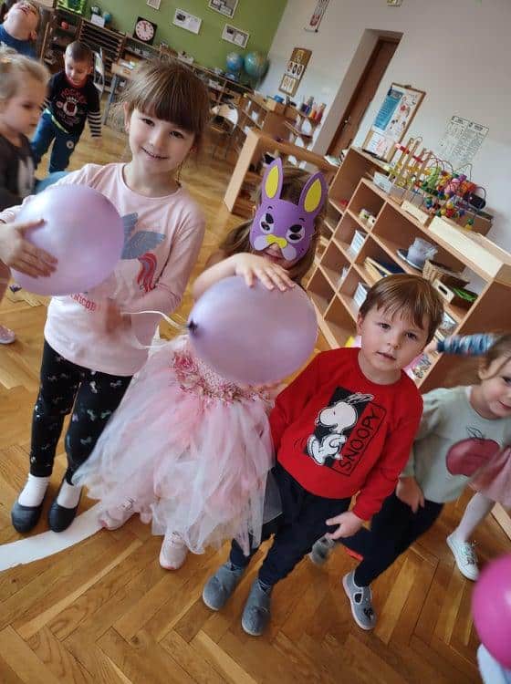 26 listopada był w naszym przedszkolu dniem pełnym radości. Dzieci wspaniale bawiły się na zabawie andrzejkowej organizowanej w każdej z grup. Niestety w związku z pandemią nie mogliśmy złączyć sił i wspólnie ze wszystkimi grupami pląsać do muzyki, ale w grupie, w rytm znanych przebojów dziecięcych i aktualnych hitów muzyki tanecznej, bawiliśmy równie dobrze. Podczas zabawy w „pociąg” dzieci „zwiedziły” wiele krajów i bawiły się do ich przebojów muzycznych. Nie zabrakło zabawy z chustą, piłeczkami i tańca z balonami. Podczas zabawy wszystkim towarzyszyły wyśmienite humory, każdy znalazł dla siebie coś, co wywoływało na twarzach wiele radości ze wspólnej zabawy 🙂