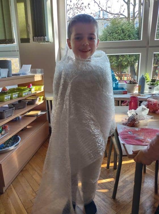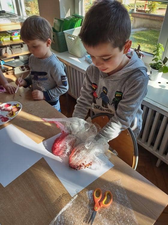 Zabawy z folią bąbelkową.
