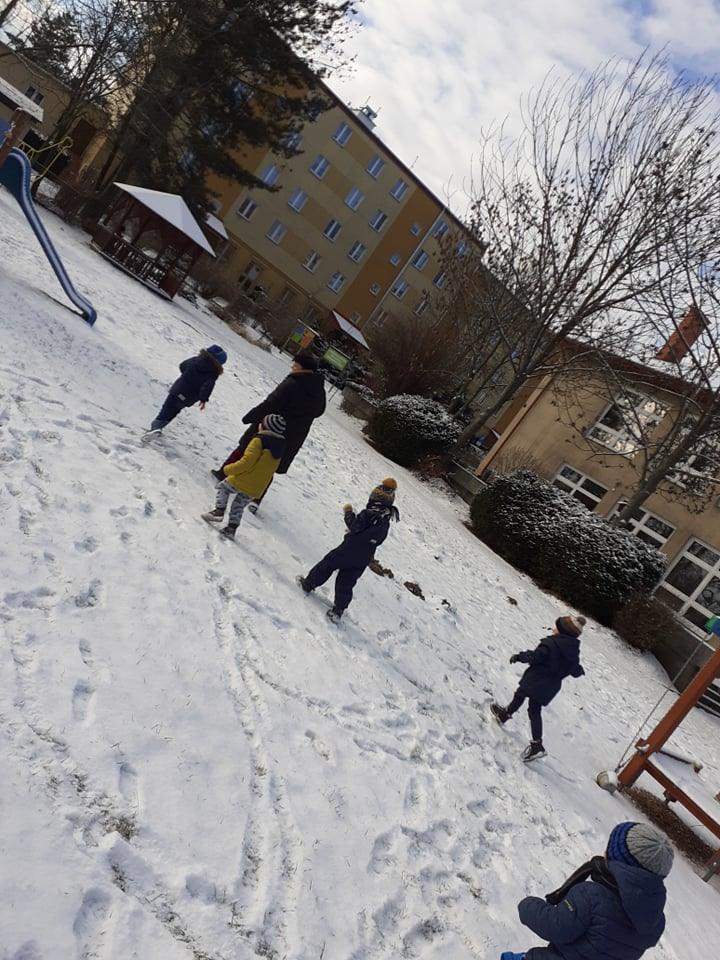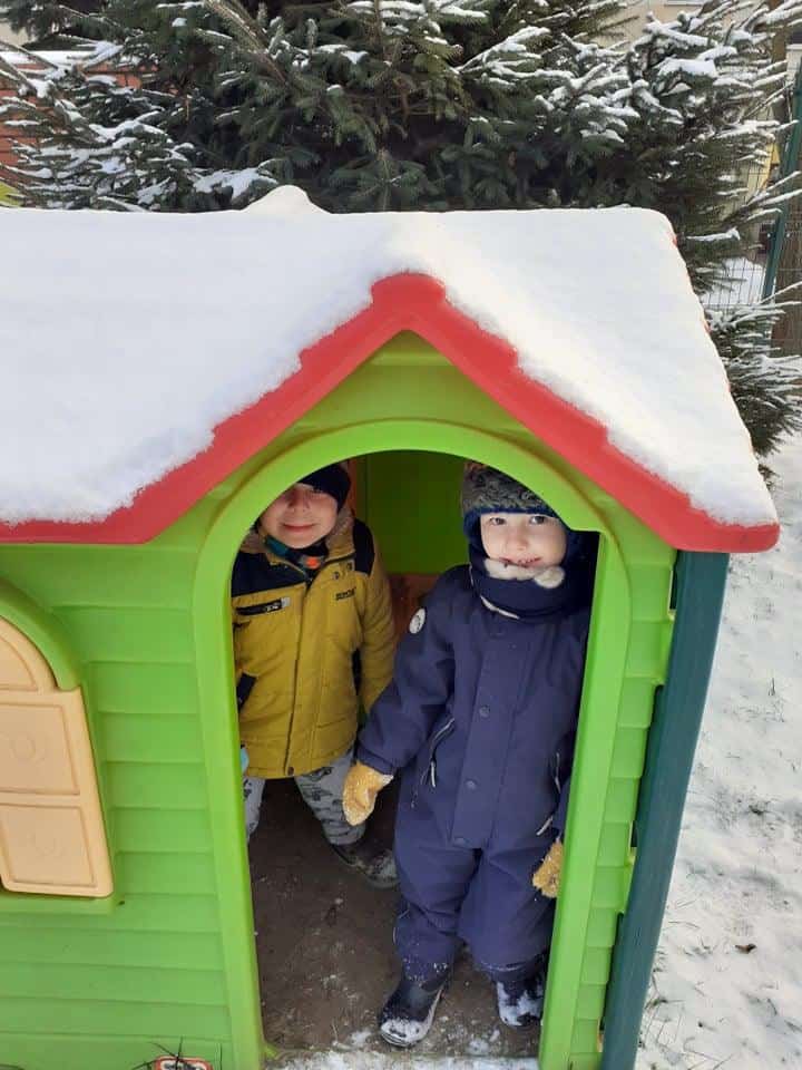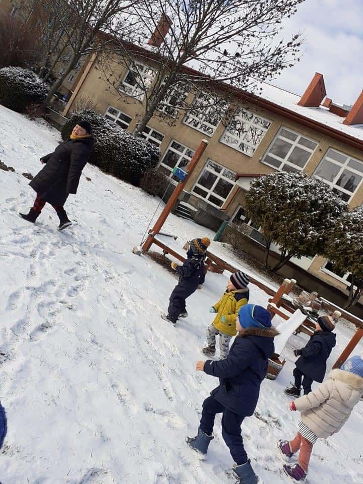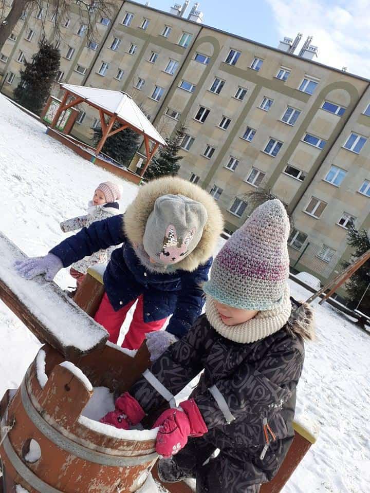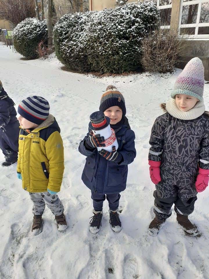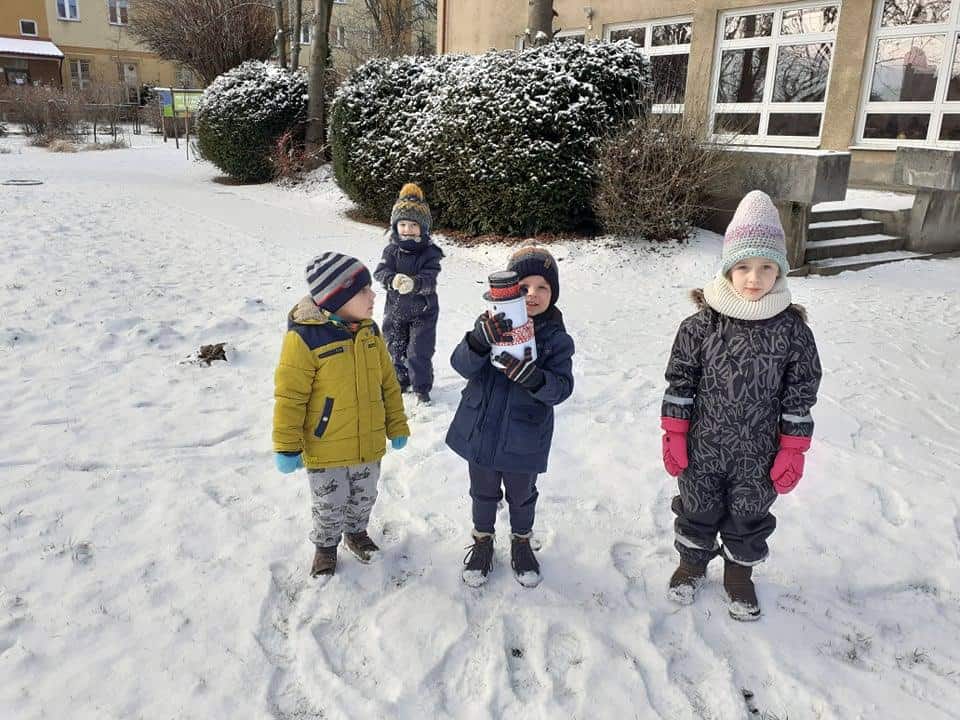 Grudzień okazał się być iście śnieżnym miesiącem, stąd też nie mogliśmy nie skorzystać z tak pięknej pogody i chociaż na chwilę nie udać się do naszego przedszkolnego ogrodu, tym razem w jego zimowej odsłonie. Udało nam się napełnić karmniki dla ptaków i oczywiście zrobić bitwę na śnieżki 🙂