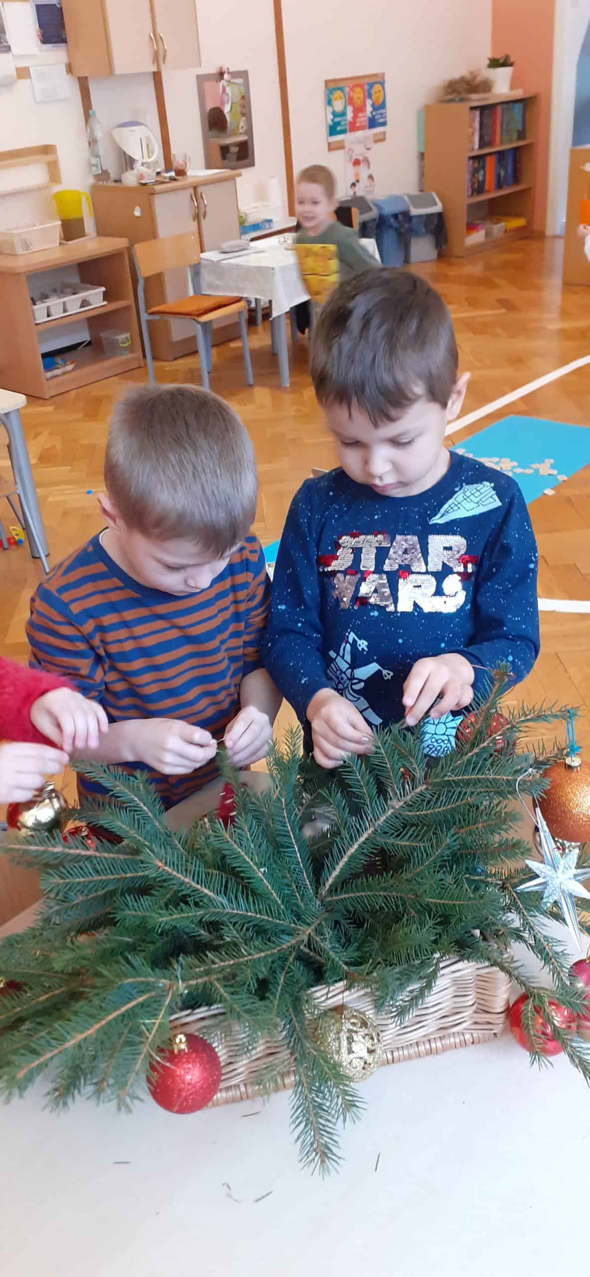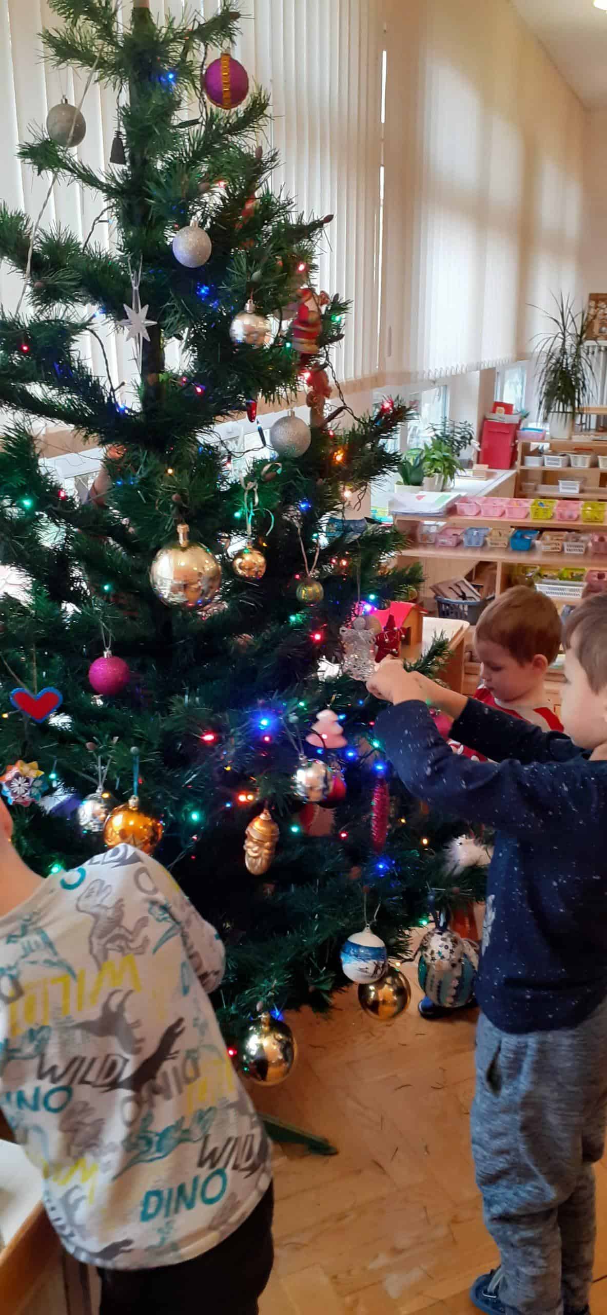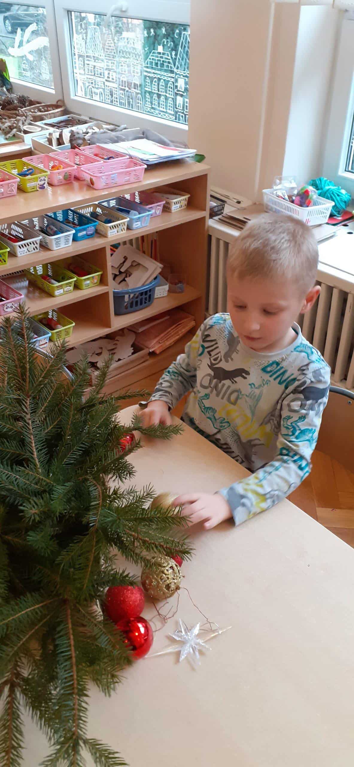 Adwent to czas oczekiwania na narodzenie Pana Jezusa. Czas ten wypełniliśmy wieloma aktywnościami. Najpierw zaplanowaliśmy krok po kroku nasze działania i stopniowo przechodziliśmy do ich realizacji . Rozpoczęliśmy od Encyklopedii Tradycji Polskiej i  gromadzenia wiedzy o  celebrowaniu Bożego  Narodzenia dawniej. Dzieci mogły się dowiedzieć jak dawniej strojono choinki, a także poznać symbolikę poszczególnych ozdób. Nie mogło zabraknąć aktywności plastycznej związanej z wykonaniem papierowego łańcucha choinkowego, nauki piosenek o Bożym Narodzeniu, a także kolęd i pastorałek. Punktem kulminacyjnym tych przygotowań  było strojenie choinki , a także wykonanie stroika ze świeżych, zielonych gałązek świerkowych. Interaktywne zabawy o tematyce bożonarodzeniowej pozwoliły dzieciom utrwalić wiedzę związaną z tradycją bożonarodzeniową. To był bardzo pracowity czas.