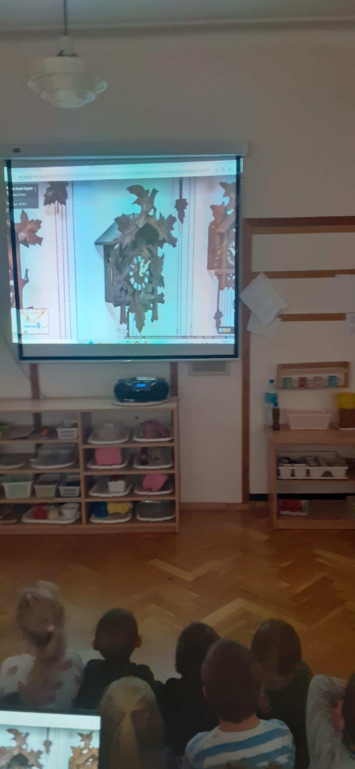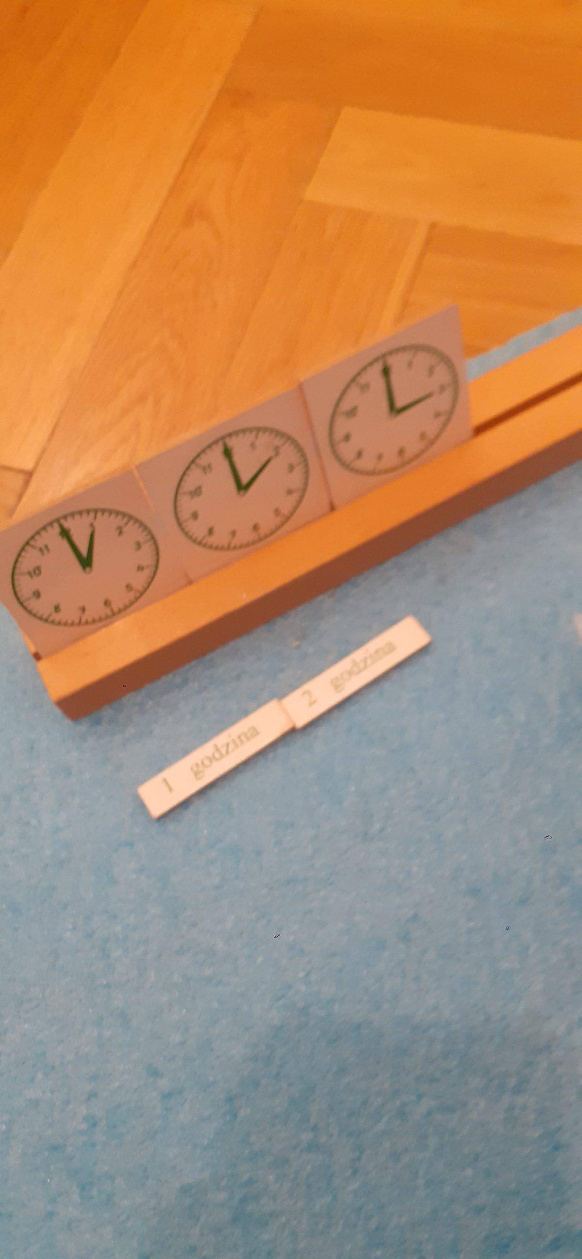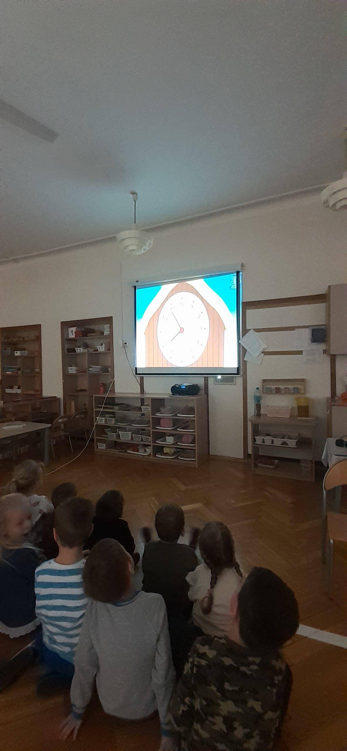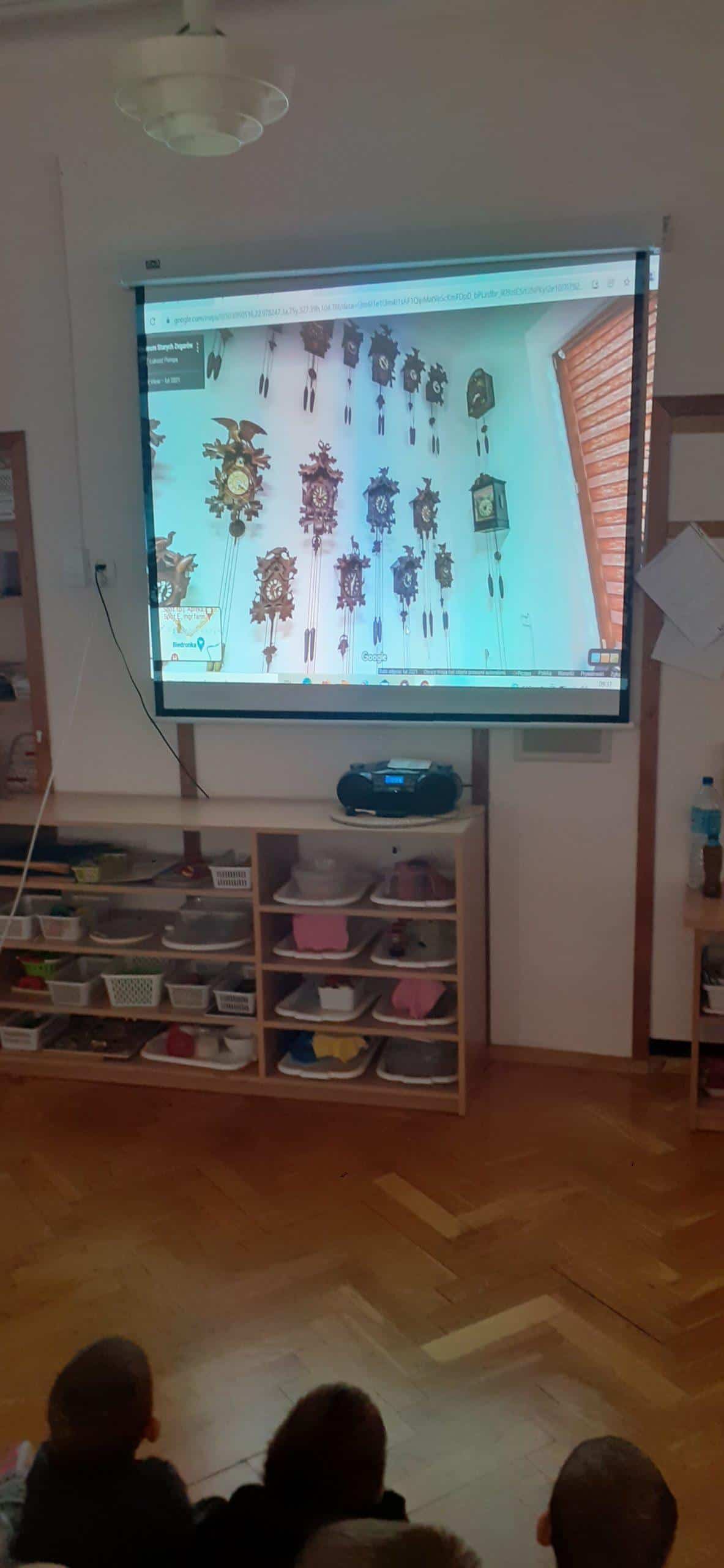 Nastanie Nowego Roku było impulsem do przeprowadzenia zajęć związanych z cykliczną organizacją czasu i  jego odmierzaniem . Koralikowy kalendarz  pór roku przybliżył dzieciom temat związany z następstwem pór roku i miesięcy. Szczególnym zainteresowaniem cieszył się temat związany z historią zegara. Zegary słoneczne i  klepsydry są dzieciom doskonale znane, a  zegary wodne, ogniowe, kurantowe i te najdokładniejsze czyli atomowe już niekoniecznie. Stąd propozycja filmiku edukacyjnego pokazującego dzieciom zegary dawniej i dziś. A potem przystąpiliśmy do poznania budowy zegara, by potem samodzielnie  wykonać go z papieru. Nauka odczytywania i zaznaczania za pomocą ruchomych wskazówek zegara Montessori pełnych godzin nie była już  taka trudna. W tym zakresie dzieci bardzo chętnie w toku  różnych cwiczeń gromadziły doświadczenia . A na koniec wirtualny spacer po Muzeum Starych Zegarów  bardzo spodobał się dzieciom. Zegary wahadłowe, popularne „kukułki”, zegary  ścienne z ciężarkami w kształcie szyszek zawieszonymi na łańcuchach,  a także zegary bogato zdobione rzeźbionymi ormanentami bardzo zaciekawiły dzieci. Przed nami jeszcze zajęcie pokazujące dzieciom znane zegary w przestrzeni publicznej np. BIG BEN na wieży Pałacu Westminsterskiego w Anglii.