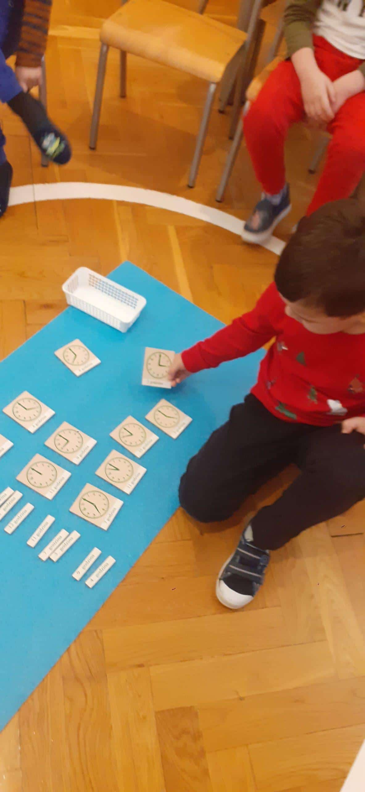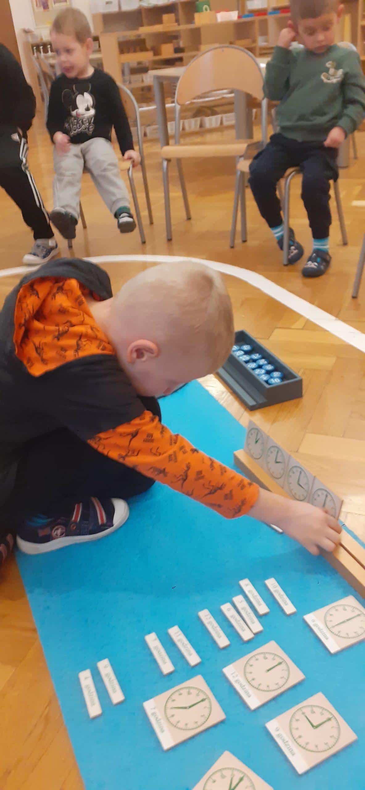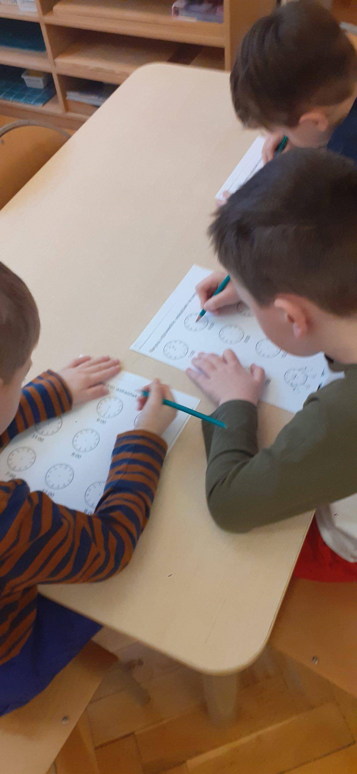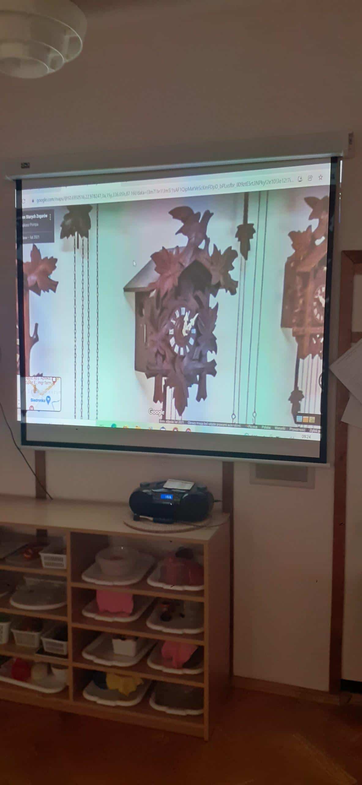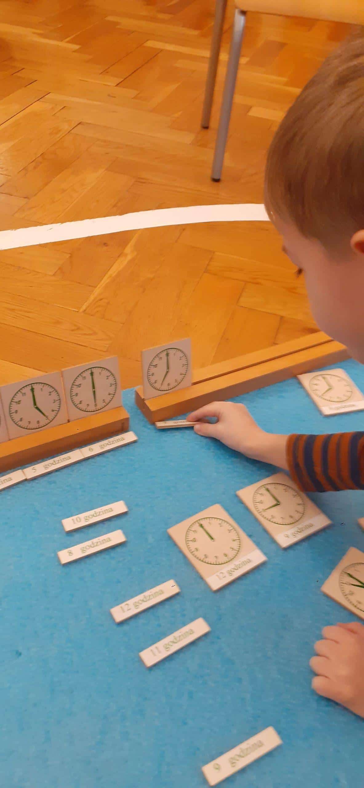 Nastanie Nowego Roku było impulsem do przeprowadzenia zajęć związanych z cykliczną organizacją czasu i  jego odmierzaniem . Koralikowy kalendarz  pór roku przybliżył dzieciom temat związany z następstwem pór roku i miesięcy. Szczególnym zainteresowaniem cieszył się temat związany z historią zegara. Zegary słoneczne i  klepsydry są dzieciom doskonale znane, a  zegary wodne, ogniowe, kurantowe i te najdokładniejsze czyli atomowe już niekoniecznie. Stąd propozycja filmiku edukacyjnego pokazującego dzieciom zegary dawniej i dziś. A potem przystąpiliśmy do poznania budowy zegara, by potem samodzielnie  wykonać go z papieru. Nauka odczytywania i zaznaczania za pomocą ruchomych wskazówek zegara Montessori pełnych godzin nie była już  taka trudna. W tym zakresie dzieci bardzo chętnie w toku  różnych cwiczeń gromadziły doświadczenia . A na koniec wirtualny spacer po Muzeum Starych Zegarów  bardzo spodobał się dzieciom. Zegary wahadłowe, popularne „kukułki”, zegary  ścienne z ciężarkami w kształcie szyszek zawieszonymi na łańcuchach,  a także zegary bogato zdobione rzeźbionymi ormanentami bardzo zaciekawiły dzieci. Przed nami jeszcze zajęcie pokazujące dzieciom znane zegary w przestrzeni publicznej np. BIG BEN na wieży Pałacu Westminsterskiego w Anglii.