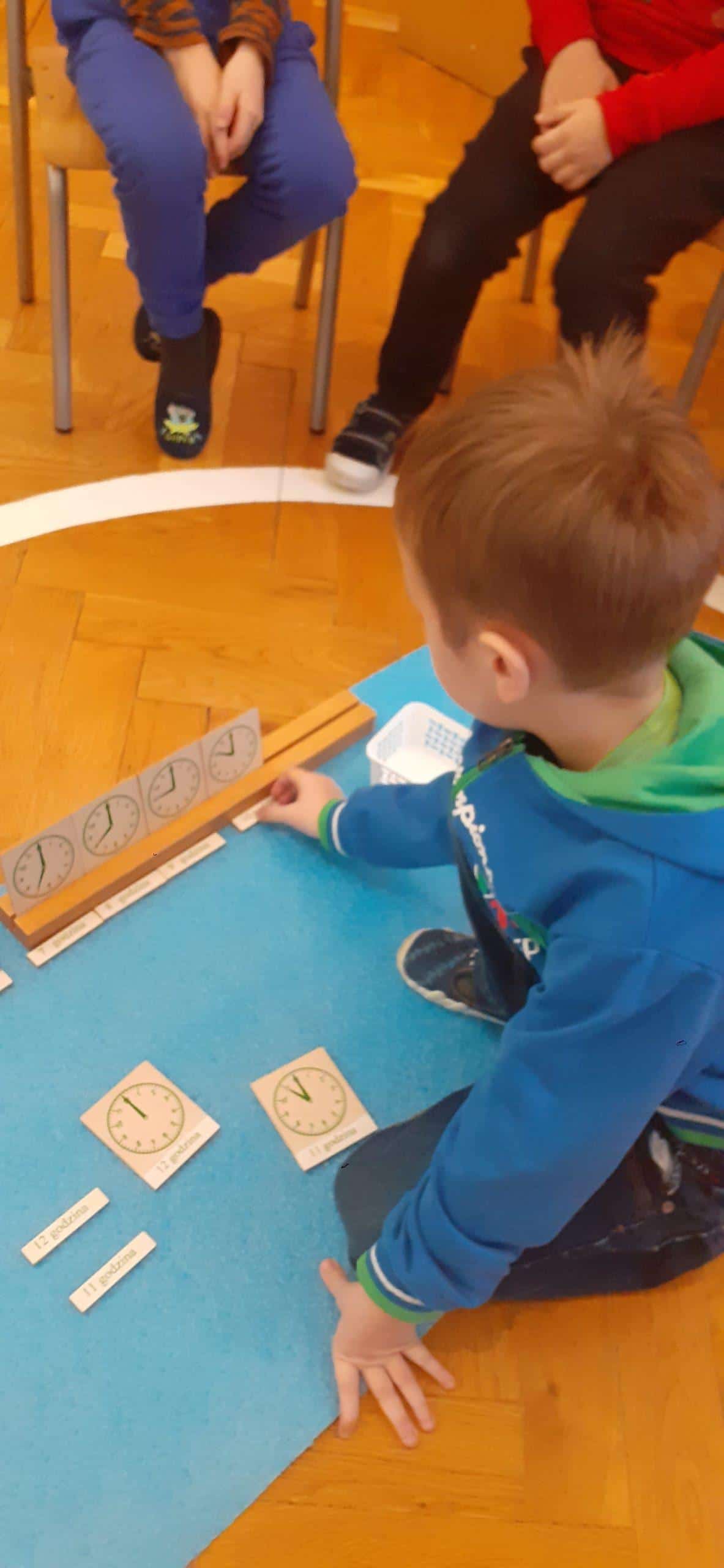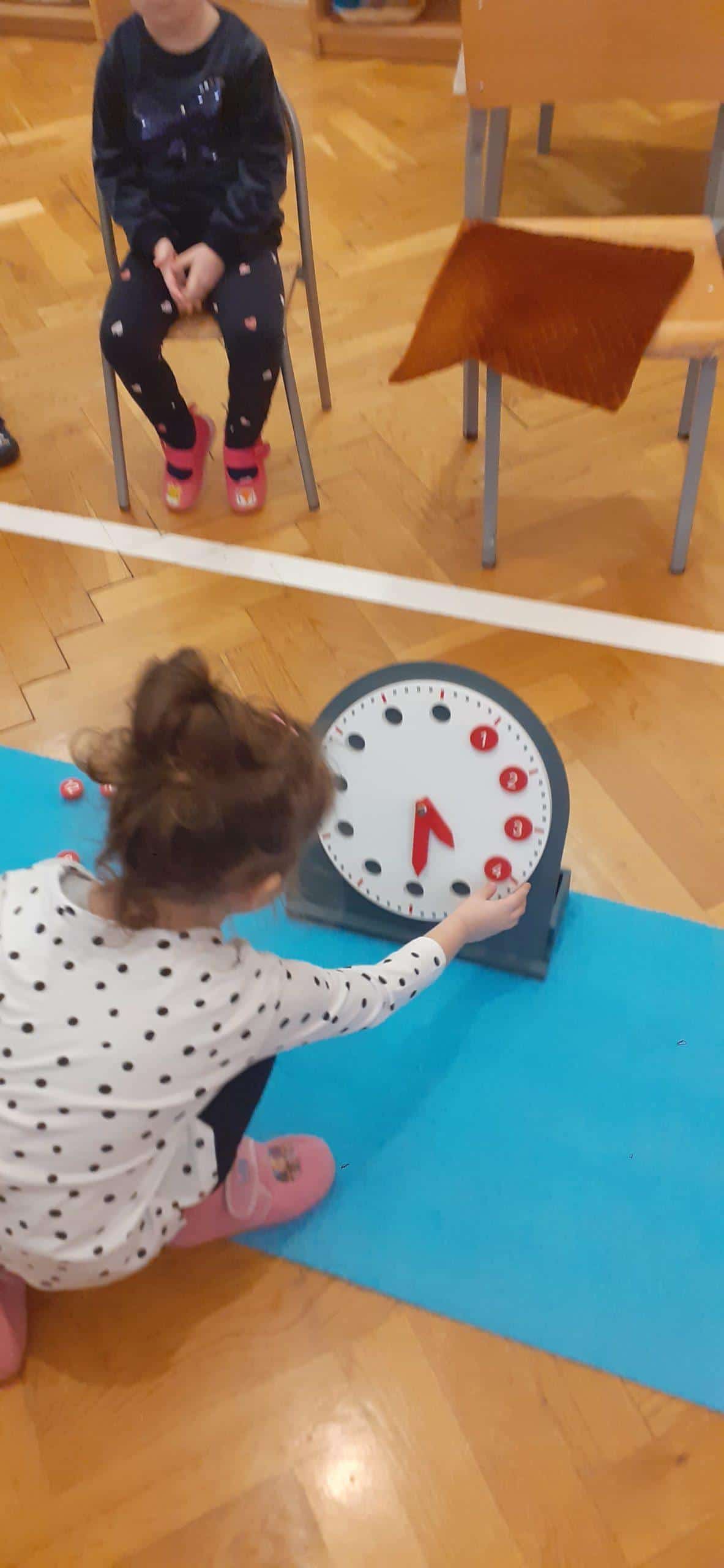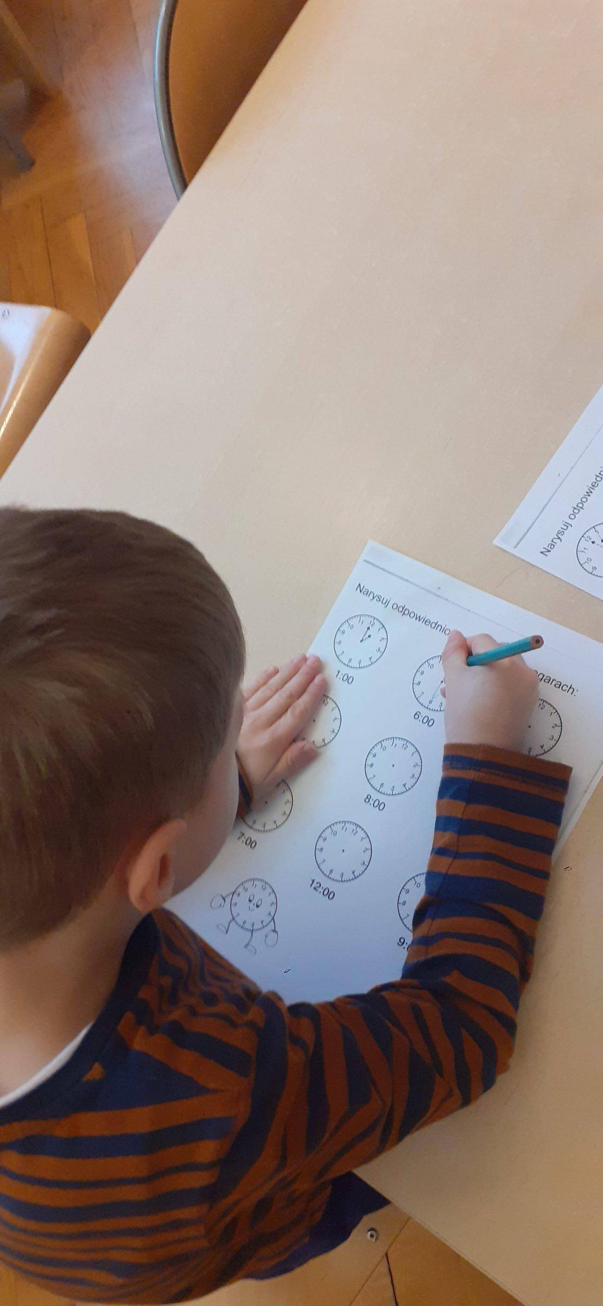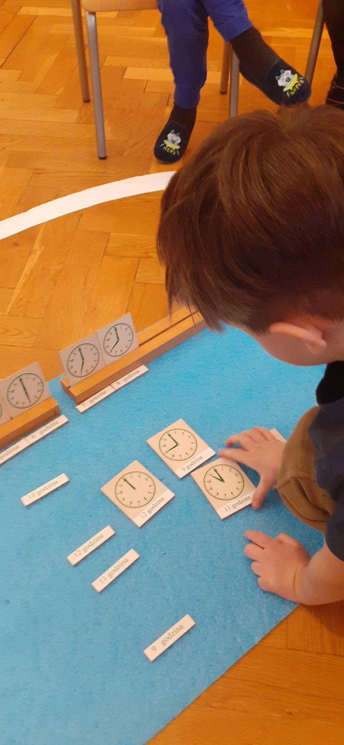 Nastanie Nowego Roku było impulsem do przeprowadzenia zajęć związanych z cykliczną organizacją czasu i  jego odmierzaniem . Koralikowy kalendarz  pór roku przybliżył dzieciom temat związany z następstwem pór roku i miesięcy. Szczególnym zainteresowaniem cieszył się temat związany z historią zegara. Zegary słoneczne i  klepsydry są dzieciom doskonale znane, a  zegary wodne, ogniowe, kurantowe i te najdokładniejsze czyli atomowe już niekoniecznie. Stąd propozycja filmiku edukacyjnego pokazującego dzieciom zegary dawniej i dziś. A potem przystąpiliśmy do poznania budowy zegara, by potem samodzielnie  wykonać go z papieru. Nauka odczytywania i zaznaczania za pomocą ruchomych wskazówek zegara Montessori pełnych godzin nie była już  taka trudna. W tym zakresie dzieci bardzo chętnie w toku  różnych cwiczeń gromadziły doświadczenia . A na koniec wirtualny spacer po Muzeum Starych Zegarów  bardzo spodobał się dzieciom. Zegary wahadłowe, popularne „kukułki”, zegary  ścienne z ciężarkami w kształcie szyszek zawieszonymi na łańcuchach,  a także zegary bogato zdobione rzeźbionymi ormanentami bardzo zaciekawiły dzieci. Przed nami jeszcze zajęcie pokazujące dzieciom znane zegary w przestrzeni publicznej np. BIG BEN na wieży Pałacu Westminsterskiego w Anglii.