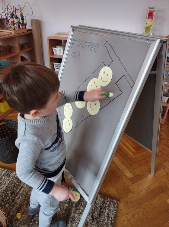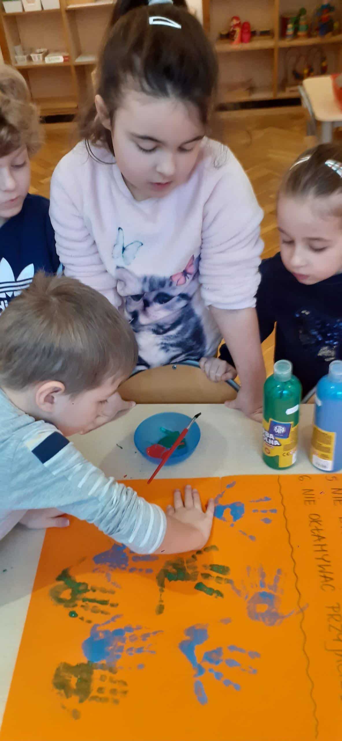 Mając na względzie obecny czas i sytuację pandemiczną panującą na całym świecie, odbyliśmy z dziećmi cykl zajęć edukacyjnych nawiązujących tematycznie do szeroko rozumianej profilaktyki prozdrowotnej, w tym omówiliśmy działania na rzecz zahamowania pandemii koronawirusa SARS-CoV-2 i profilaktykę zachorowań na inne choroby zakaźne.