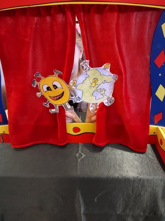 Inscenizacja teatralna, w której główną rolę odgrywały właśnie wirusy pomogła dzieciom zrozumieć drogę ich rozprzestrzeniania się i tym samym dała przykłady czego nie należy robić lub co robić, aby móc jak najdłużej zachować zdrowie. Dzieci z wielkim zaangażowaniem oraz niebywałą wyobraźnią szukały sposobów na pokonywanie wirusów („Możemy rzucać w nich warzywami, bo one boją się witamin” – tak brzmiała jedna z wypowiedzi 🙂 )