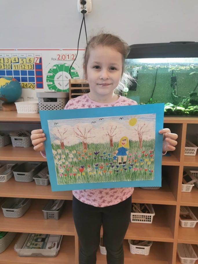 Zosia wykonała ilustrację do wiersza pt. „W ogrodzie”, za co otrzymała Nagrodę, z czego bardzo się cieszymy.