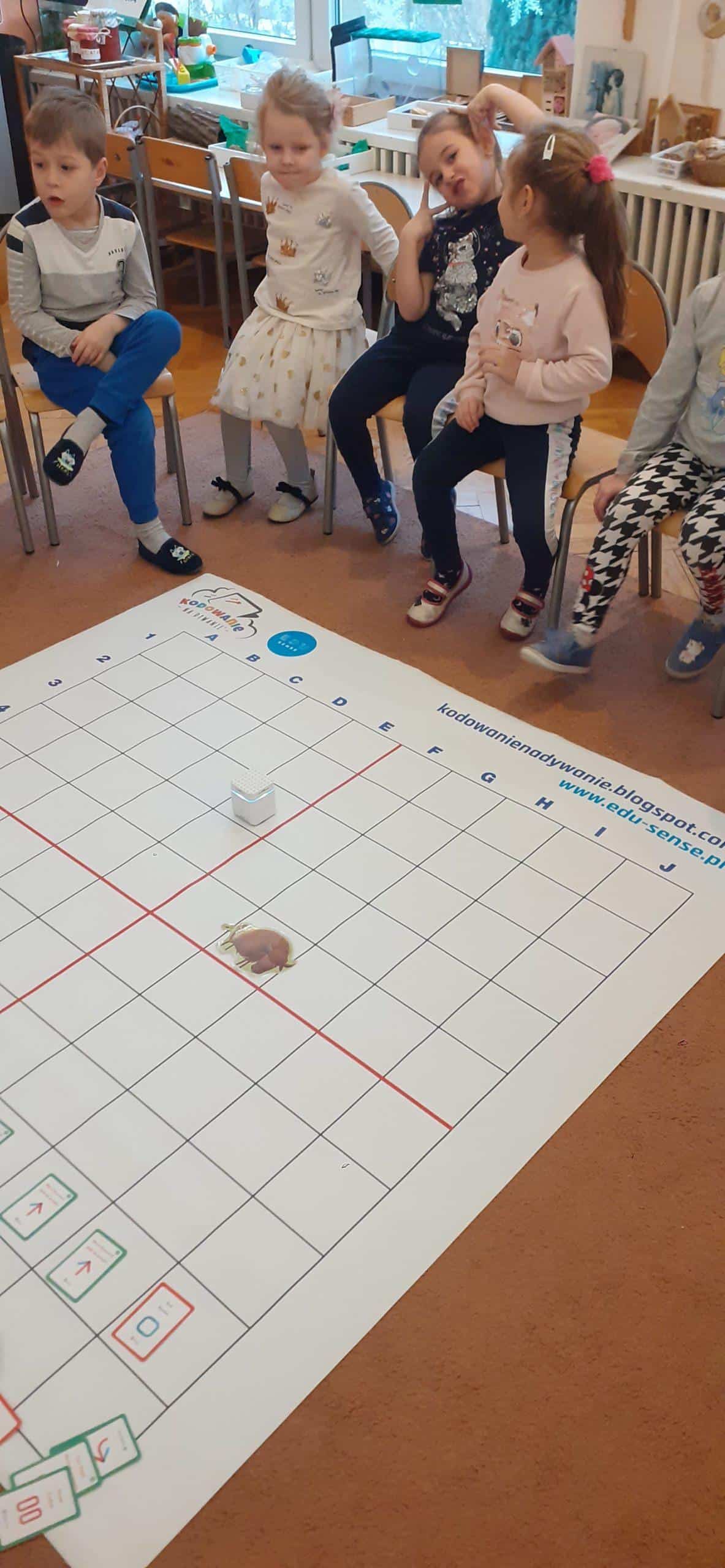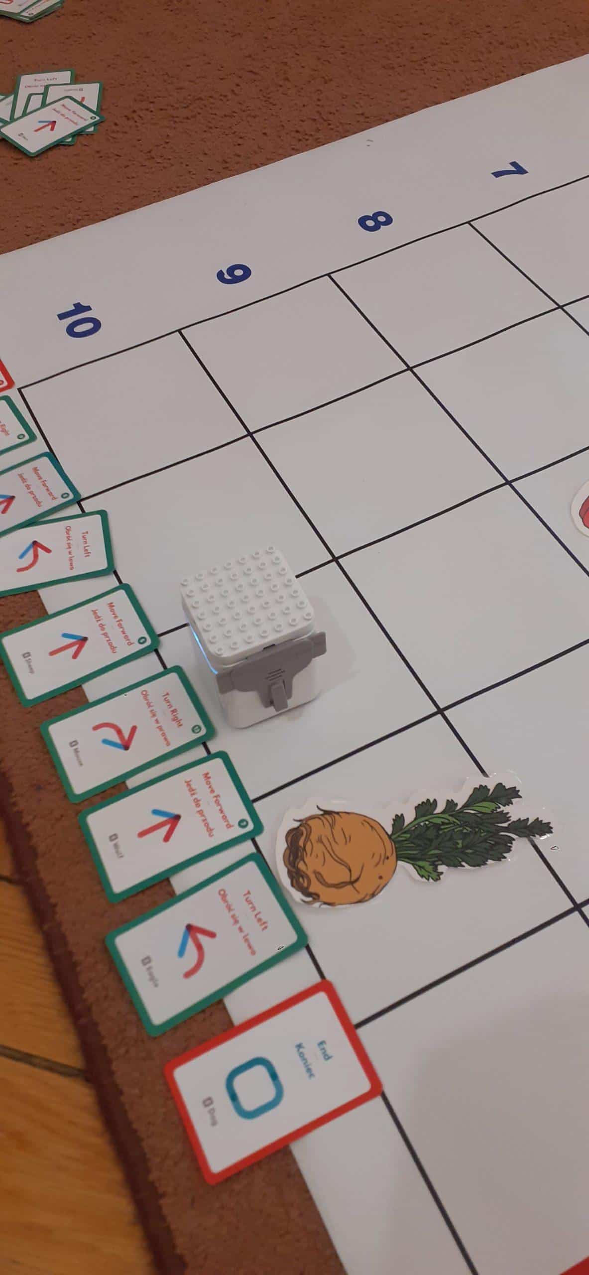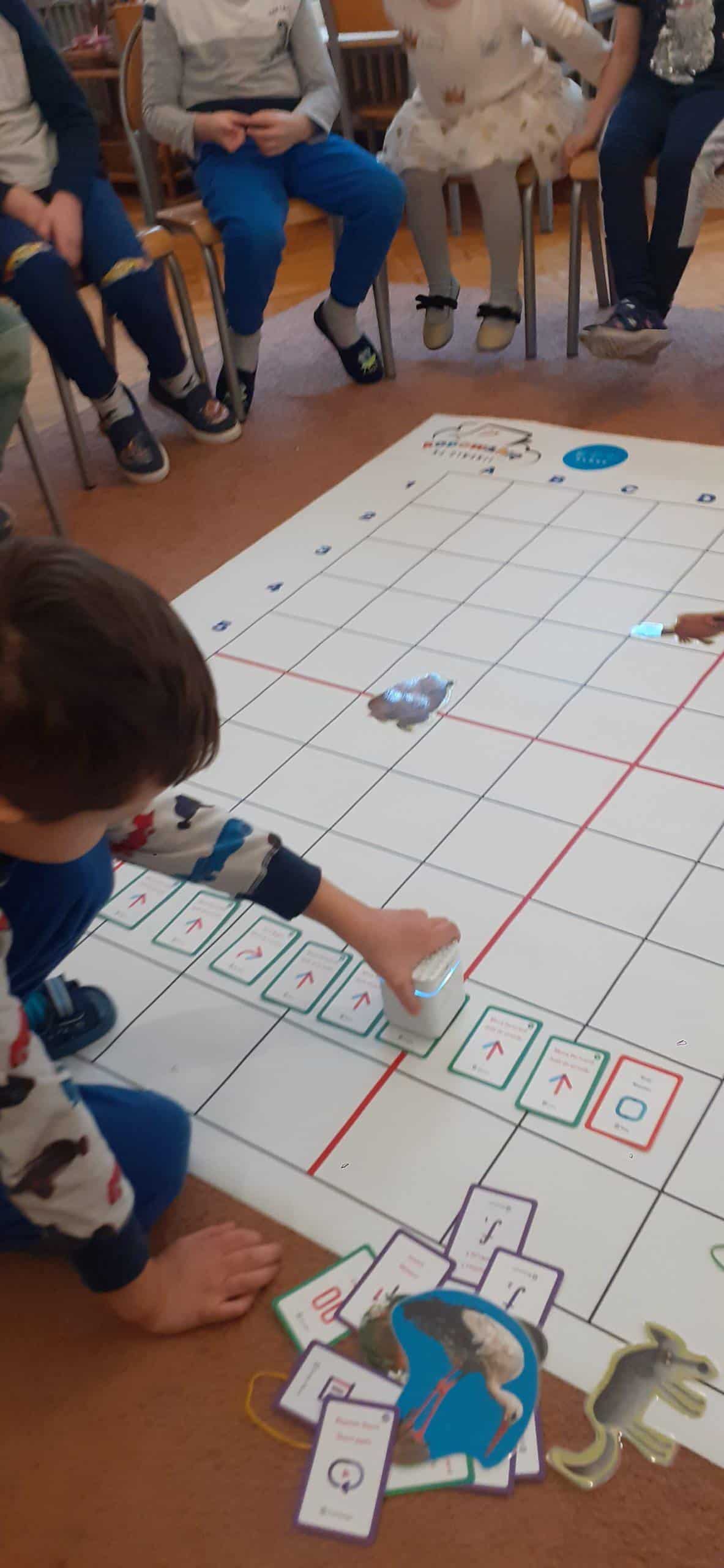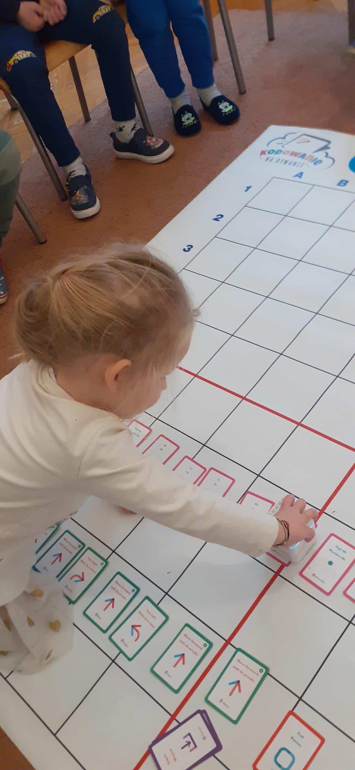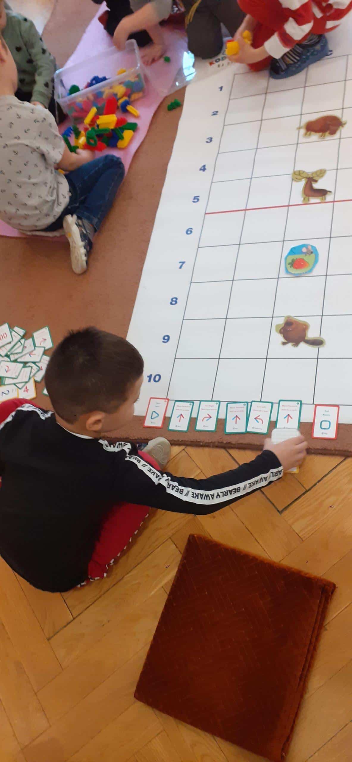 Zabawy w kodowanie i programowanie to zabawy, które uczą dzieci logicznego myślenia , obserwacji i dedukcji. To świetna alternatywa dla rozszerzenia edukacji matematycznej i rozbudzania zdolności intelektualnych. Zajęcia w tym zakresie z wykorzystaniem Genibota są wyjątkowo interesujące dla dzieci. Genibot to mały robot, którego żeby wprawić w ruch trzeba zaprogramować. Program tworzymy układając sekwencje kart z komendami, następnie wgrywamy go, przykładając robota do kolejnych kart. Robotem można także sterować za pomocą gestów. Praca z takim robotem to świetna zabawa , rozwijająca logiczne, algorytmiczne myślenie, zadaniowe podejście do stawianych problemów. Dzieci poznają przy tym nowe pojęcia i zwroty. Podczas takich aktywności przedszkolnych dzieci uczą się także: współpracy, planowania, analizowania i samodzielnego tworzenia rożnych kodów.