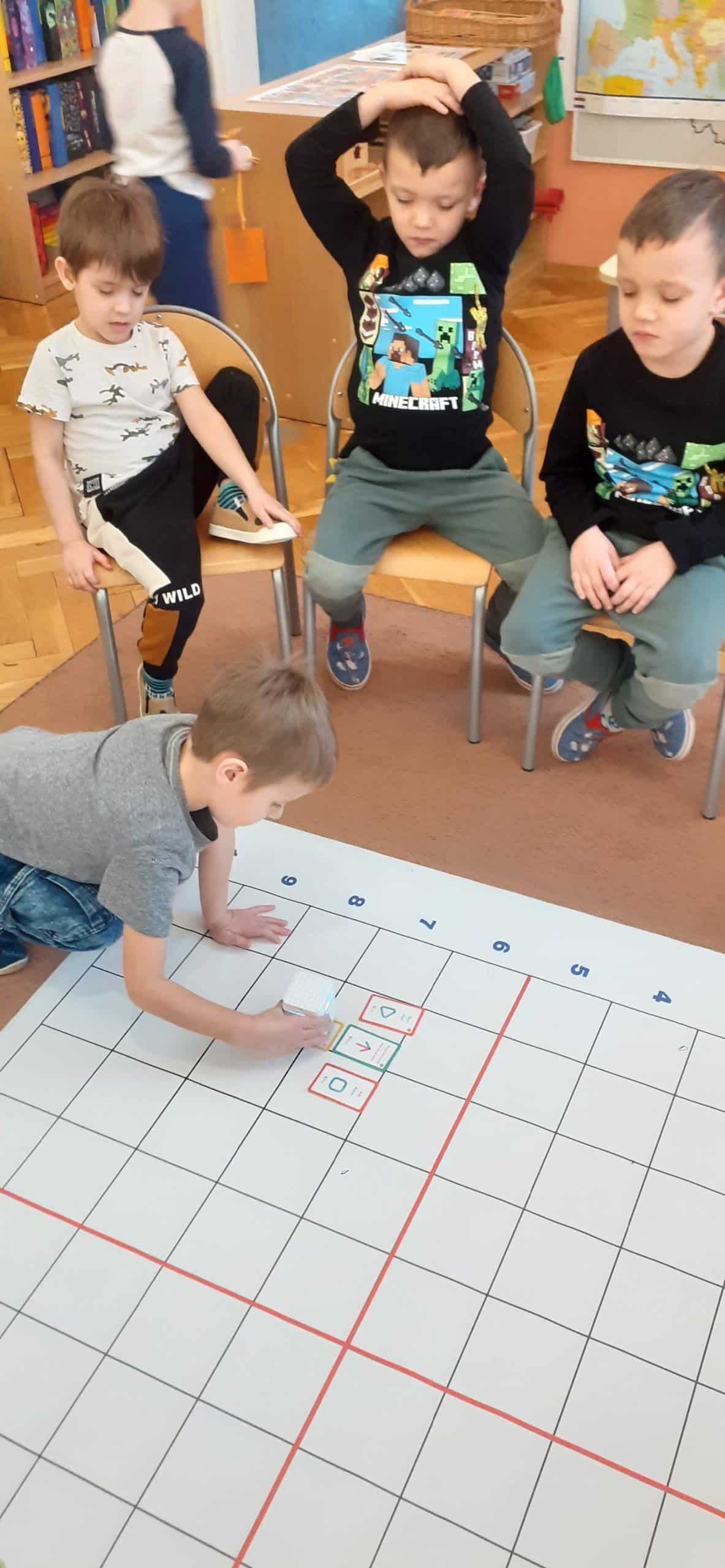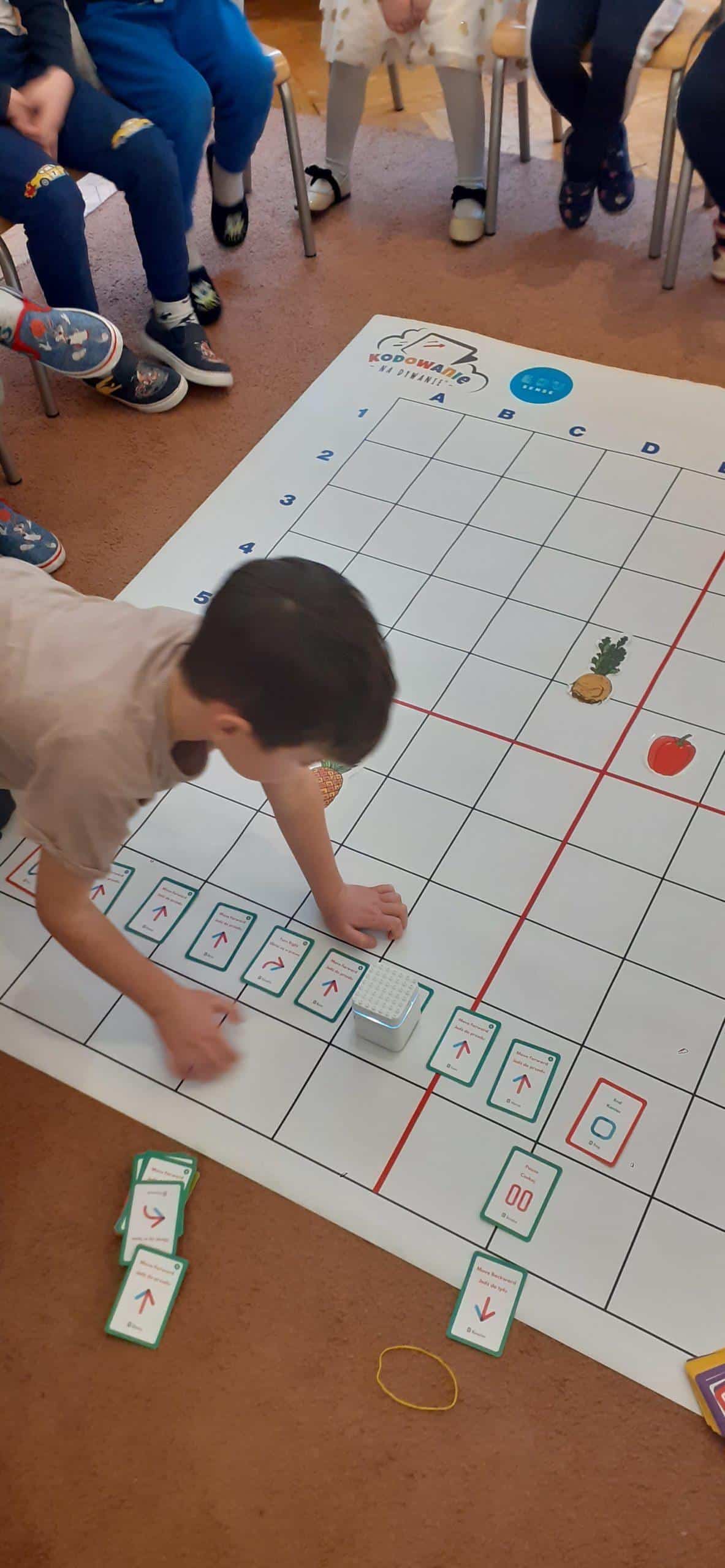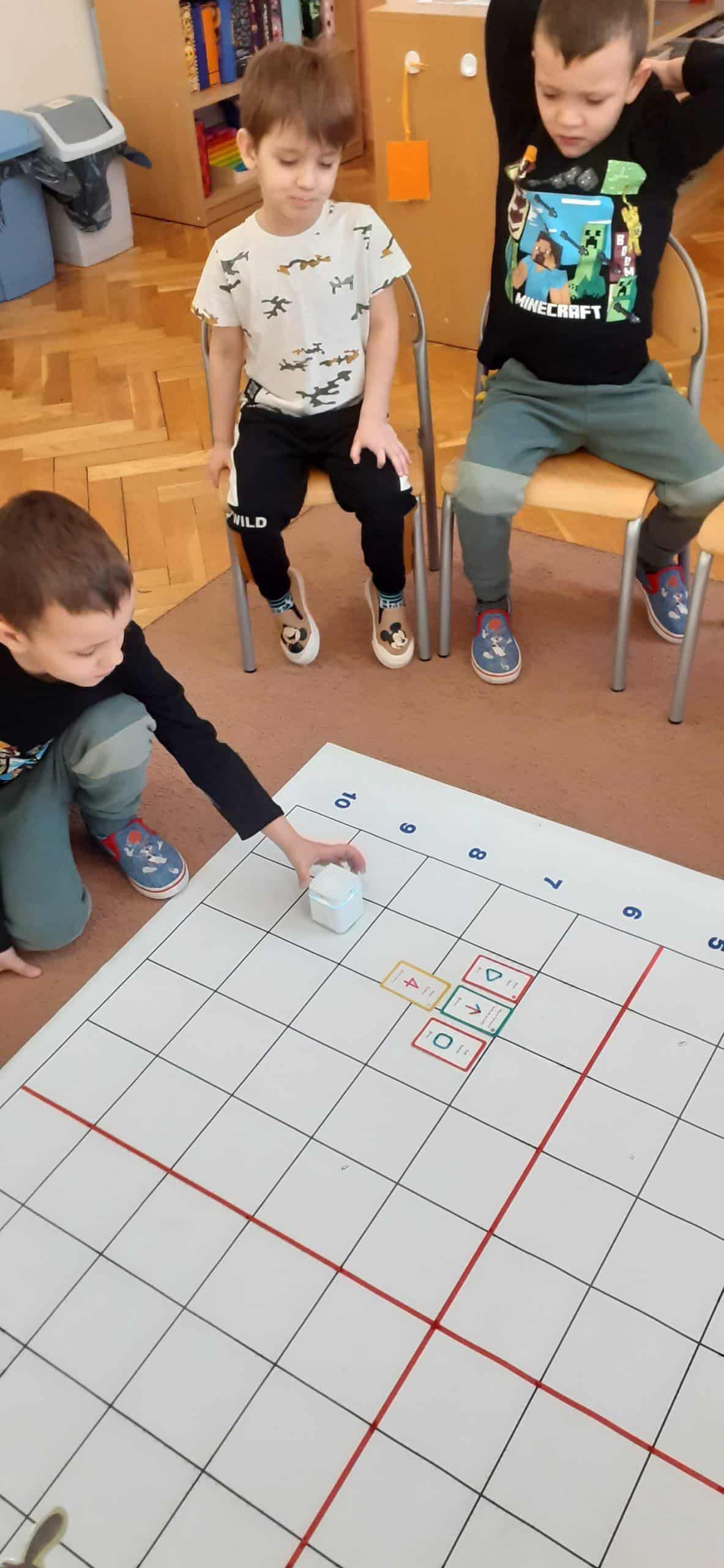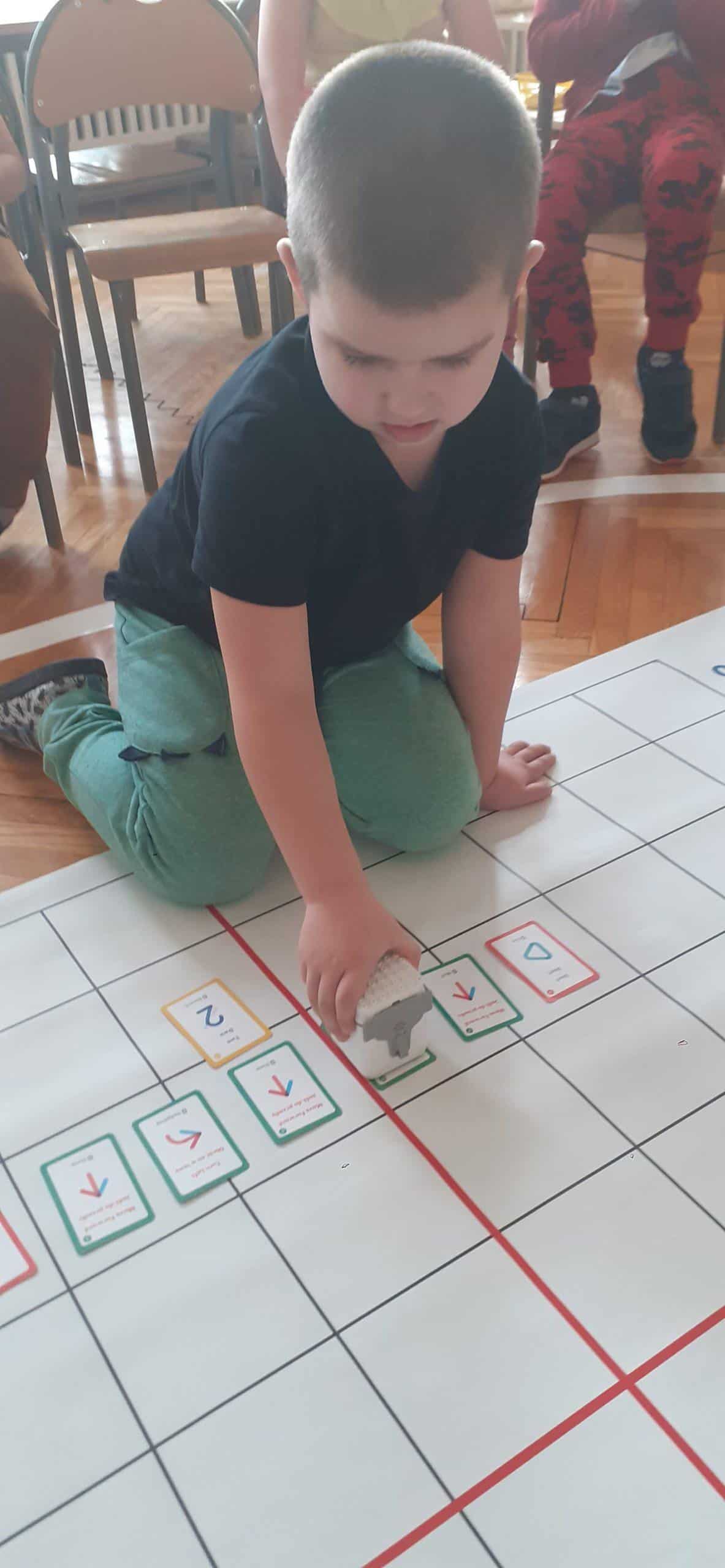 Zabawy w kodowanie i programowanie to zabawy, które uczą dzieci logicznego myślenia , obserwacji i dedukcji. To świetna alternatywa dla rozszerzenia edukacji matematycznej i rozbudzania zdolności intelektualnych. Zajęcia w tym zakresie z wykorzystaniem Genibota są wyjątkowo interesujące dla dzieci. Genibot to mały robot, którego żeby wprawić w ruch trzeba zaprogramować. Program tworzymy układając sekwencje kart z komendami, następnie wgrywamy go, przykładając robota do kolejnych kart. Robotem można także sterować za pomocą gestów. Praca z takim robotem to świetna zabawa , rozwijająca logiczne, algorytmiczne myślenie, zadaniowe podejście do stawianych problemów. Dzieci poznają przy tym nowe pojęcia i zwroty. Podczas takich aktywności przedszkolnych dzieci uczą się także: współpracy, planowania, analizowania i samodzielnego tworzenia rożnych kodów.